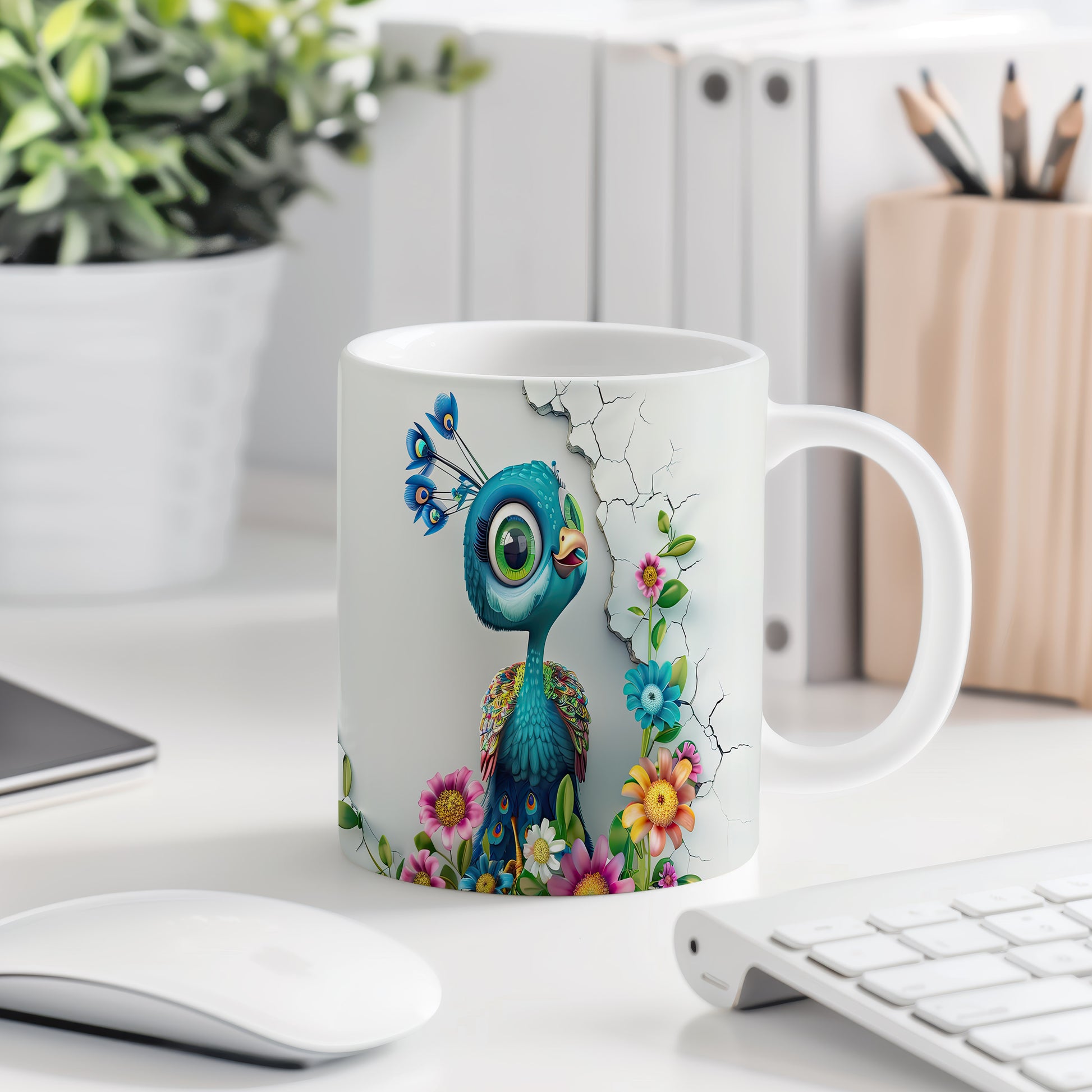 Hrnek s motivem roztomilého páva a květinovým vzorem. Tento hrnek je ideální pro milovníky přírody a skvělým dárkem pro přátele nebo rodinu. Materiál: keramika. Objem: 330 ml. Vhodné do myčky i mikrovlnky. Užívejte si každodenní kávu nebo čaj s tímto stylovým hrnkem.