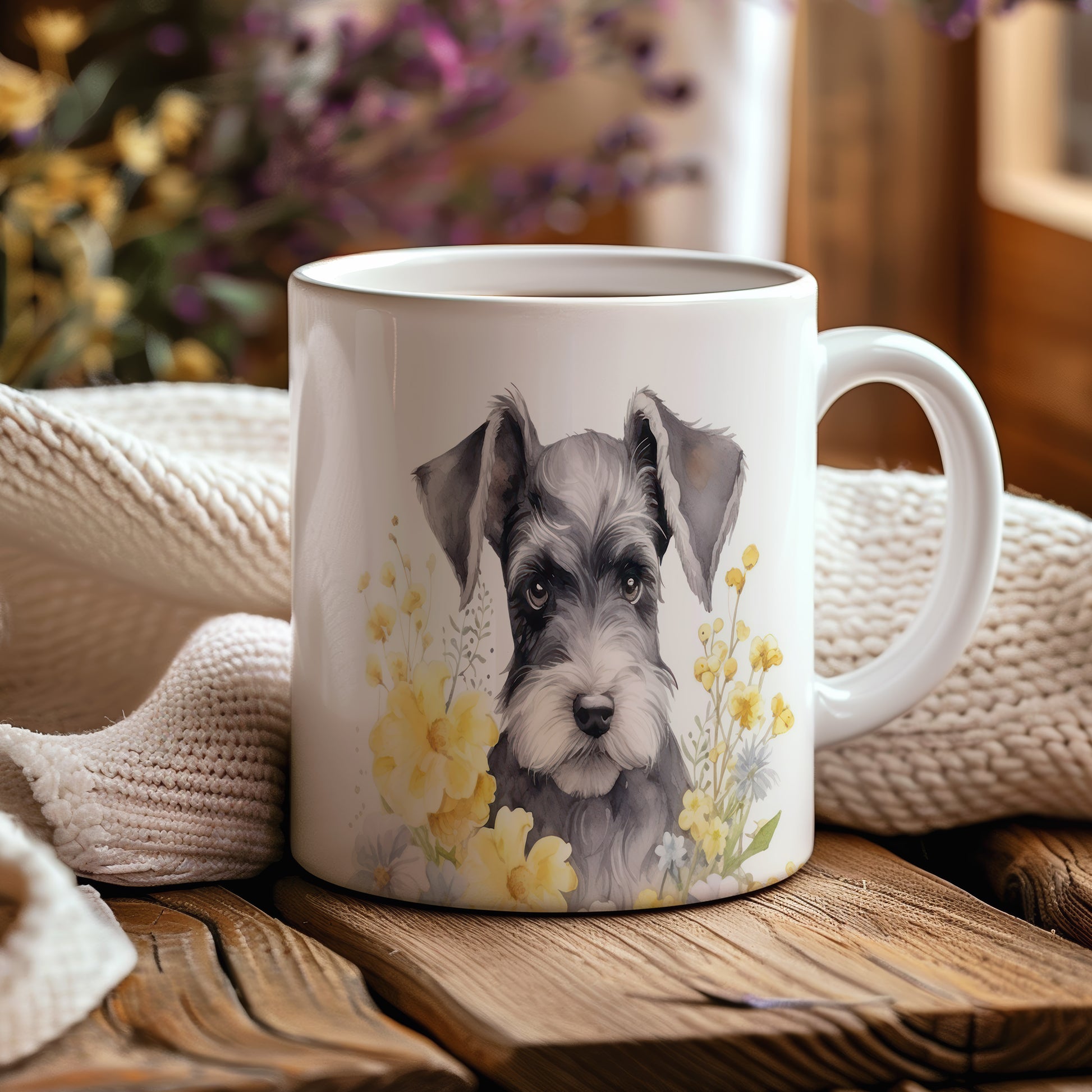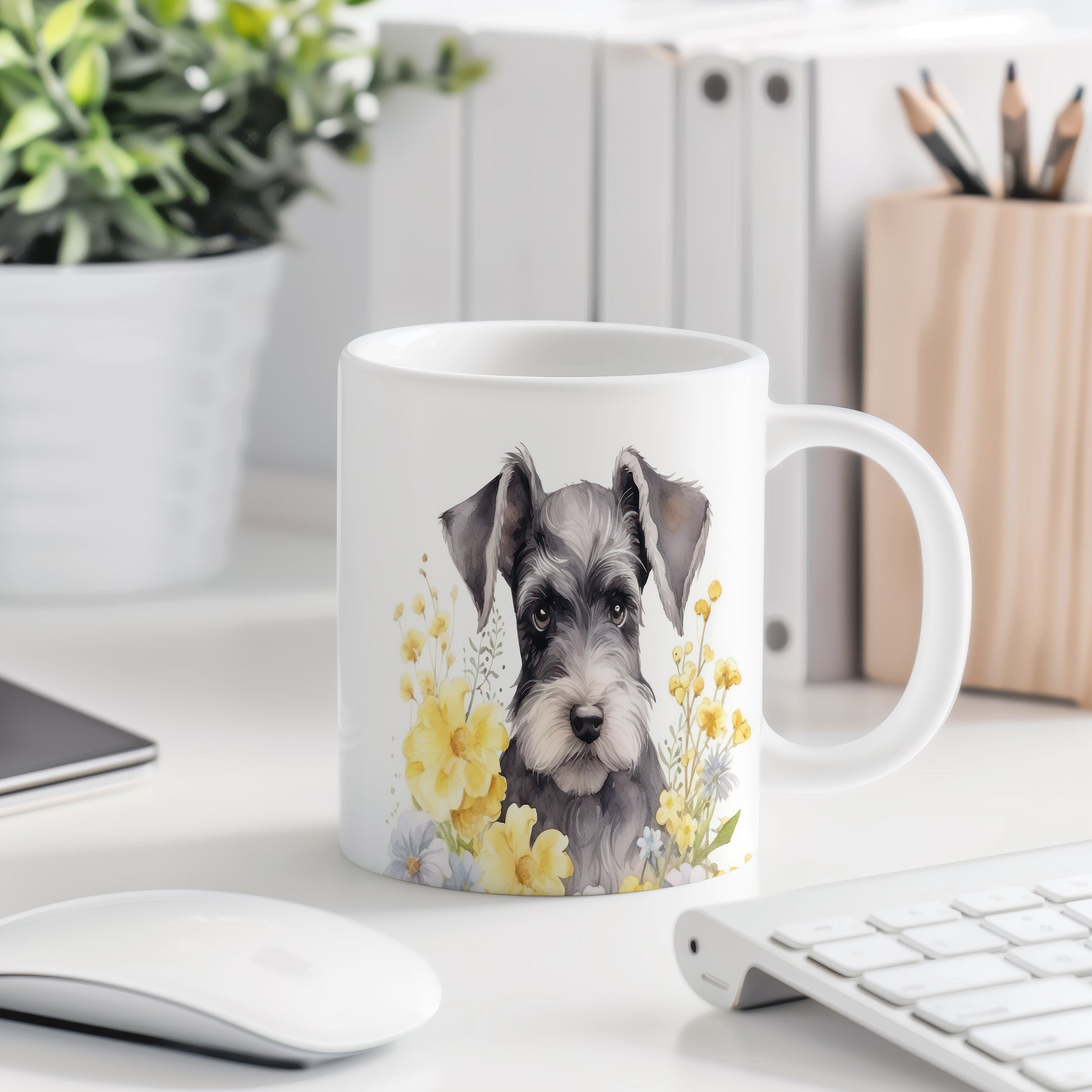Tento keramický hrnek zobrazuje roztomilého pejska s květinovým motivem. Je ideální pro milovníky zvířat a přírody, skvělý tip na dárek pro přátele nebo rodinu. Materiál: keramika. Objem: 330 ml. Vhodné do myčky i mikrovlnky. Používáním tohoto hrnku si užijete příjemné chvíle s oblíbeným nápojem.