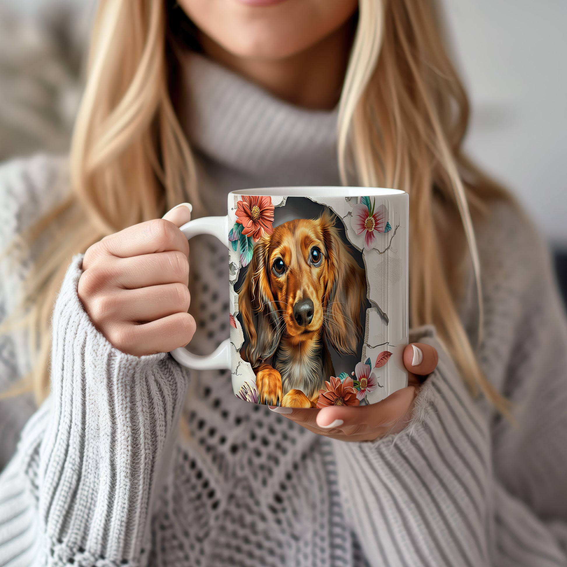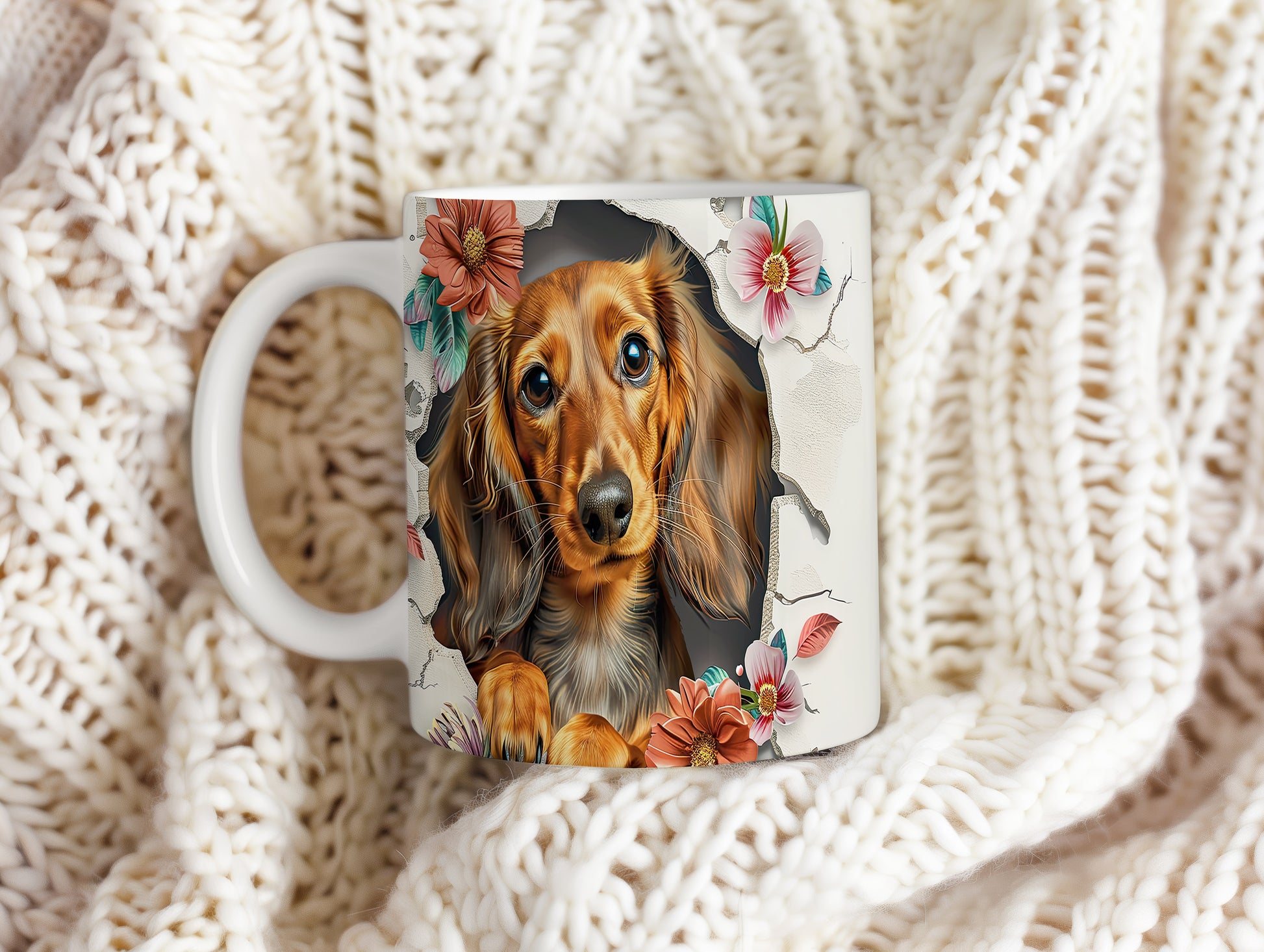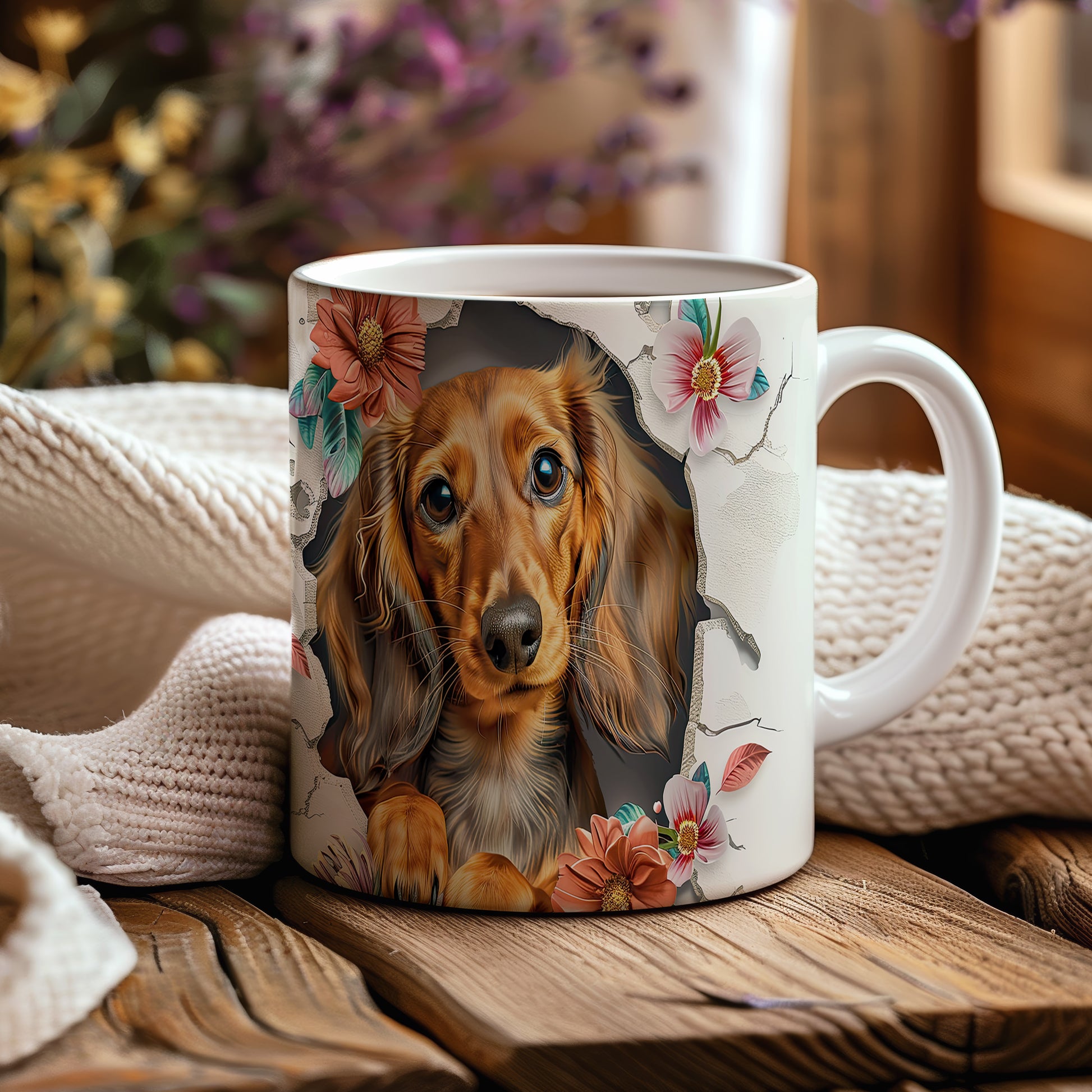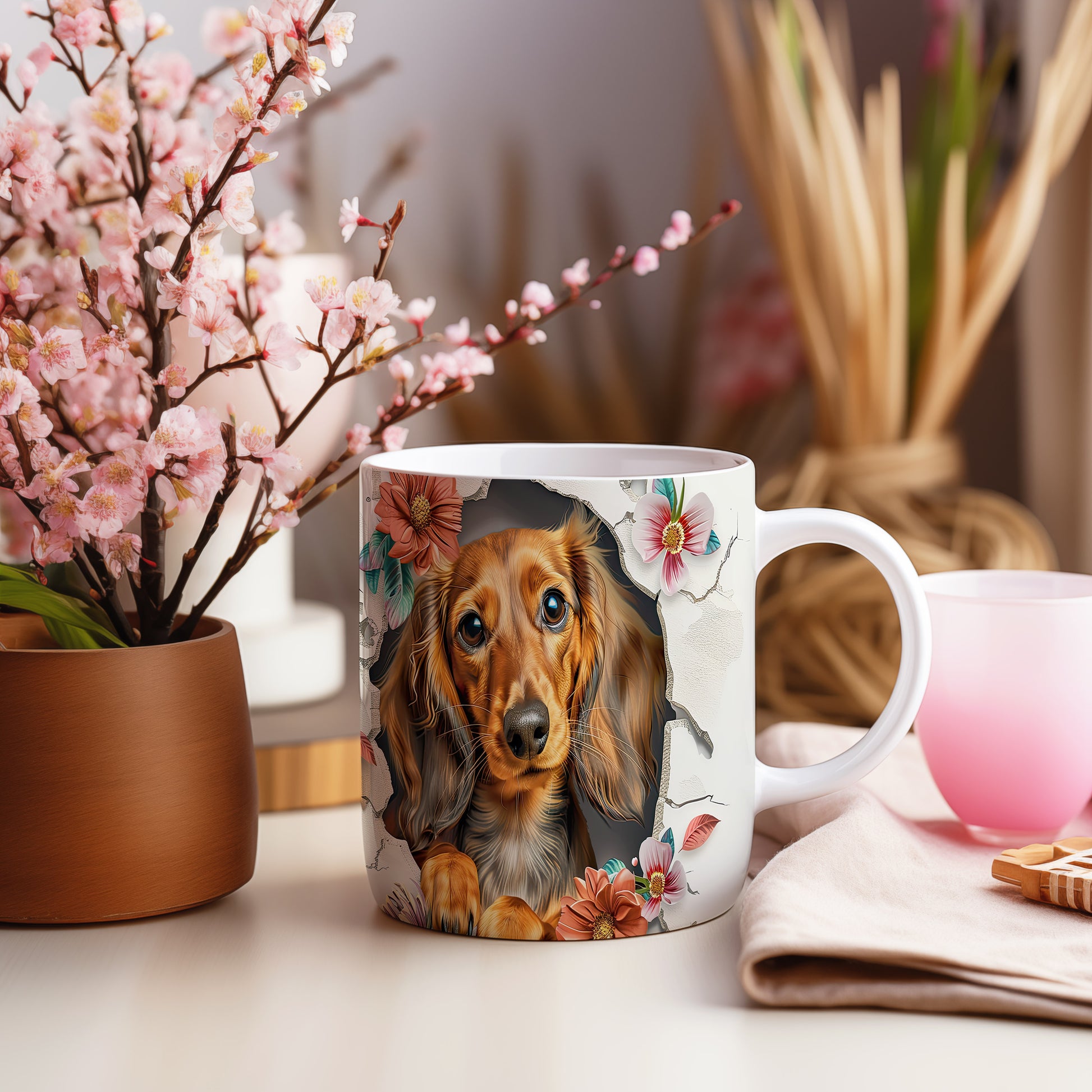 Hrnek zobrazuje roztomilého pejska s dlouhými ušima na pozadí květin. Tento hrnek je ideální pro milovníky psů a skvělým dárkem pro každého, kdo má rád zvířata. Materiál: keramika. Objem: 330 ml. Vhodné do myčky i mikrovlnky. Používáním tohoto hrnku si můžete vychutnat svůj oblíbený nápoj s úsměvem.