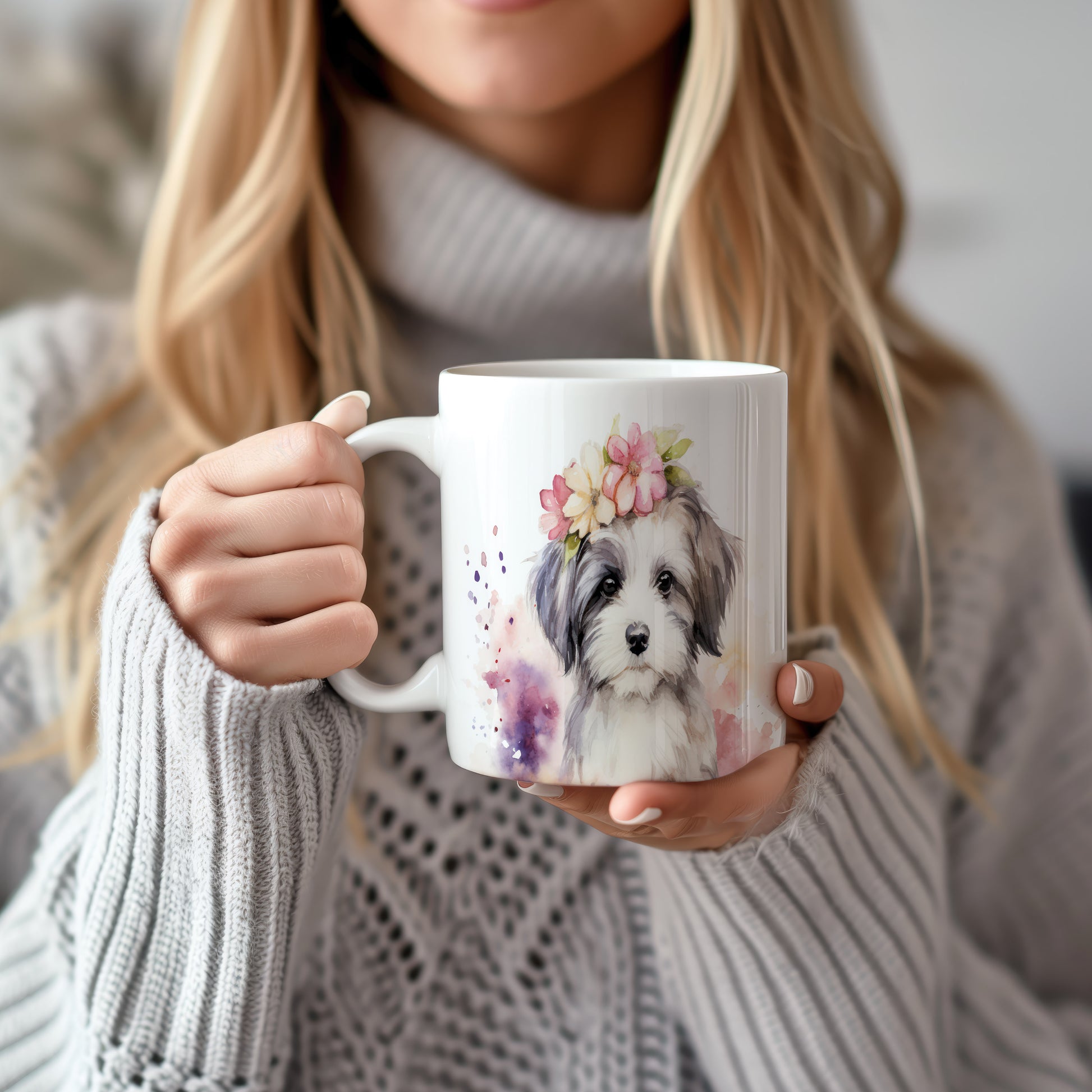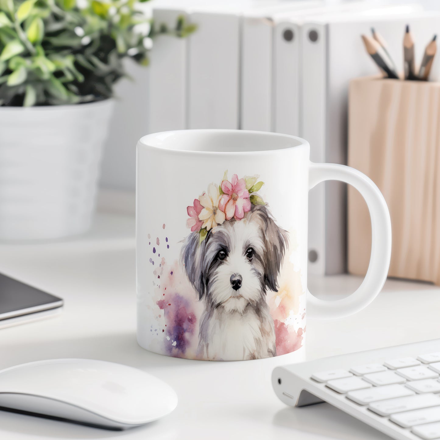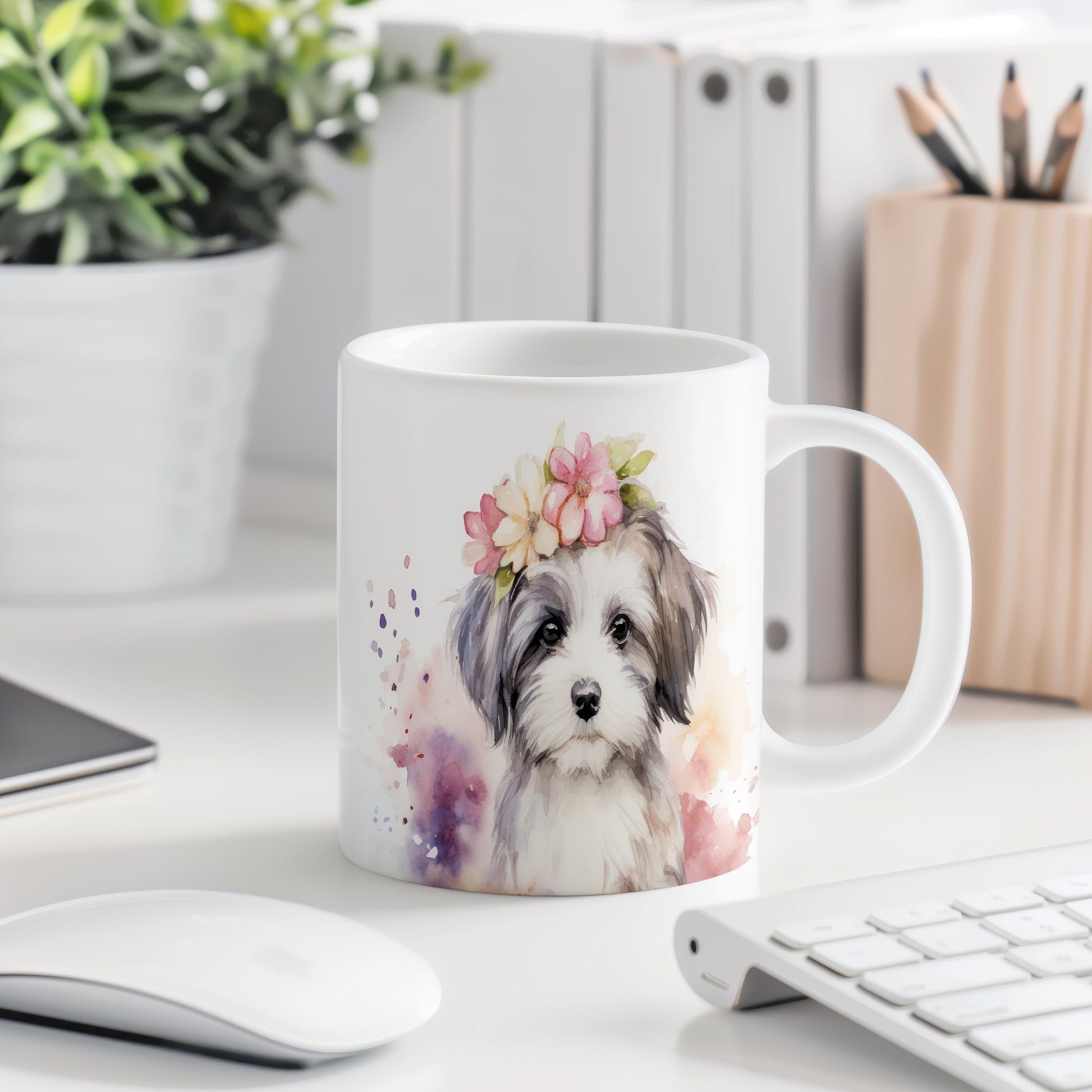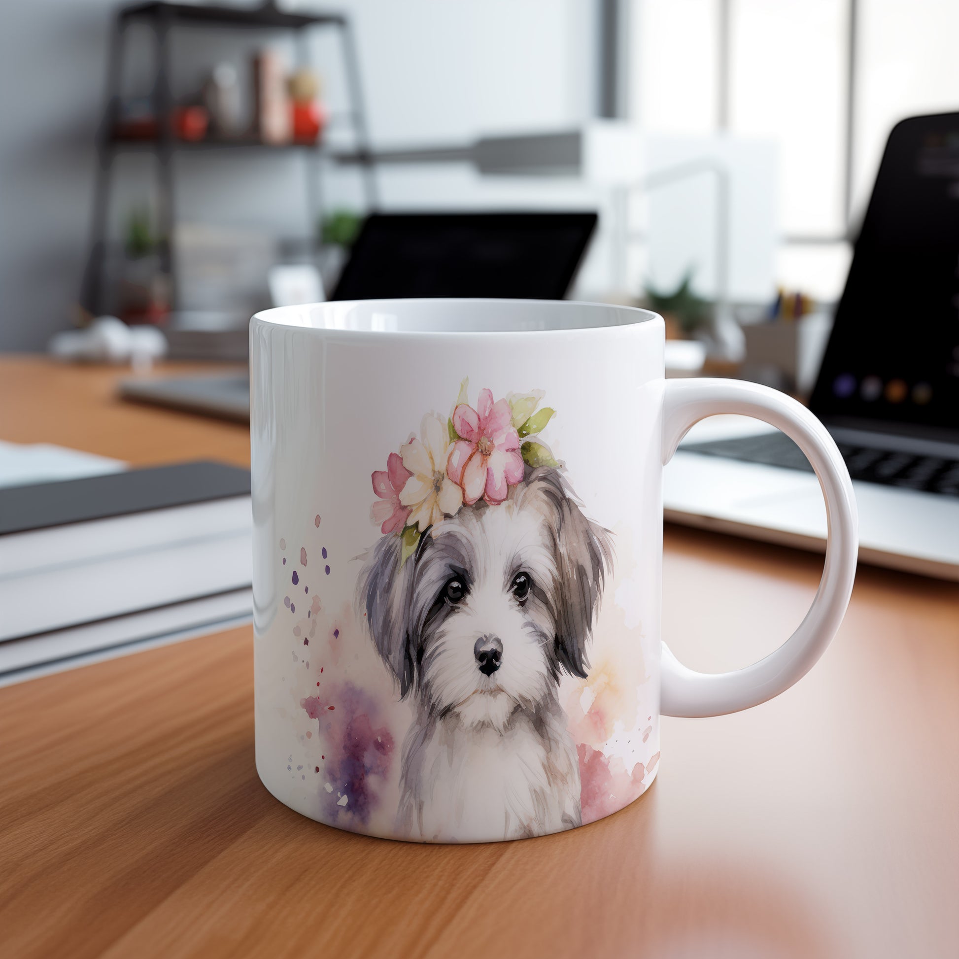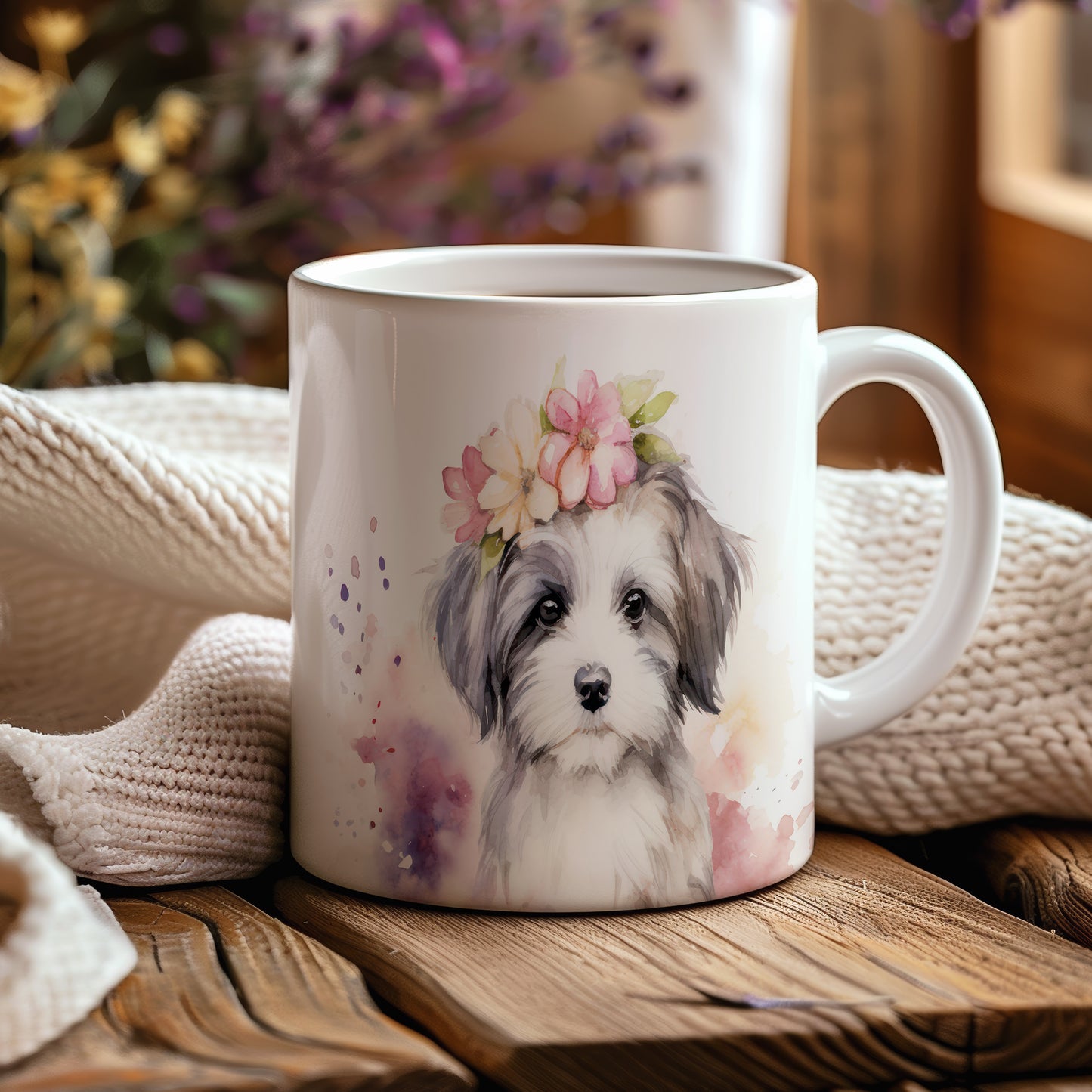 Tento hrnek z keramického materiálu zobrazuje roztomilého pejska s květinovým věnečkem. Je ideální pro milovníky zvířat a skvělým dárkem pro každého, kdo si rád vychutnává kávu. Materiál: keramika. Objem: 330 ml. Vhodné do myčky i mikrovlnky. Používání tohoto hrnku přináší radost a útulnost do každého dne.