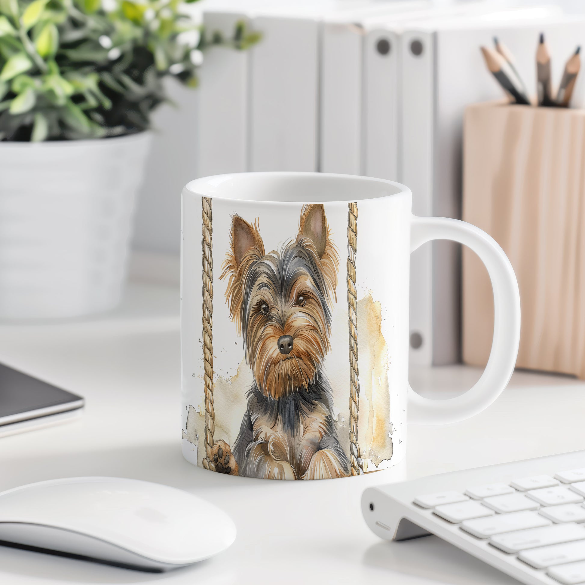 Hrnek s motivem roztomilého pejska na houpačce, který zachycuje hravého yorkšírského teriéra. Tento hrnek je ideální pro milovníky zvířat a skvělý tip na dárek pro přátele či rodinu. Materiál: keramika. Objem: 330 ml. Vhodné do myčky i mikrovlnky. Používání tohoto hrnku přináší radost a útulnost do každodenního pití.