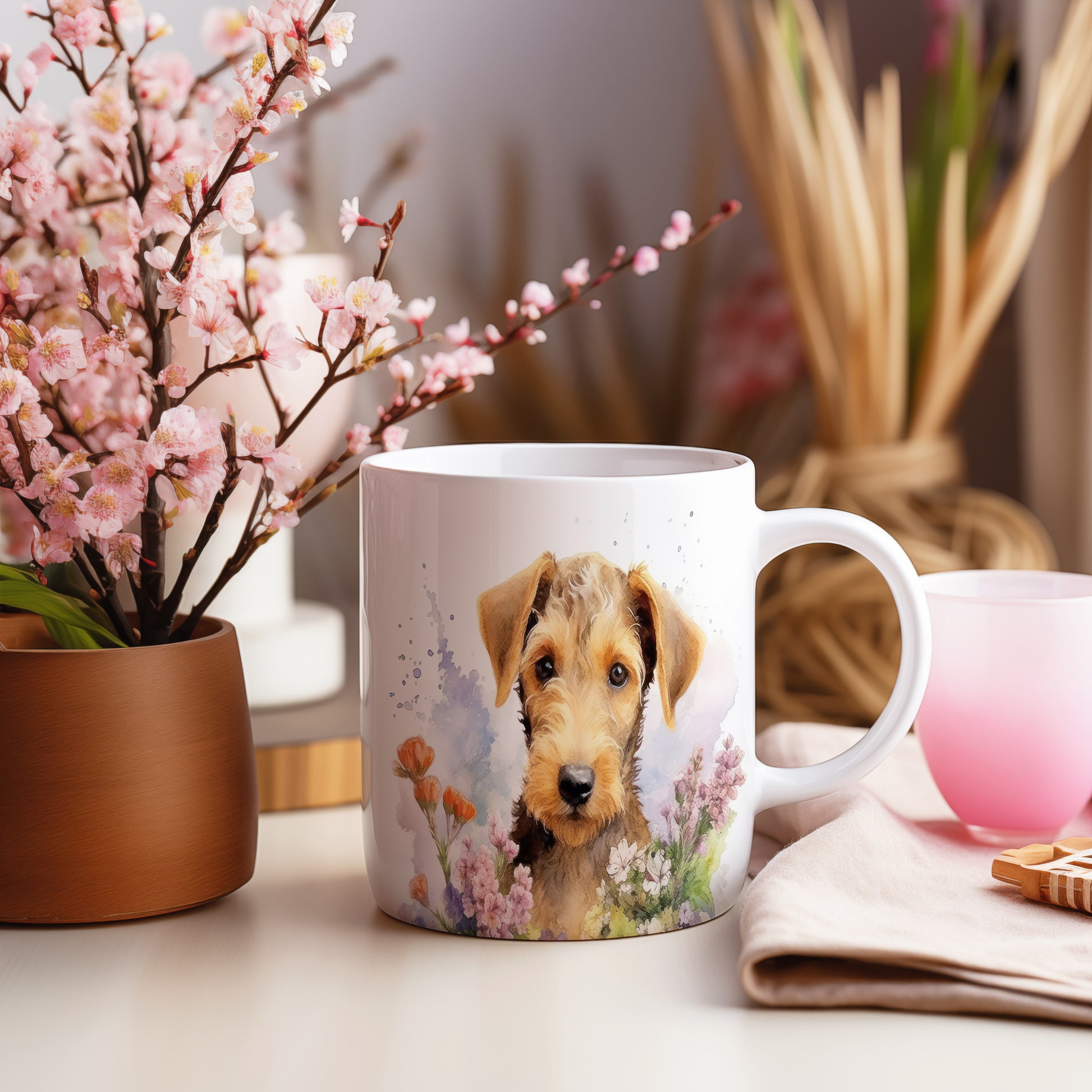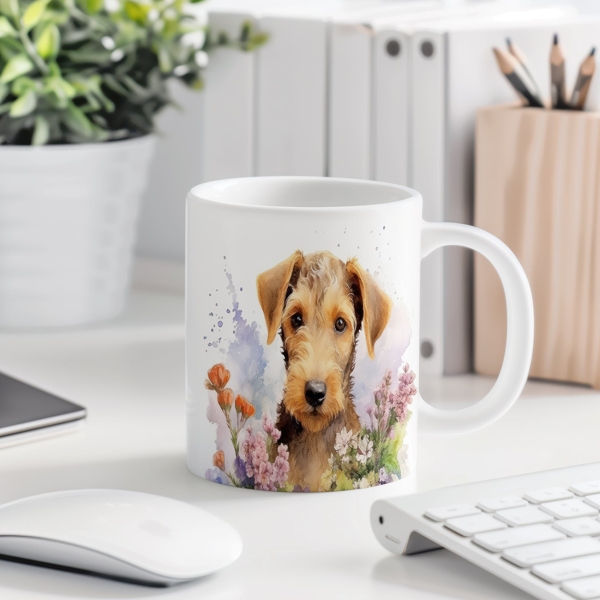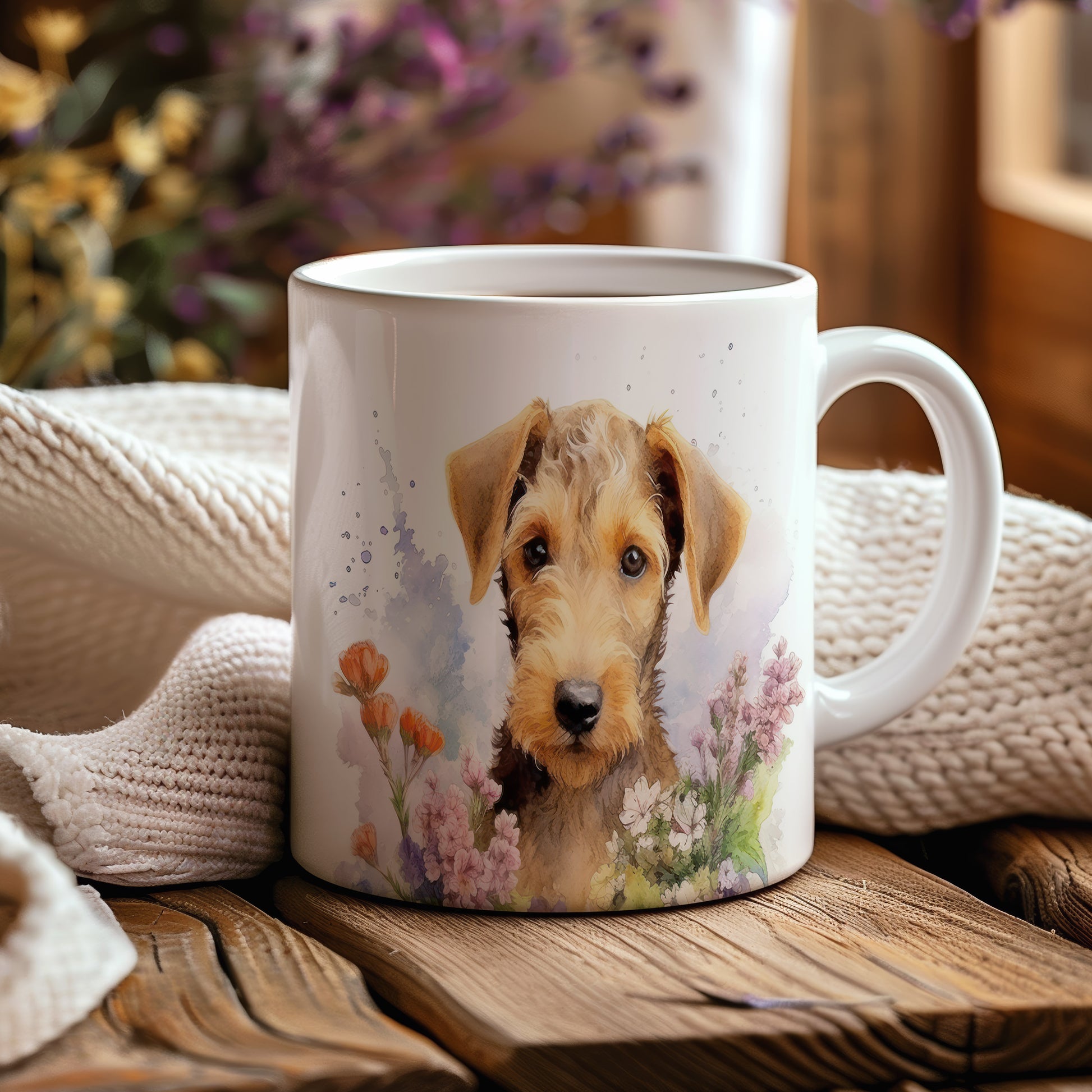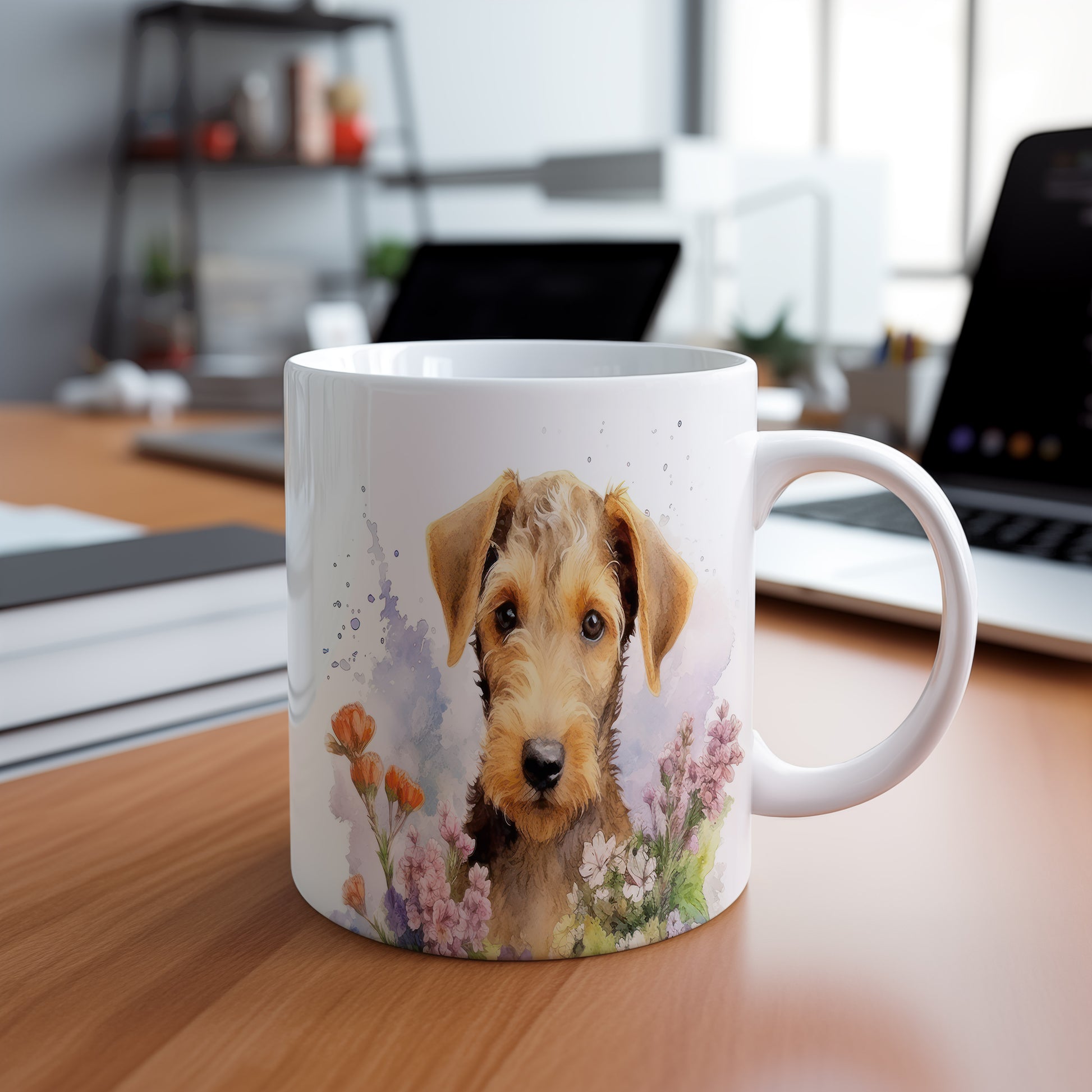 Tento hrnek zobrazuje roztomilého pejska s květinovým pozadím. Je ideální pro milovníky psů a přírody, skvělý tip na dárek pro přátele nebo rodinu. Materiál: keramika. Objem: 330 ml. Vhodné do myčky i mikrovlnky. Používání tohoto hrnku vám přinese radost při každém doušku.
