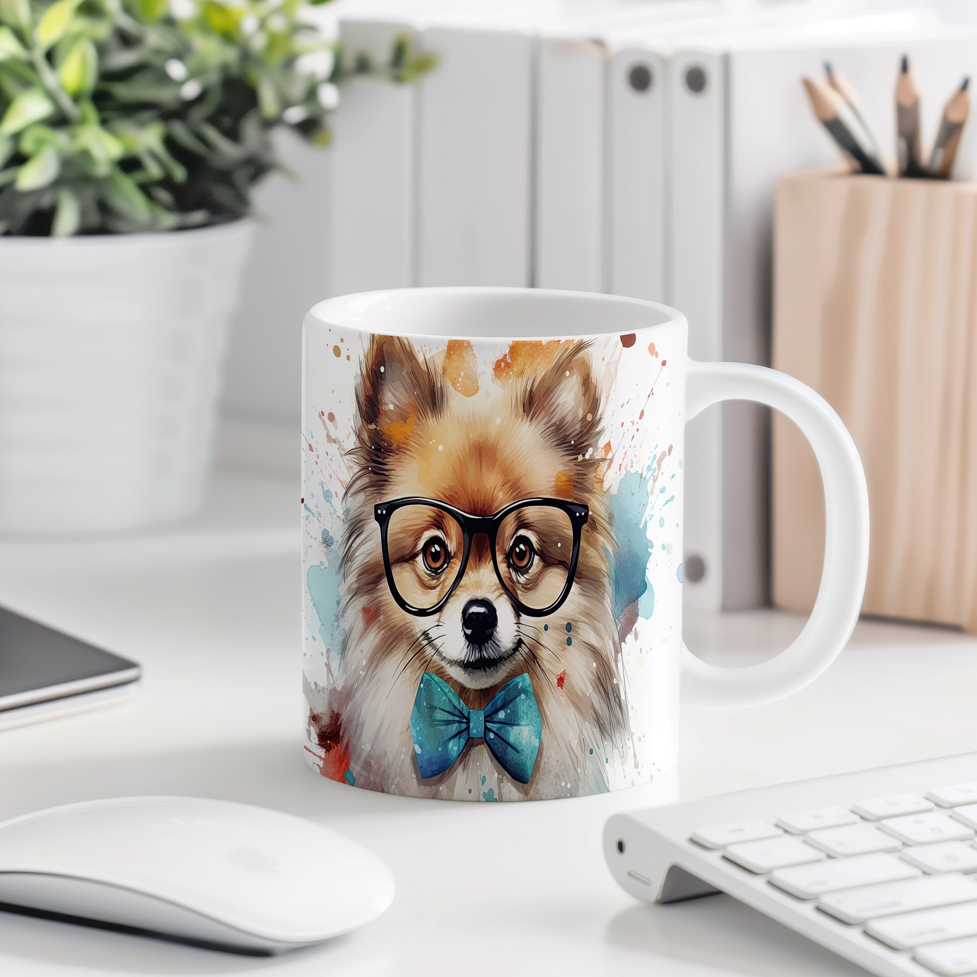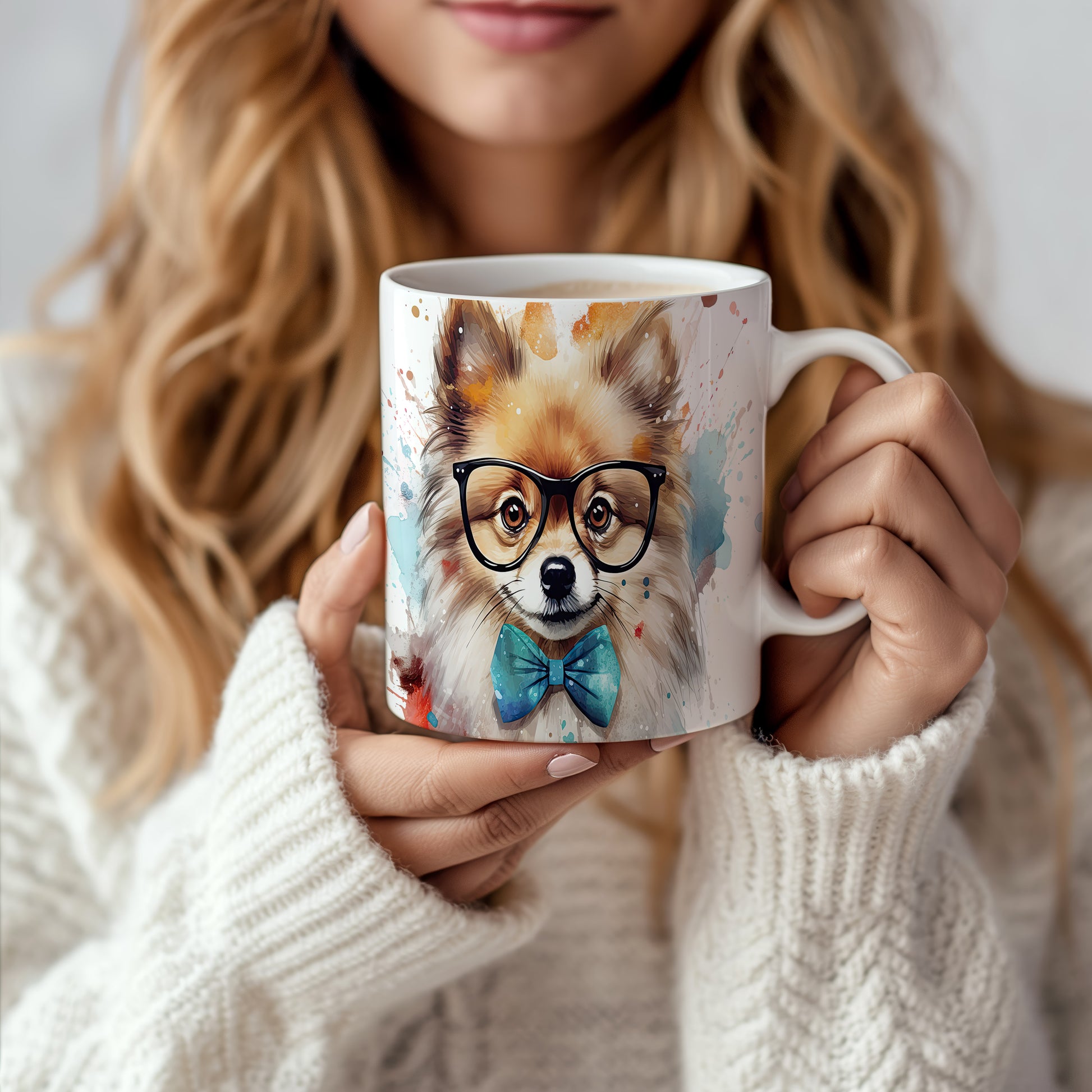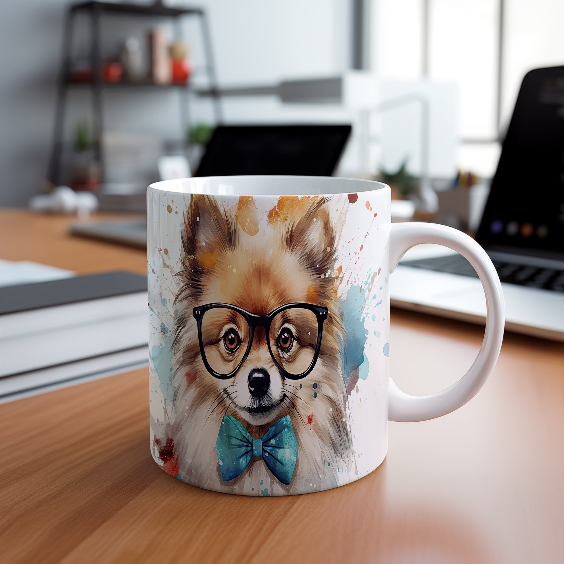 Stylový hrnek s ilustrací roztomilého pejska v brýlích a motýlku. Tento hrnek je ideální pro milovníky psů a moderního designu, skvělý tip na dárek pro přátele nebo rodinu. Materiál: keramika. Objem: 330 ml. Vhodné do myčky i mikrovlnky. Používání tohoto hrnku přináší radost a zábavu při každém doušku.