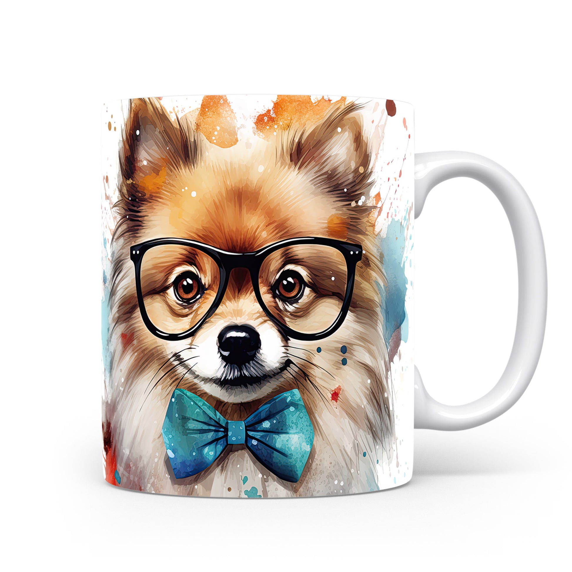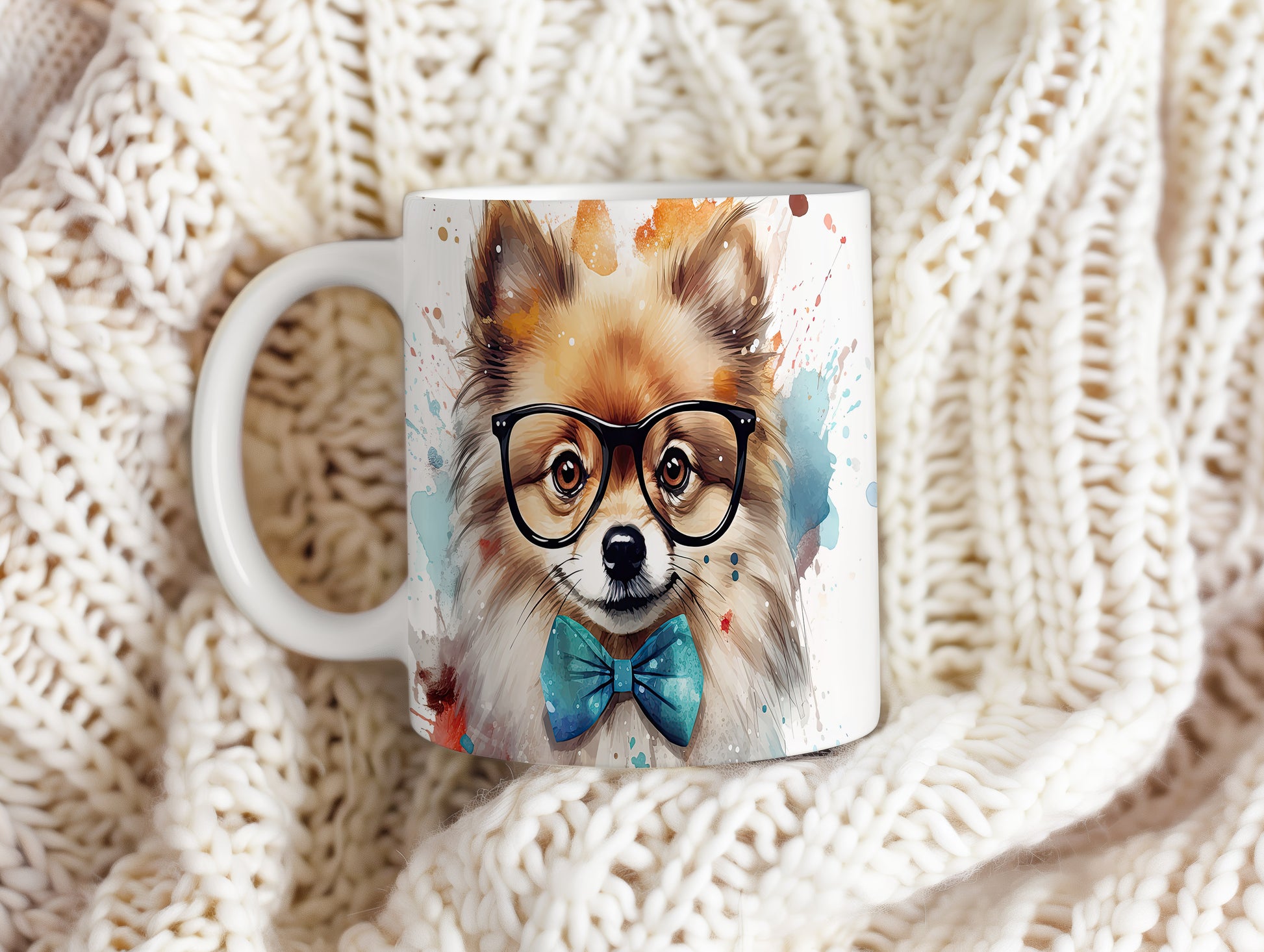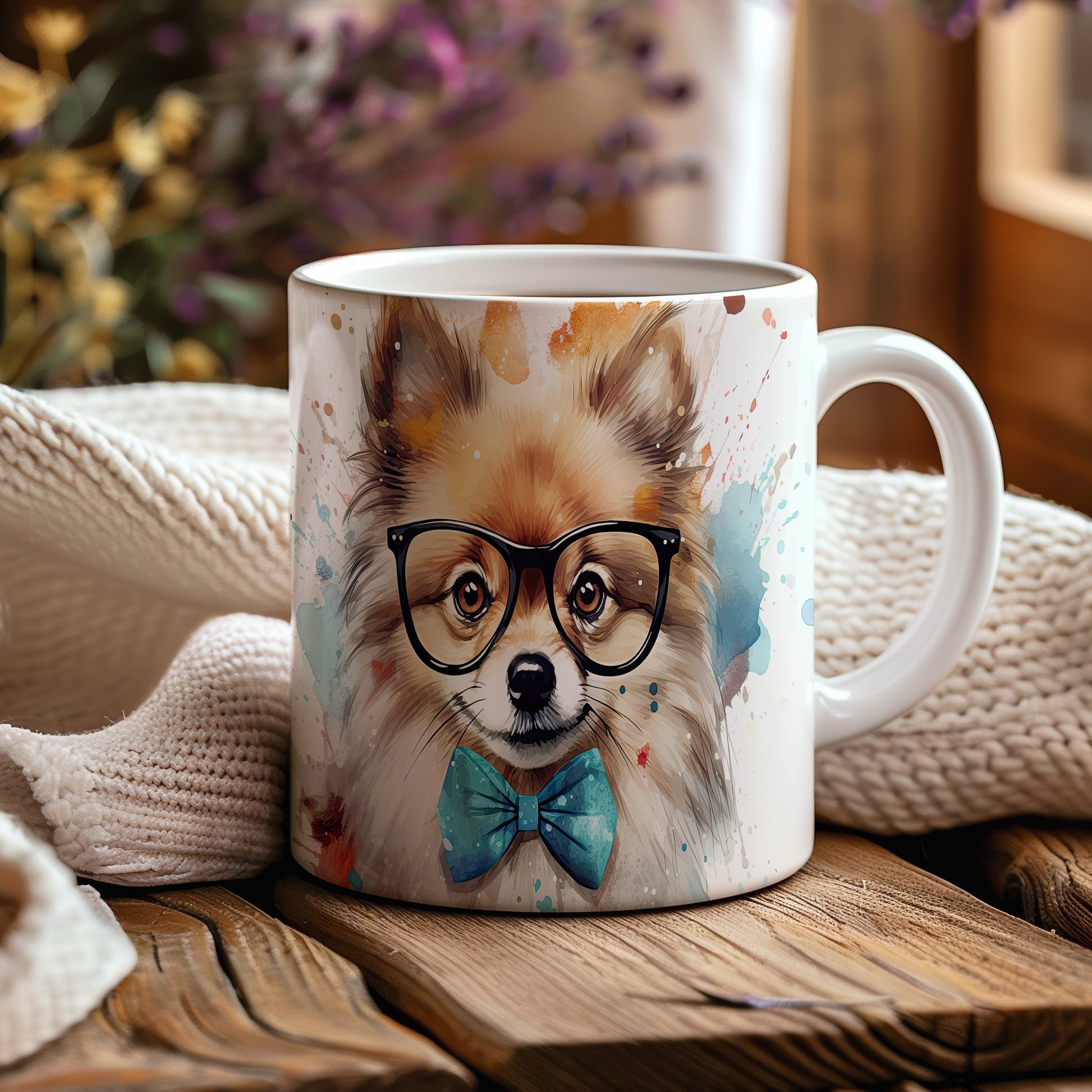 Stylový hrnek s ilustrací roztomilého pejska v brýlích a motýlku. Tento hrnek je ideální pro milovníky psů a moderního designu, skvělý tip na dárek pro přátele nebo rodinu. Materiál: keramika. Objem: 330 ml. Vhodné do myčky i mikrovlnky. Používání tohoto hrnku přináší radost a zábavu při každém doušku.