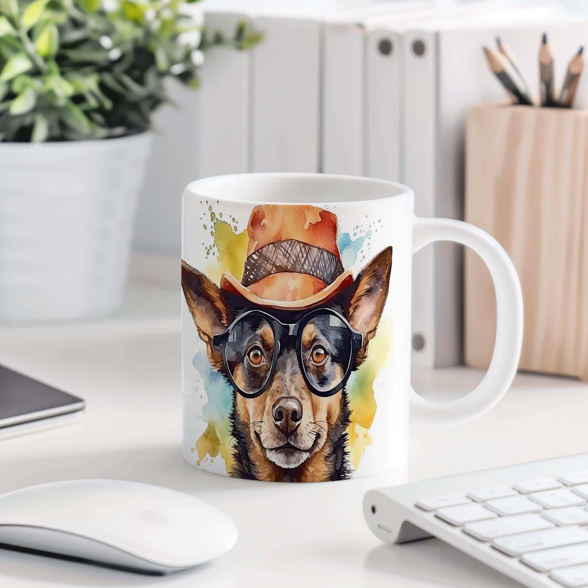 Tento keramický hrnek zobrazuje roztomilého pejska v klobouku, ideální pro milovníky zvířat a skvělý tip na dárek pro přátele. Materiál: keramika. Objem: 330 ml. Vhodné do myčky i mikrovlnky. Užívejte si kávu nebo čaj s tímto veselým motivem, který vám vždy zlepší náladu.