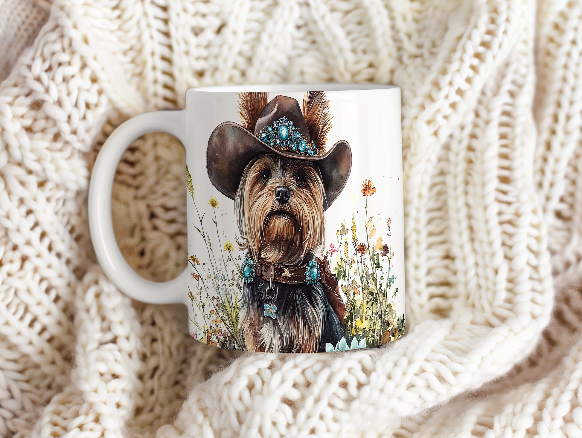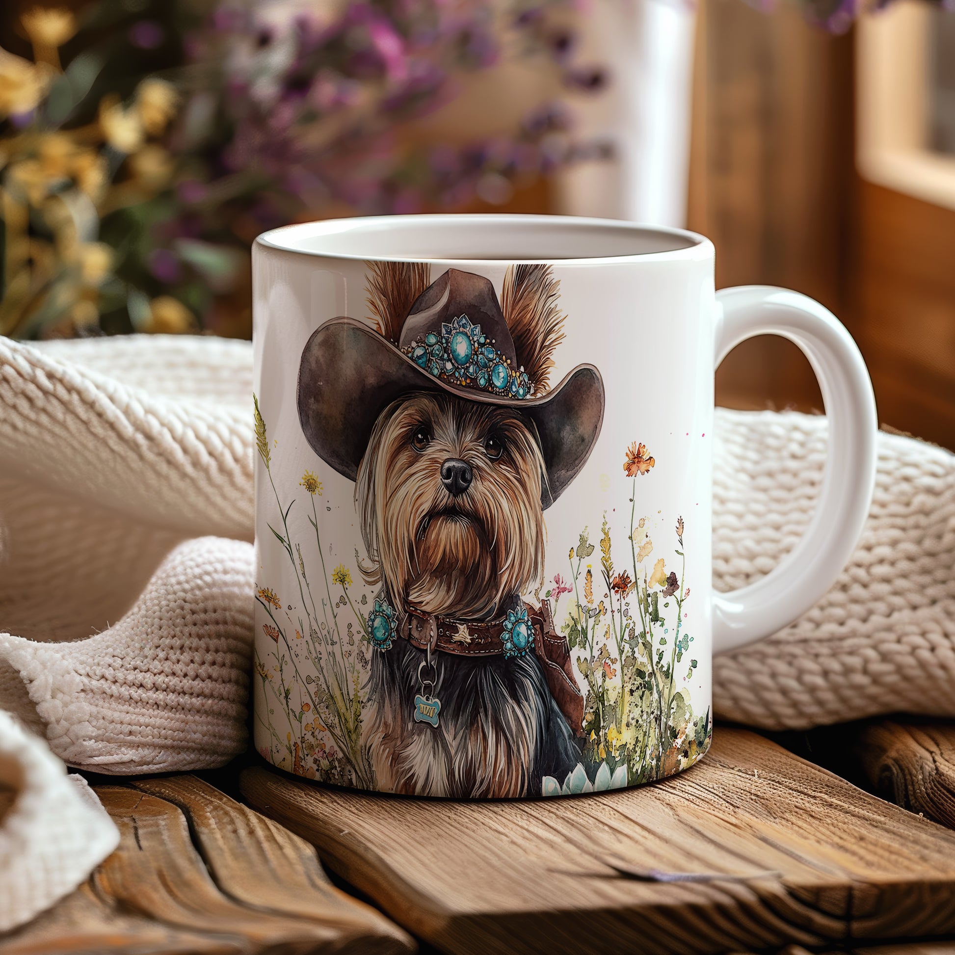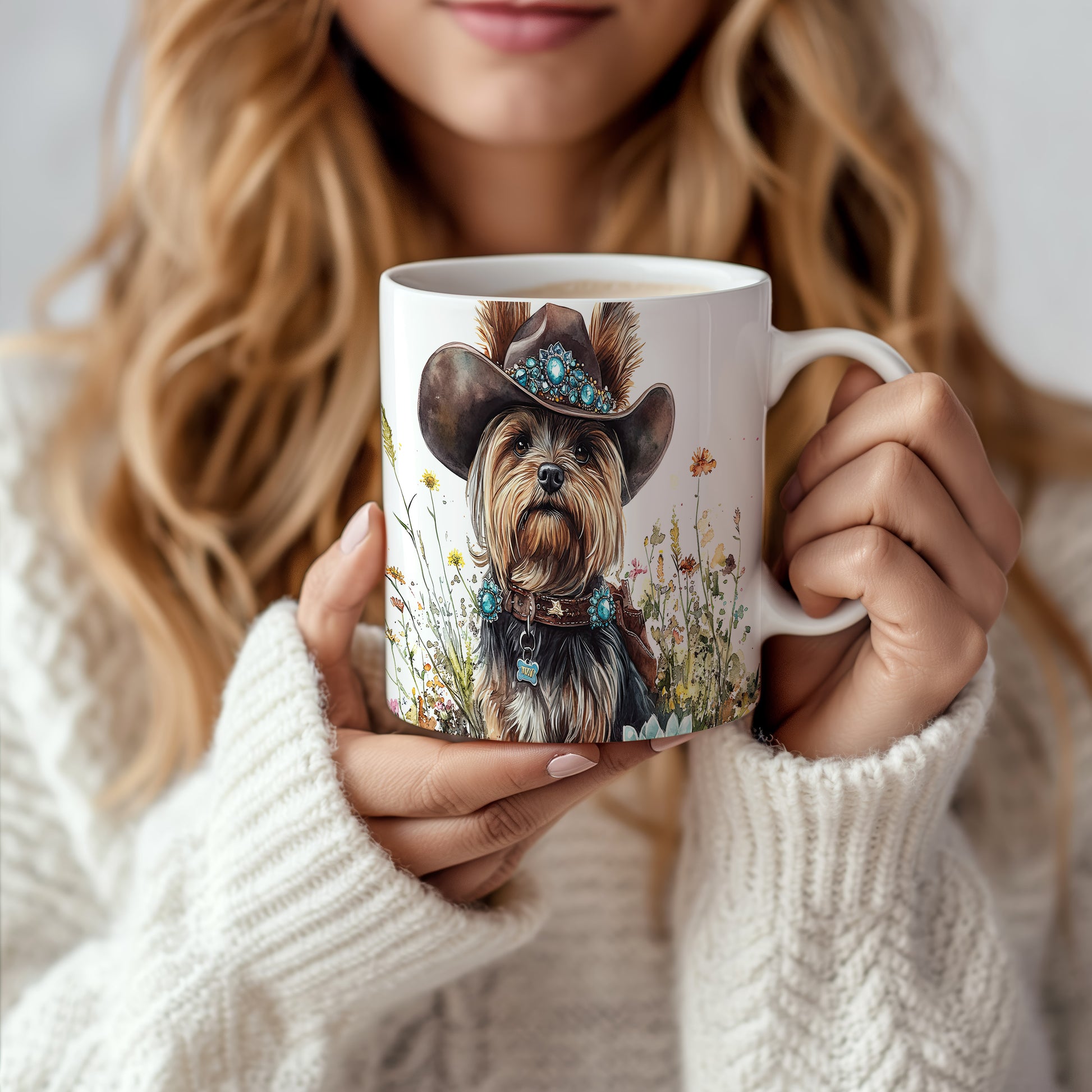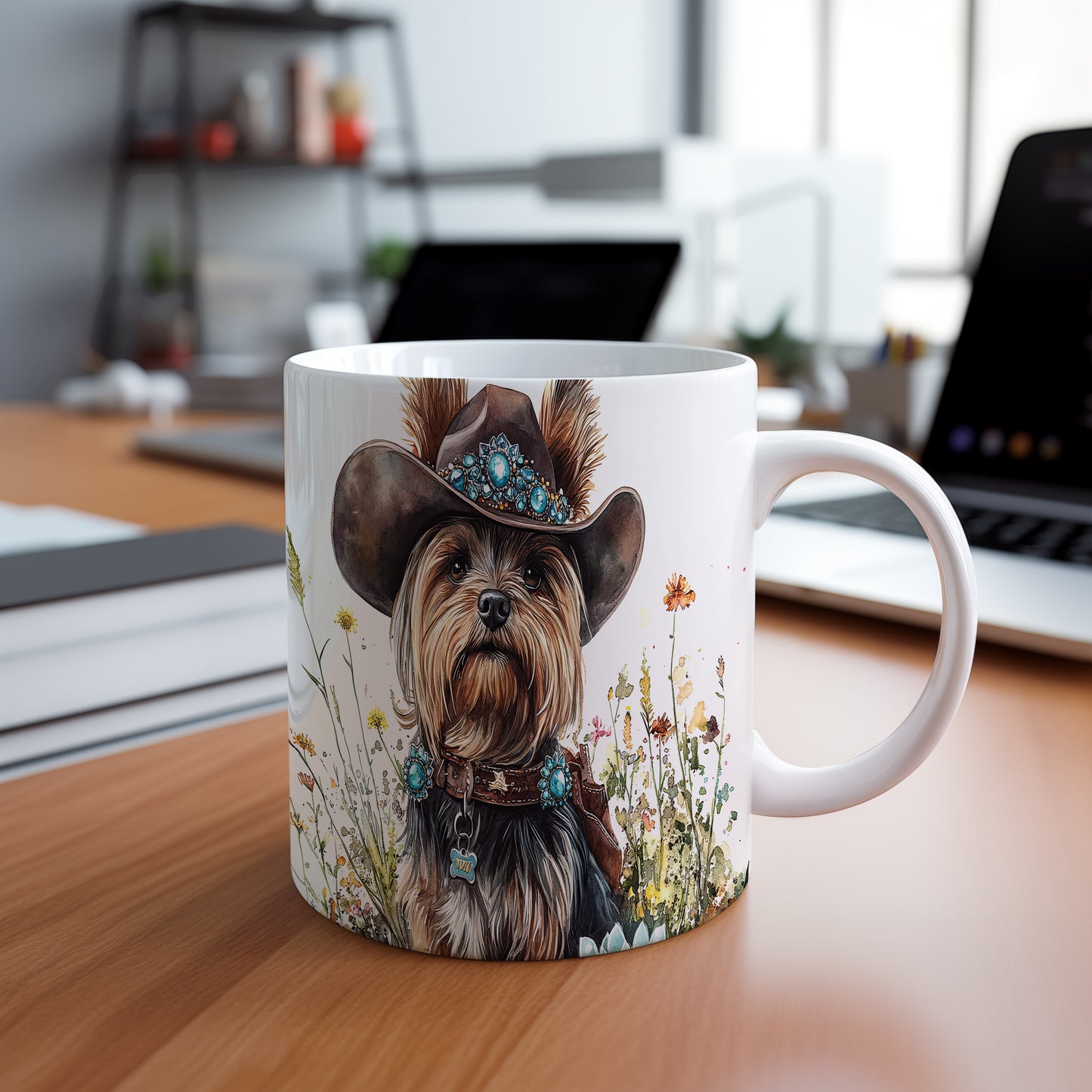 Hrnek s roztomilým yorkshirským teriérem v klobouku – jemnými detaily