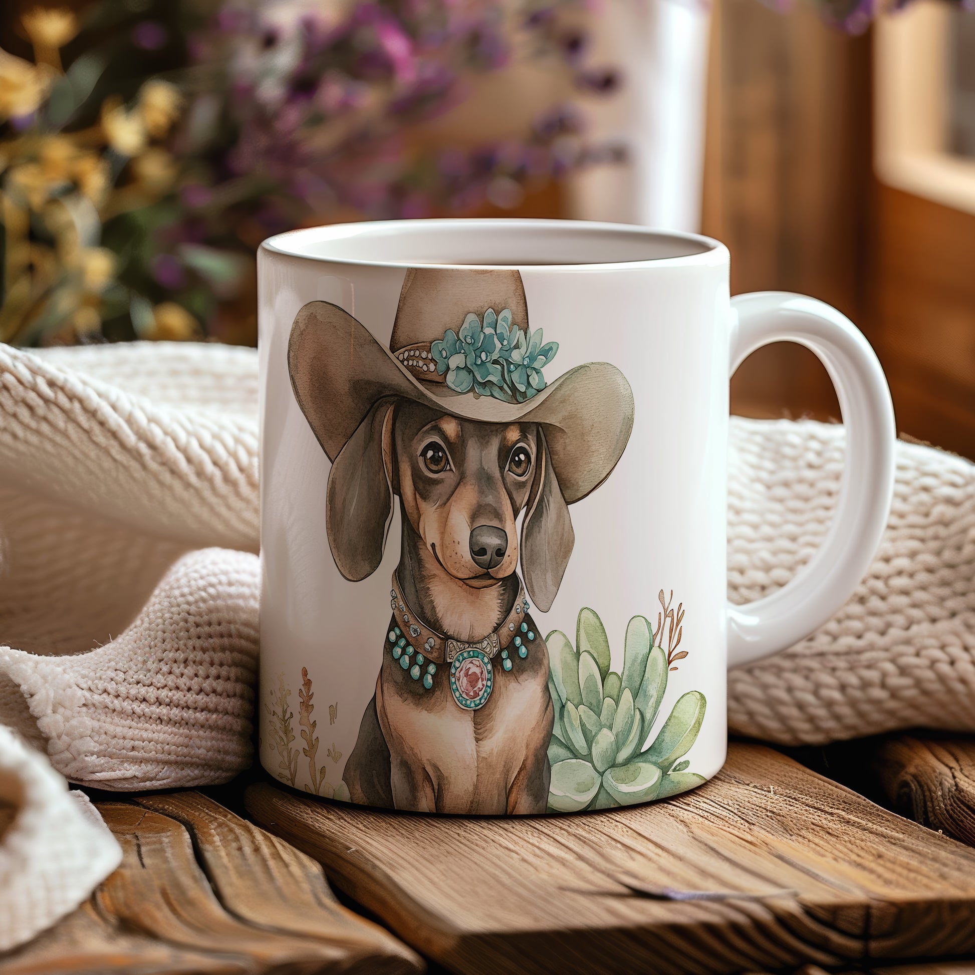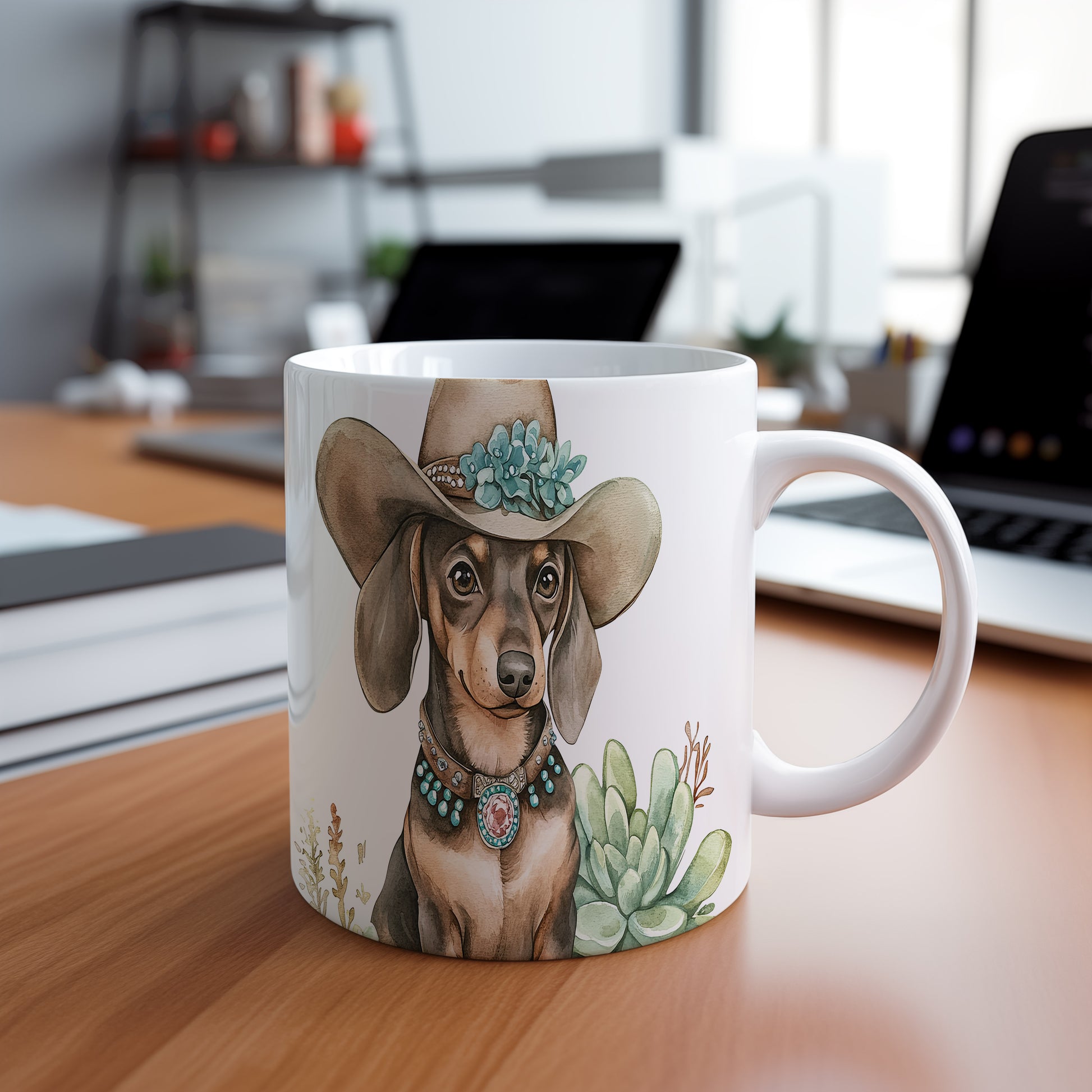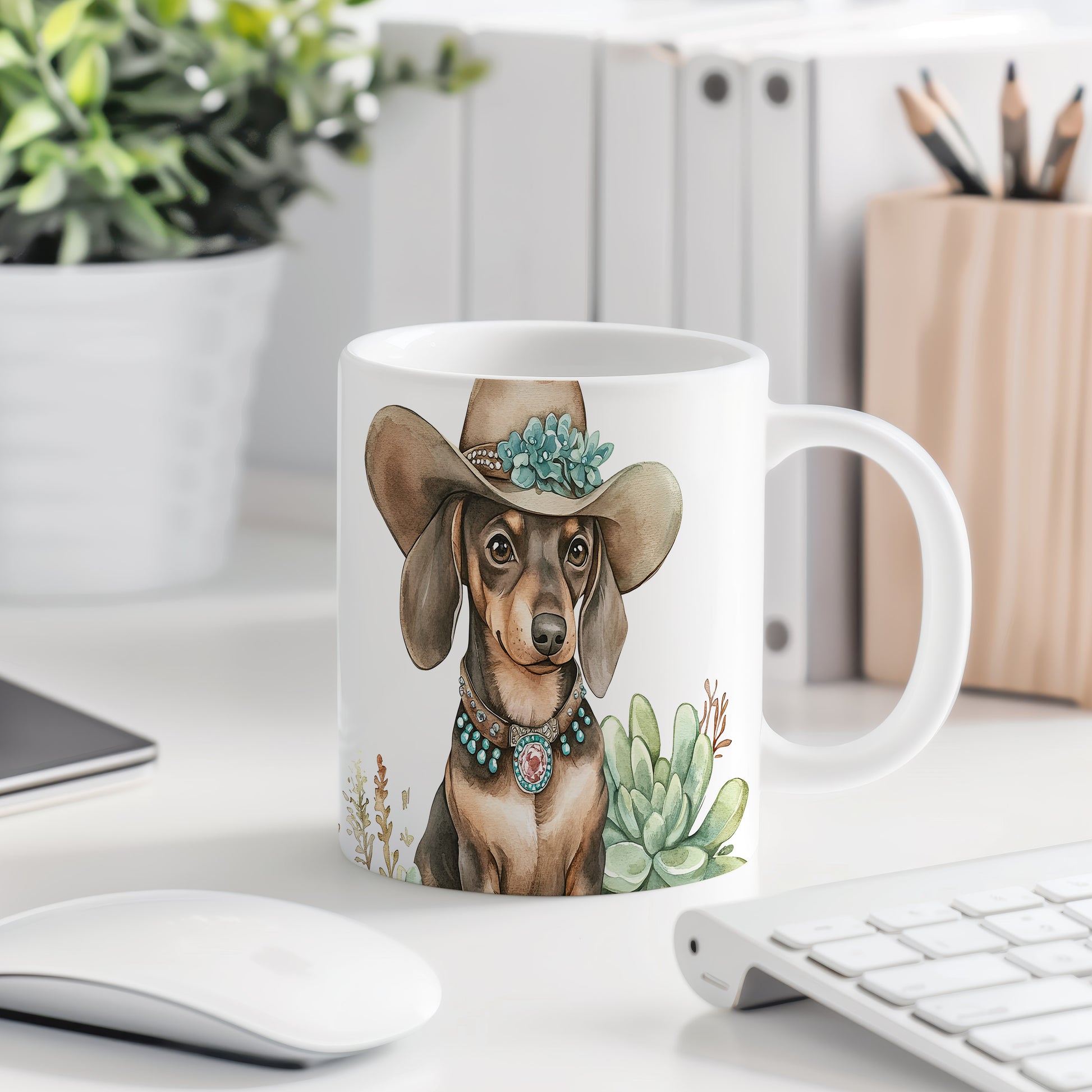 Tento keramický hrnek s motivem roztomilého pejska plemene jezevčík v klobouku je skvělým doplňkem pro milovníky zvířat. Je ideální jako dárek pro přátele nebo rodinu, kteří ocení originální design. Materiál: keramika. Objem: 330 ml. Vhodné do myčky i mikrovlnky. Používání tohoto hrnku přináší radost a zábavu při každém doušku.