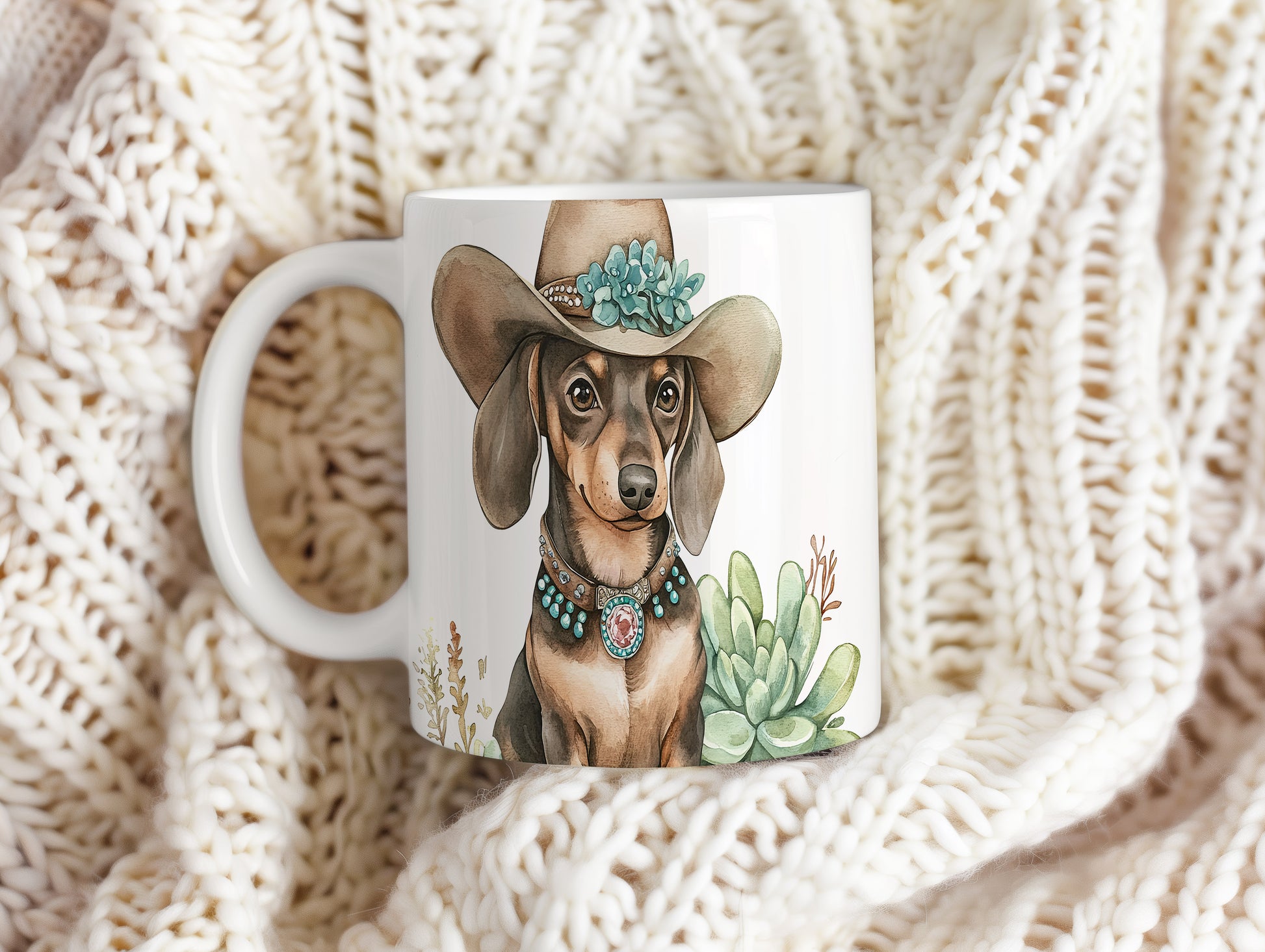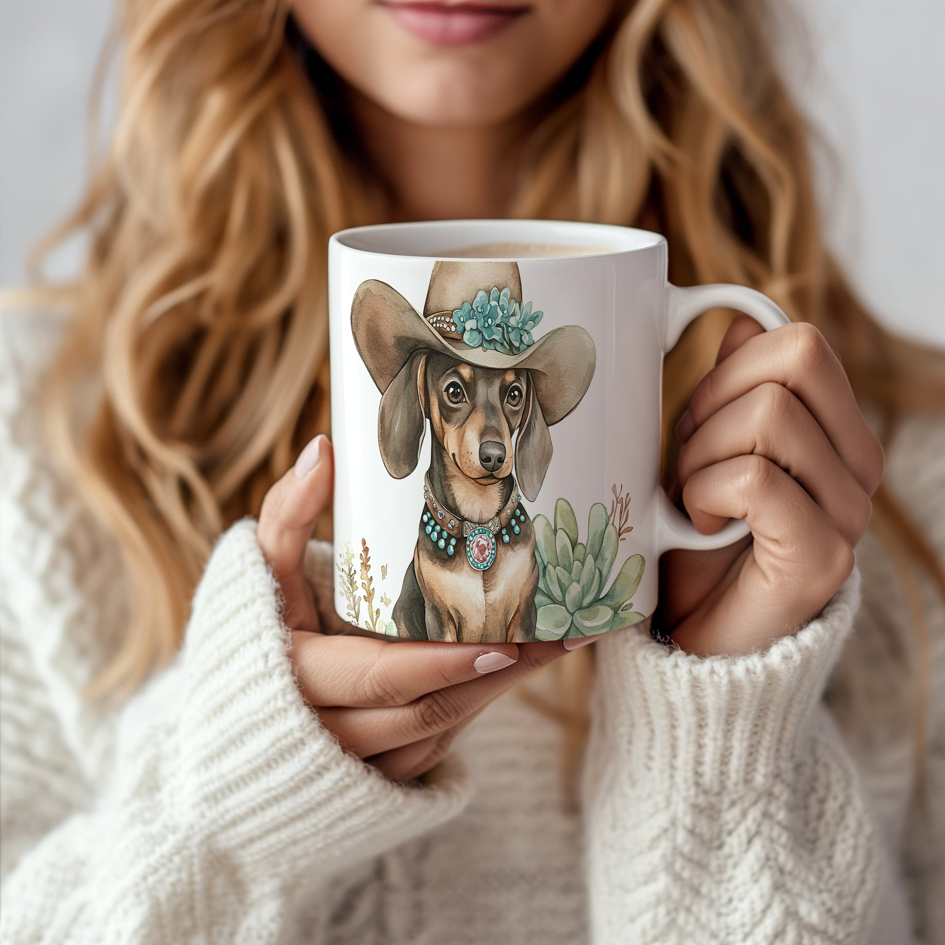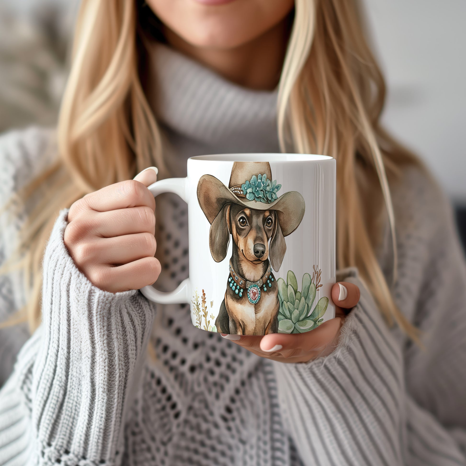 Tento keramický hrnek s motivem roztomilého pejska plemene jezevčík v klobouku je skvělým doplňkem pro milovníky zvířat. Je ideální jako dárek pro přátele nebo rodinu, kteří ocení originální design. Materiál: keramika. Objem: 330 ml. Vhodné do myčky i mikrovlnky. Používání tohoto hrnku přináší radost a zábavu při každém doušku.