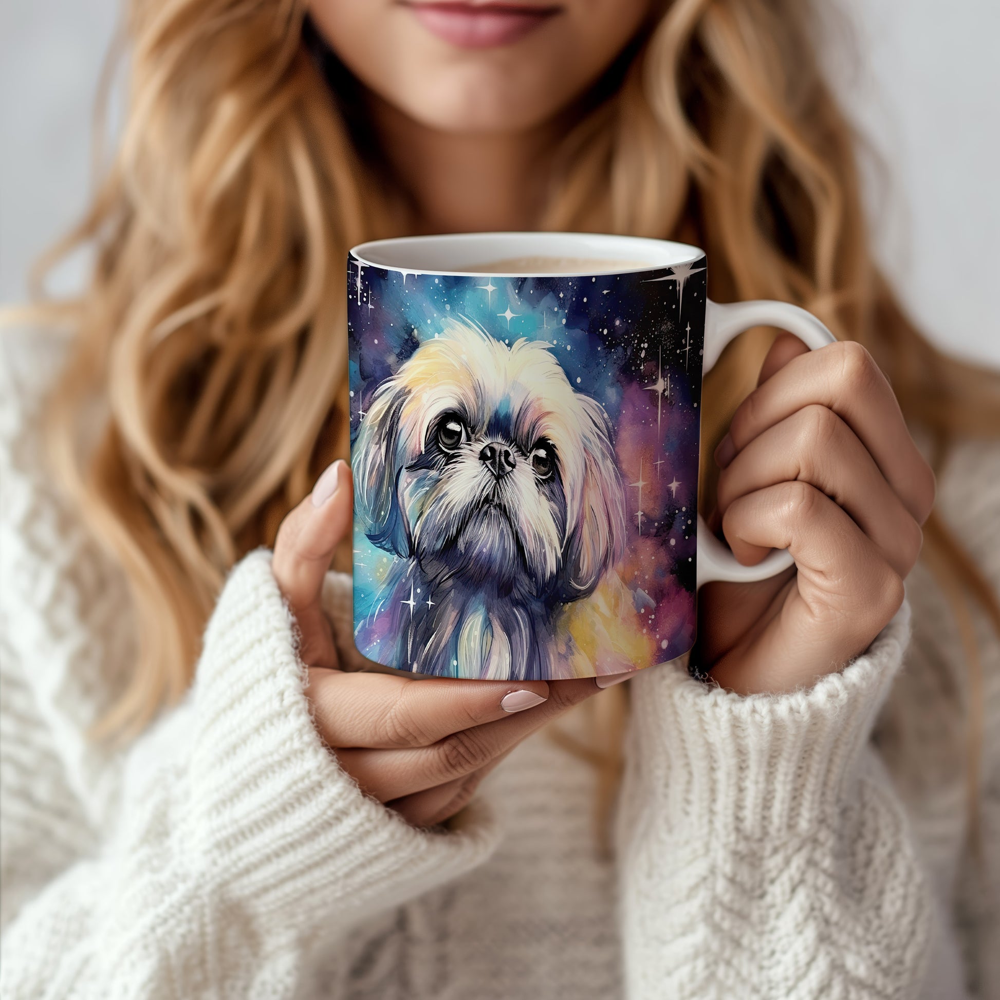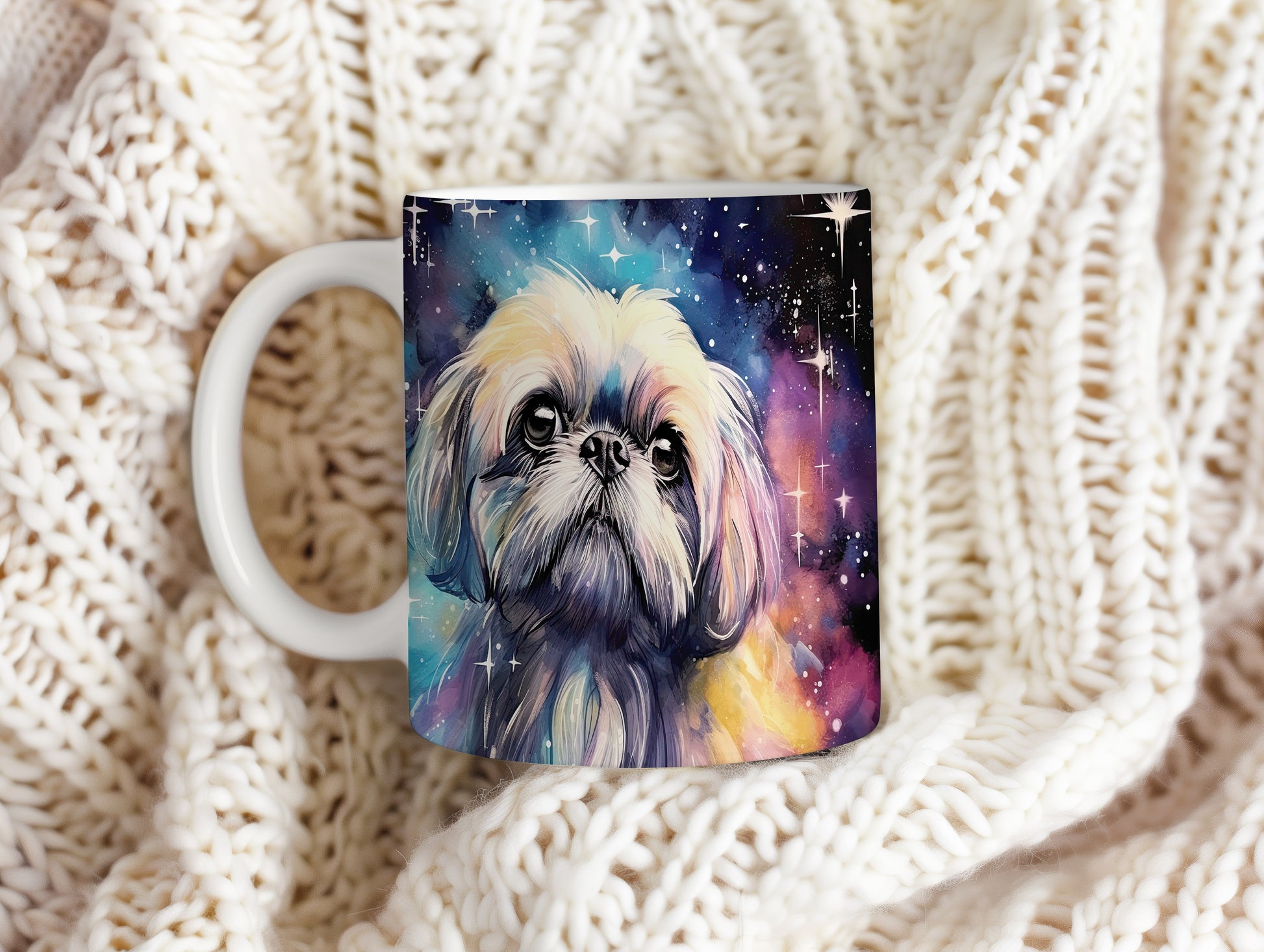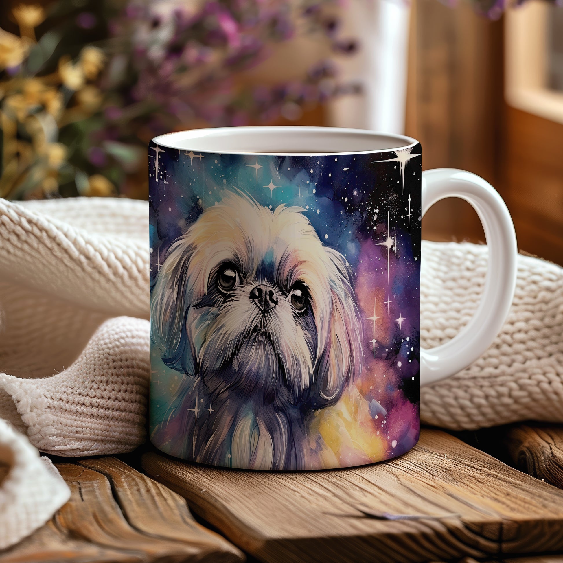 Hrnek s roztomilým pejskem v kouzelném vesmíru