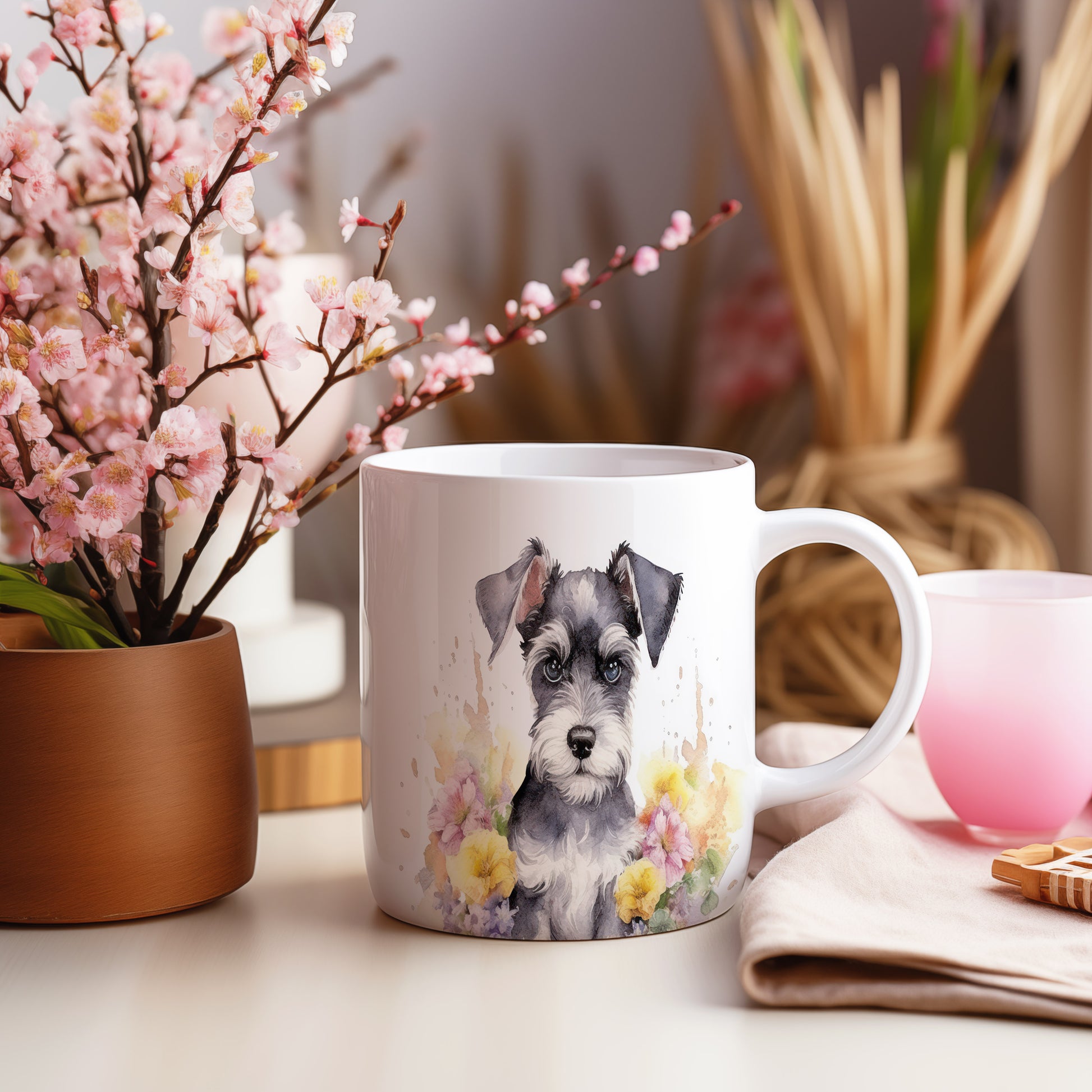 Tento hrnek zobrazuje roztomilého pejska v květinovém designu. Je ideální pro milovníky zvířat a přírody, skvělý tip na dárek pro přátele nebo rodinu. Materiál: keramika. Objem: 330 ml. Vhodné do myčky i mikrovlnky. Používání tohoto hrnku přináší radost a útulnost do každého dne.