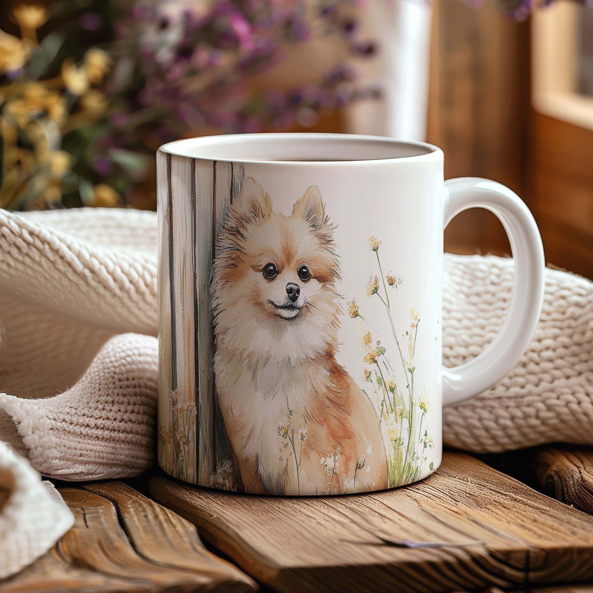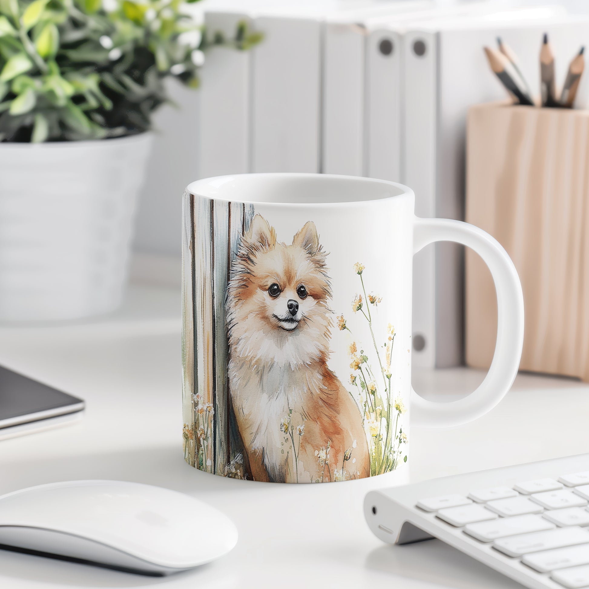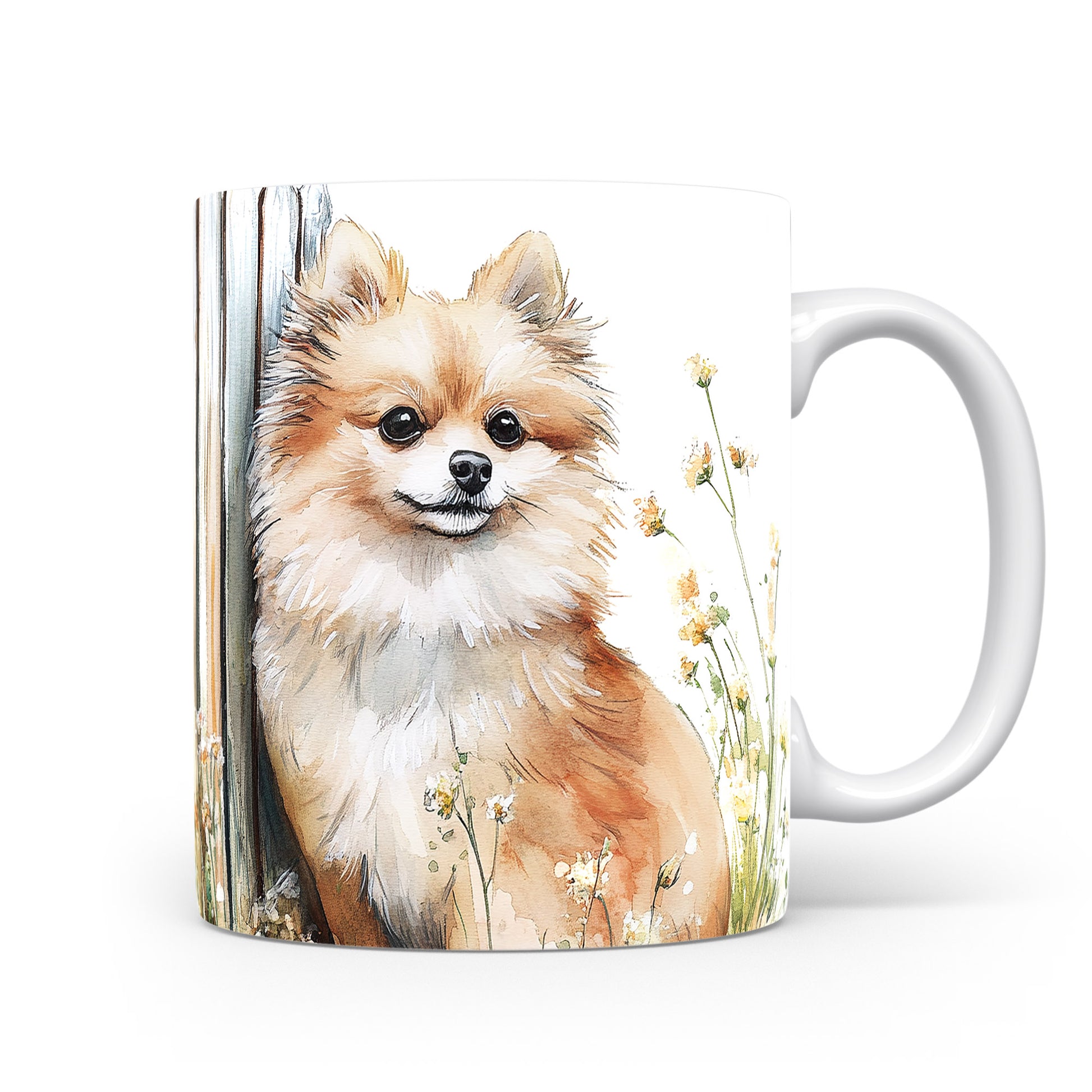 Na hrnku je zobrazen roztomilý pomeranian pejsek obklopený květinami. Tento hrnek je ideální pro všechny milovníky zvířat a skvělým dárkem pro přátele či rodinu. Materiál: keramika. Objem: 330 ml. Vhodné do myčky i mikrovlnky. Používání tohoto hrnku přináší radost a útulnost do každodenního pití.