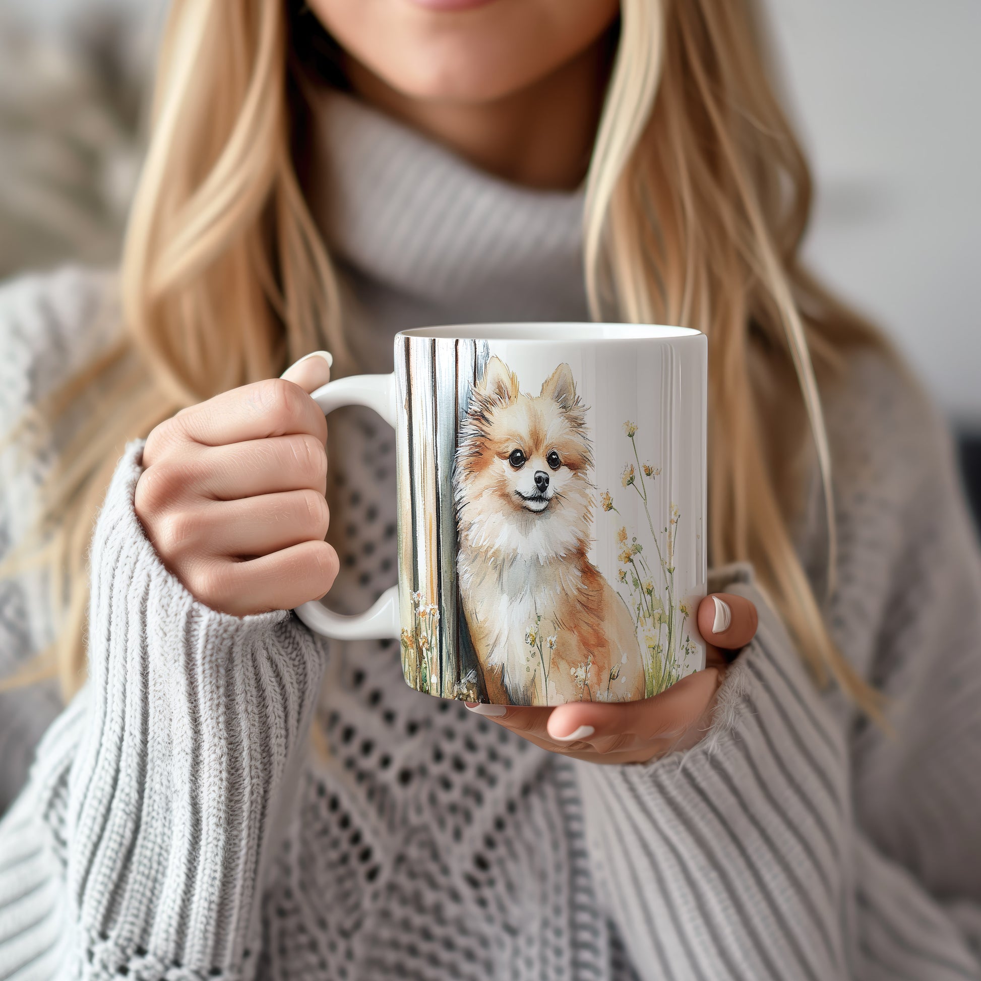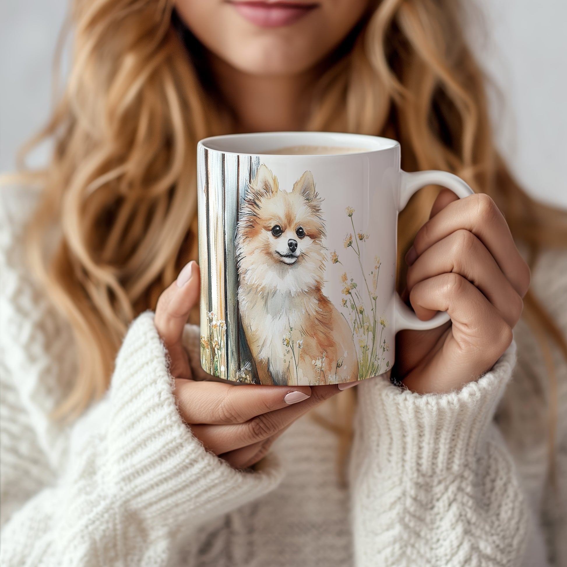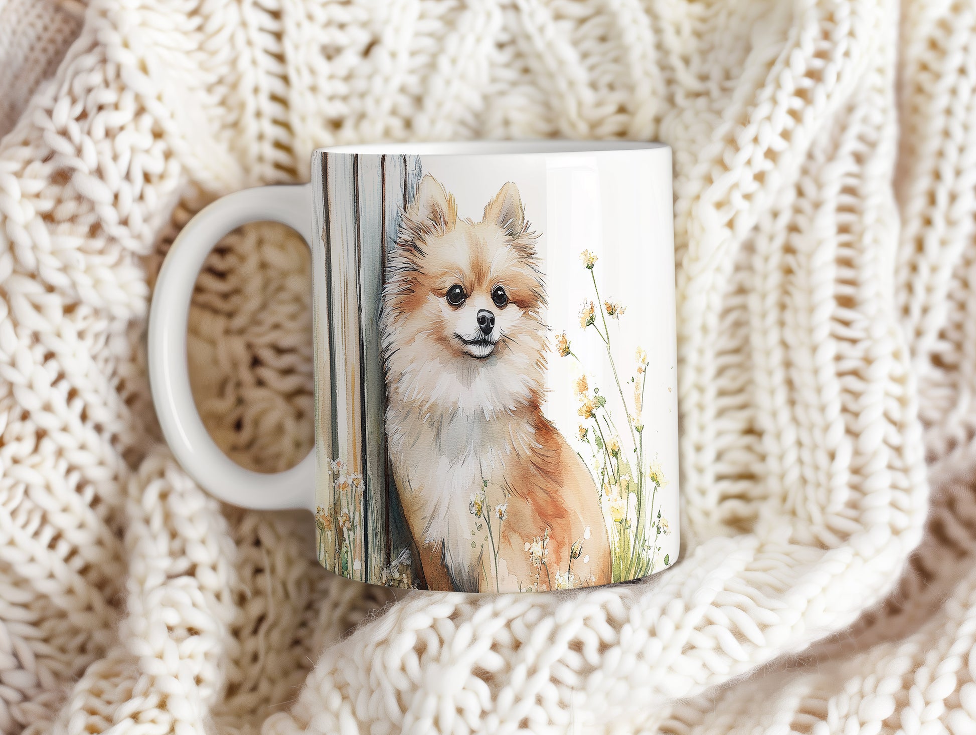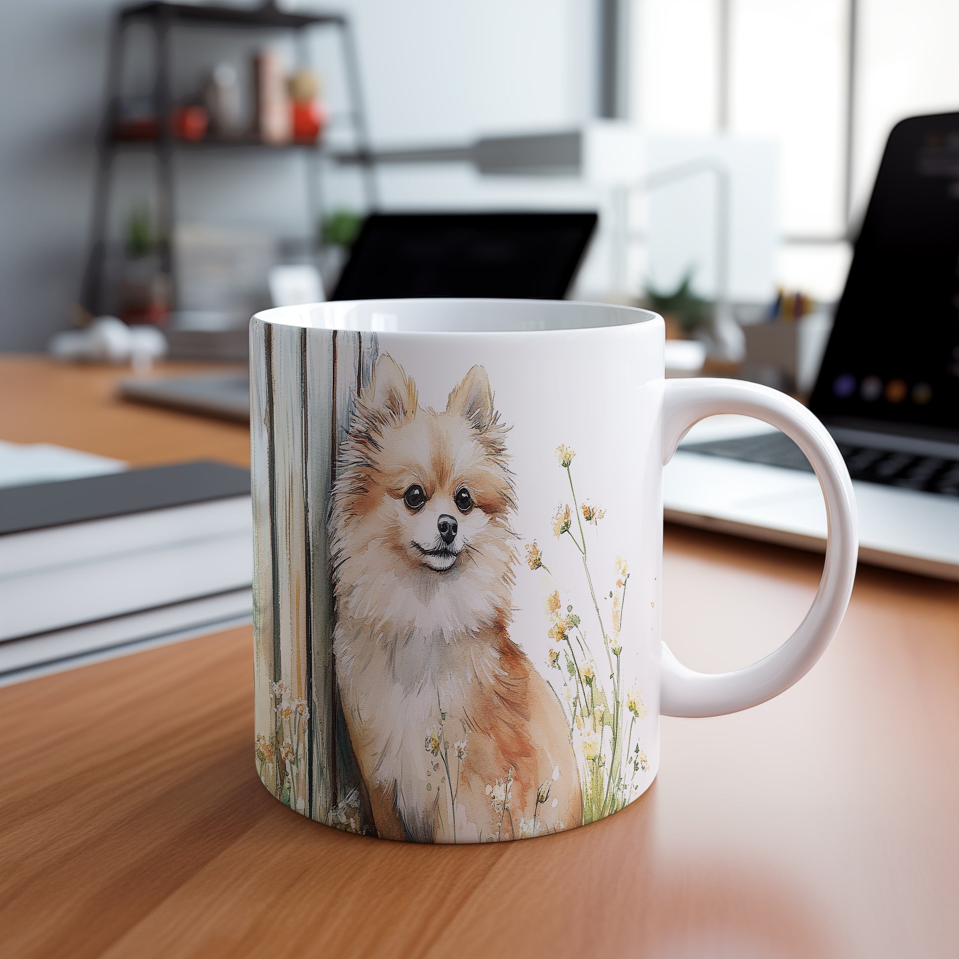 Na hrnku je zobrazen roztomilý pomeranian pejsek obklopený květinami. Tento hrnek je ideální pro všechny milovníky zvířat a skvělým dárkem pro přátele či rodinu. Materiál: keramika. Objem: 330 ml. Vhodné do myčky i mikrovlnky. Používání tohoto hrnku přináší radost a útulnost do každodenního pití.