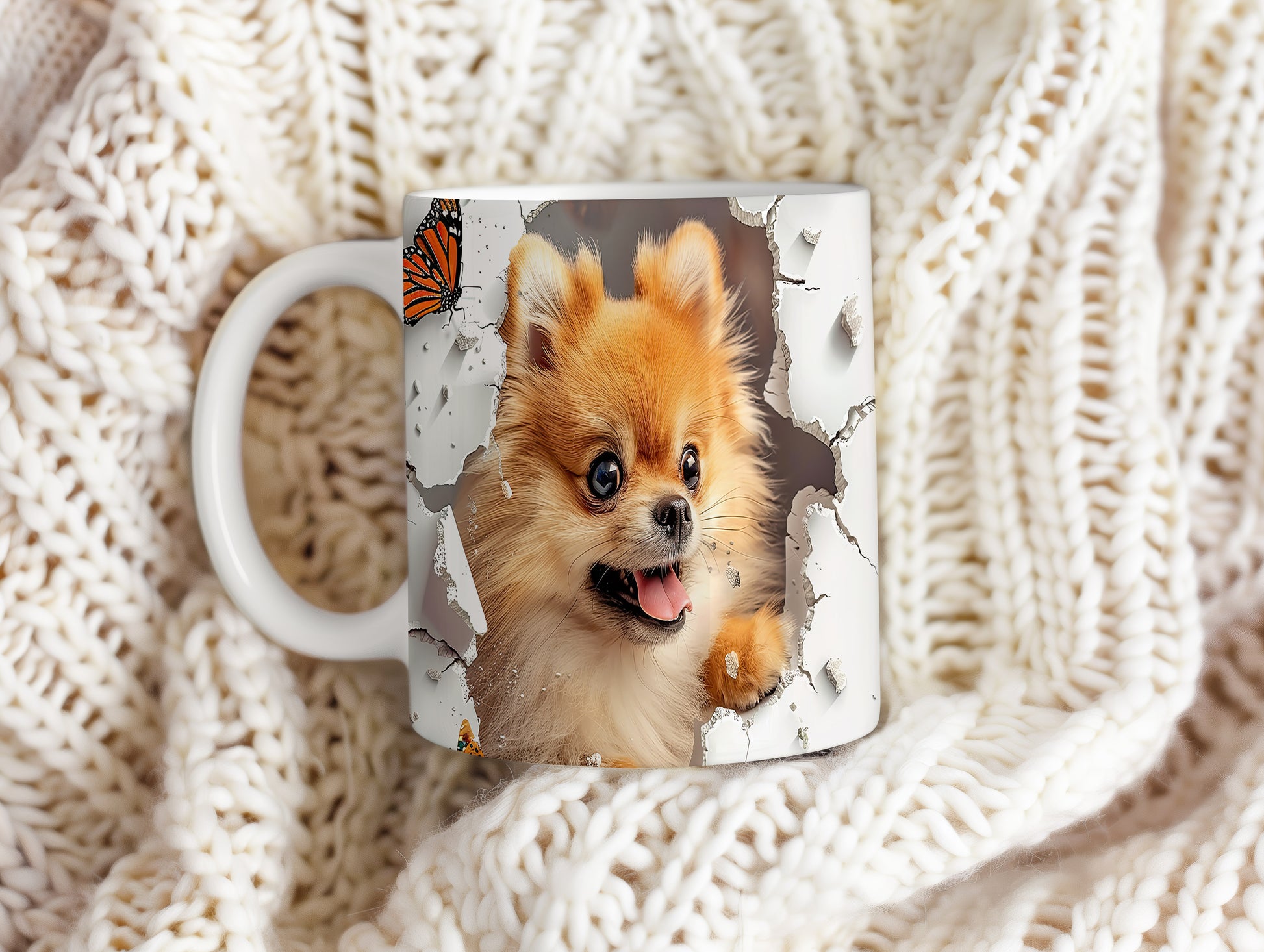 Hrnek s roztomilým pomeranianem – 3D efektem