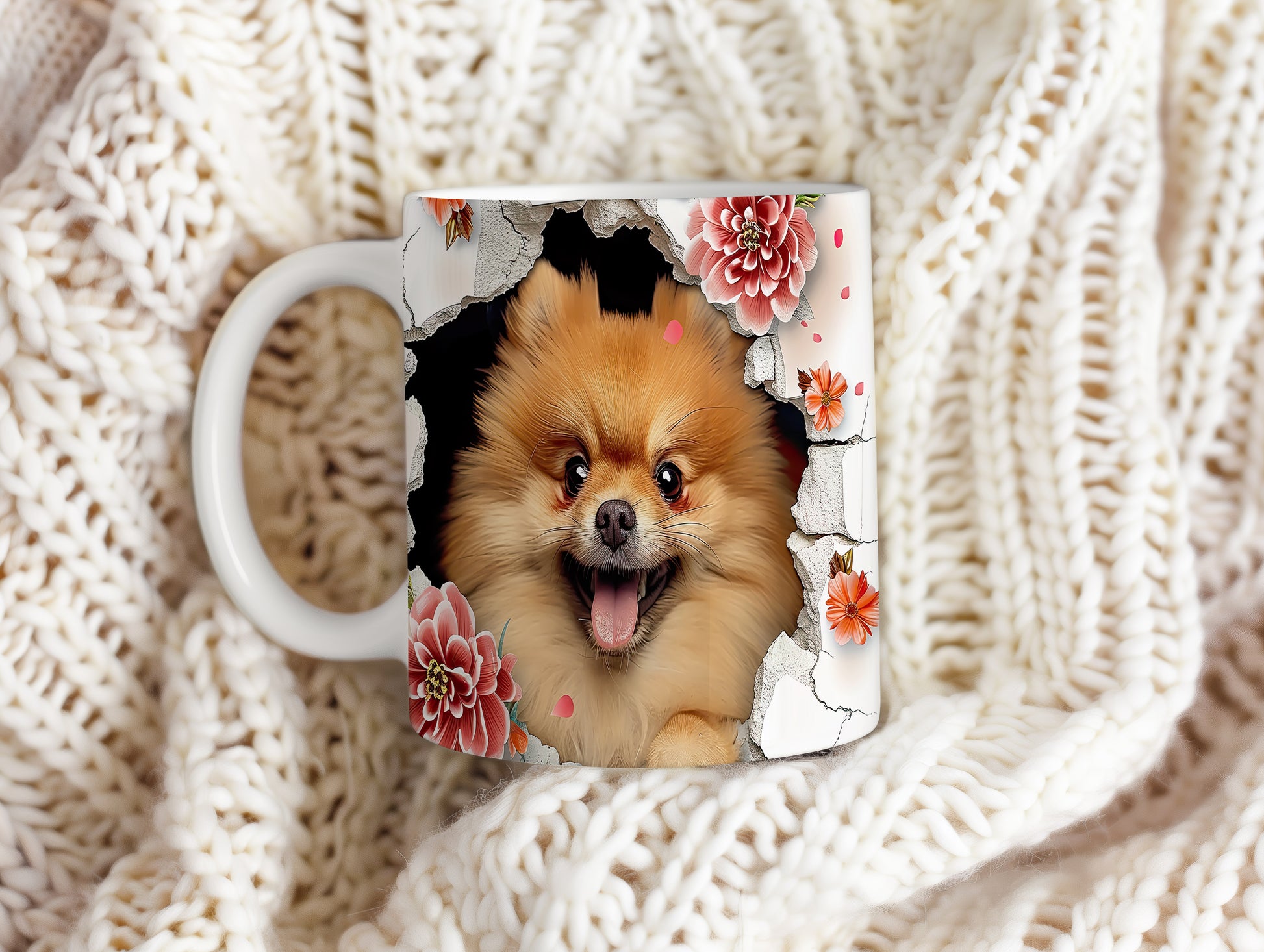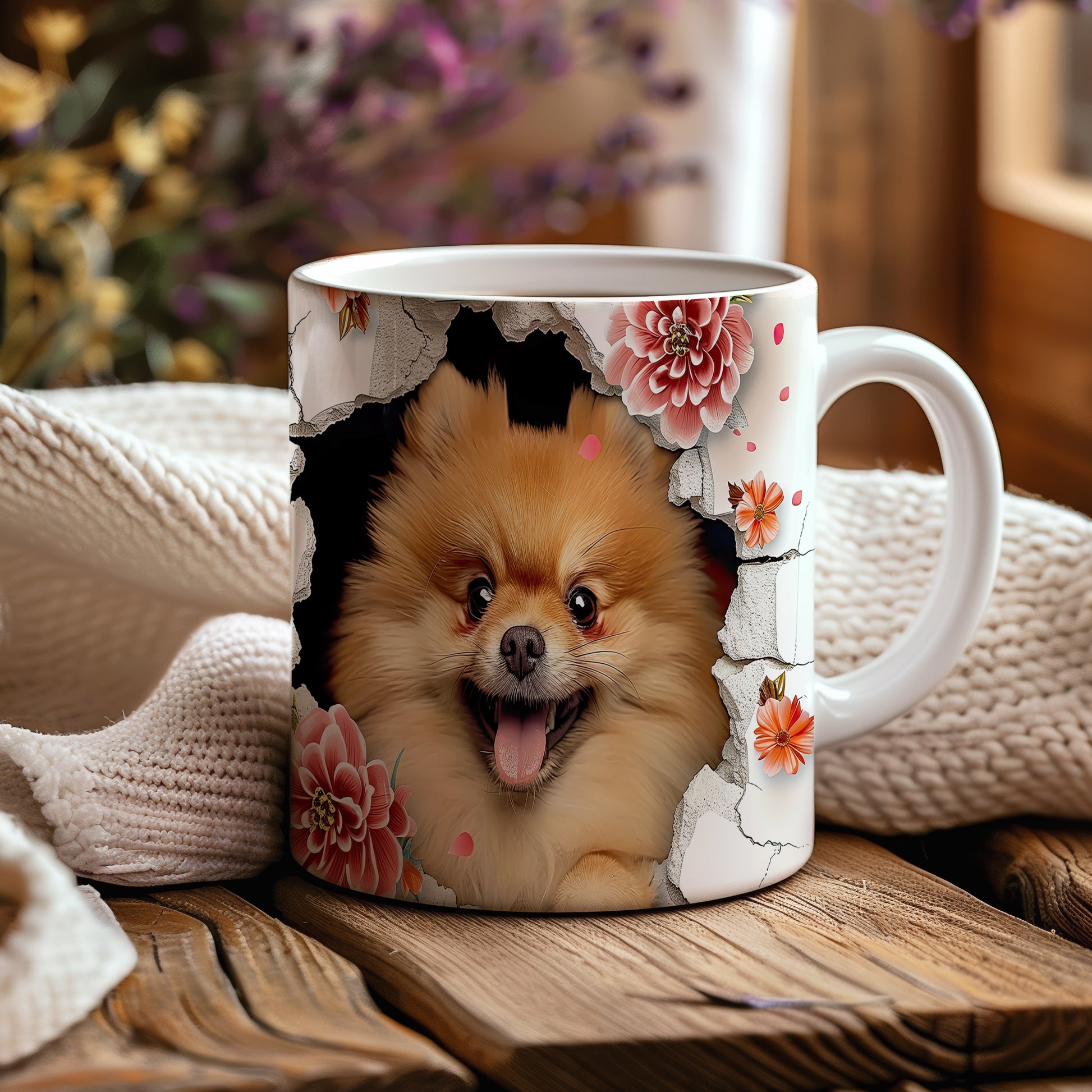 Hrnek s motivem roztomilého pomeraniana a květin je skvělým doplňkem pro každého milovníka psů. Tento hrnek potěší nejen vás, ale i jako originální dárek pro přátele a rodinu. Materiál: keramika. Objem: 330 ml. Vhodné do myčky i mikrovlnky. Díky svému designu přináší radost a dobrou náladu při každém doušku.