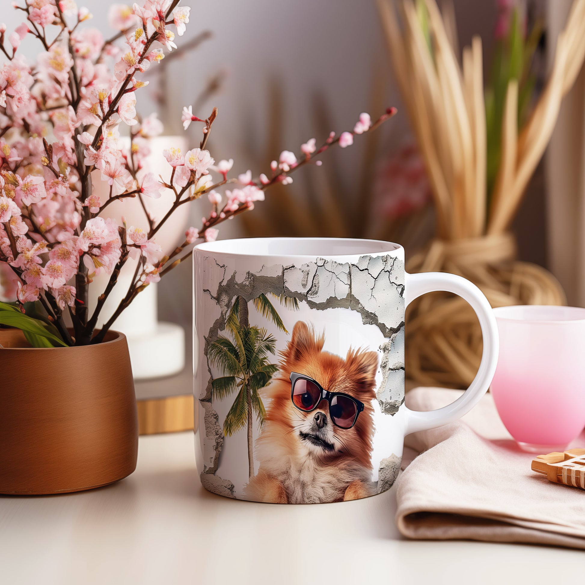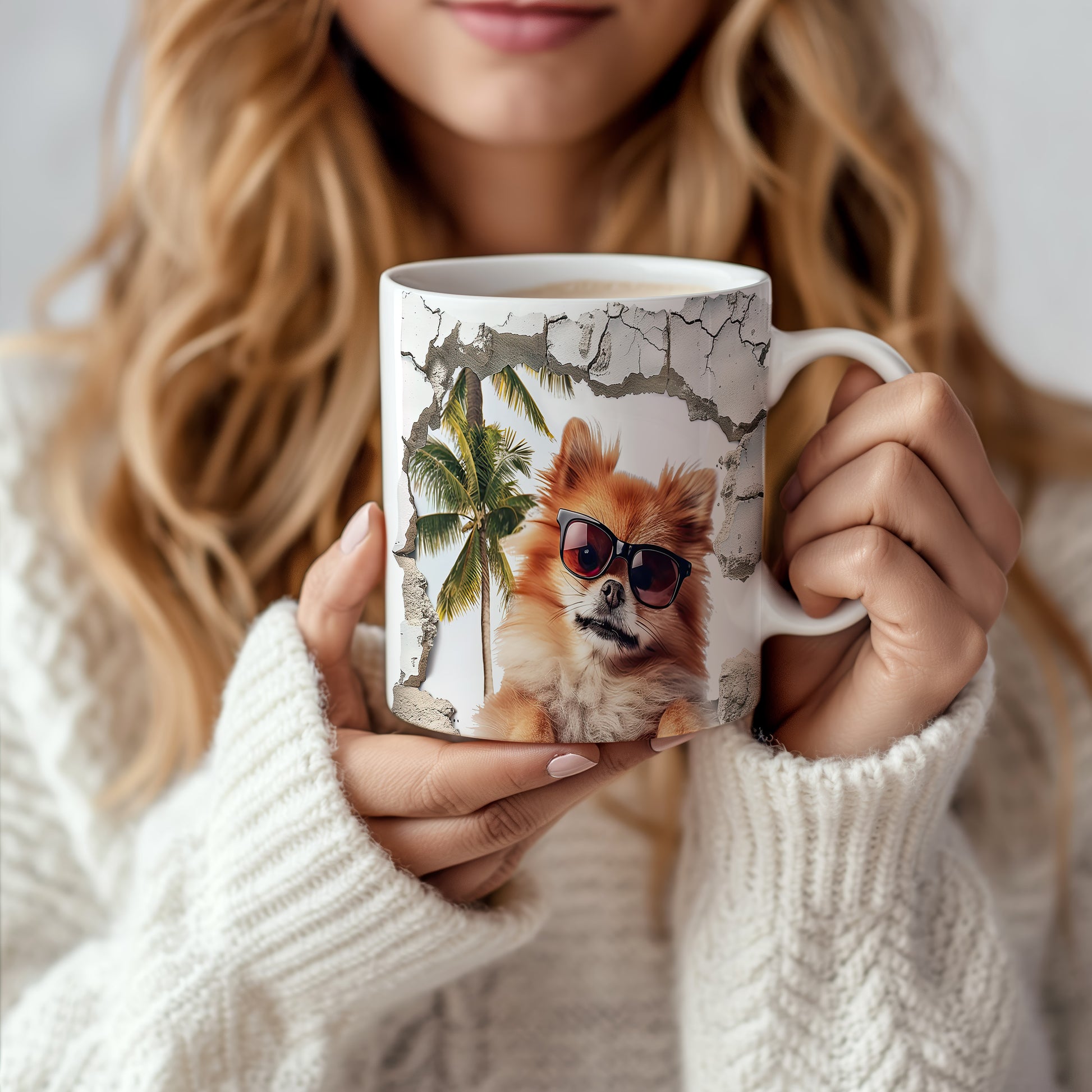 Hrnek s roztomilým pomeranianem v slunečních brýlích přináší radost a letní atmosféru. Je ideální pro milovníky psů a skvělý tip na dárek pro přátele nebo rodinu. Materiál: keramika. Objem: 330 ml. Vhodné do myčky i mikrovlnky. Tento hrnek vám zpříjemní každé ráno a dodá úsměv na tvář.