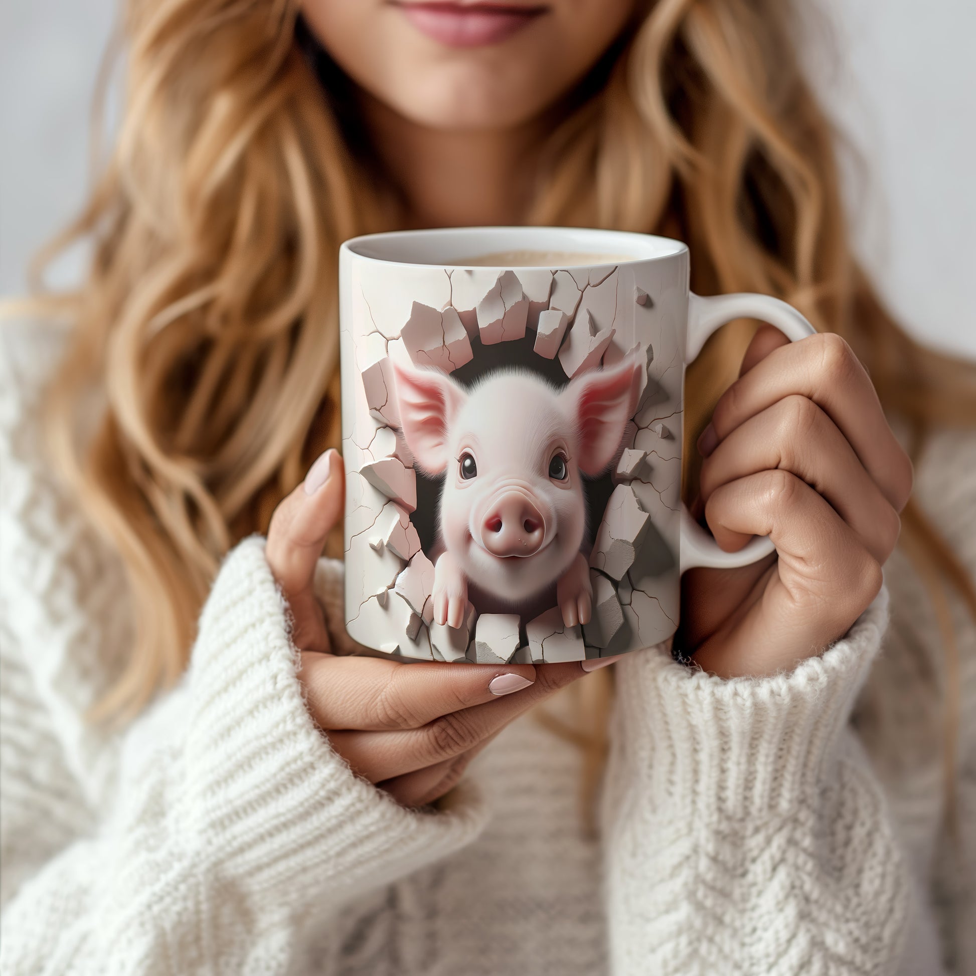 Tento hrnek s motivem roztomilého prasátka je skvělým kouskem pro milovníky zvířat a veselých designů. Je ideální jako dárek pro děti nebo přátele, kteří ocení hravé a originální doplňky. Materiál: keramika. Objem: 330 ml. Vhodné do myčky i mikrovlnky. Používání tohoto hrnku přináší radost a zábavu při každém doušku vašeho oblíbeného nápoje.