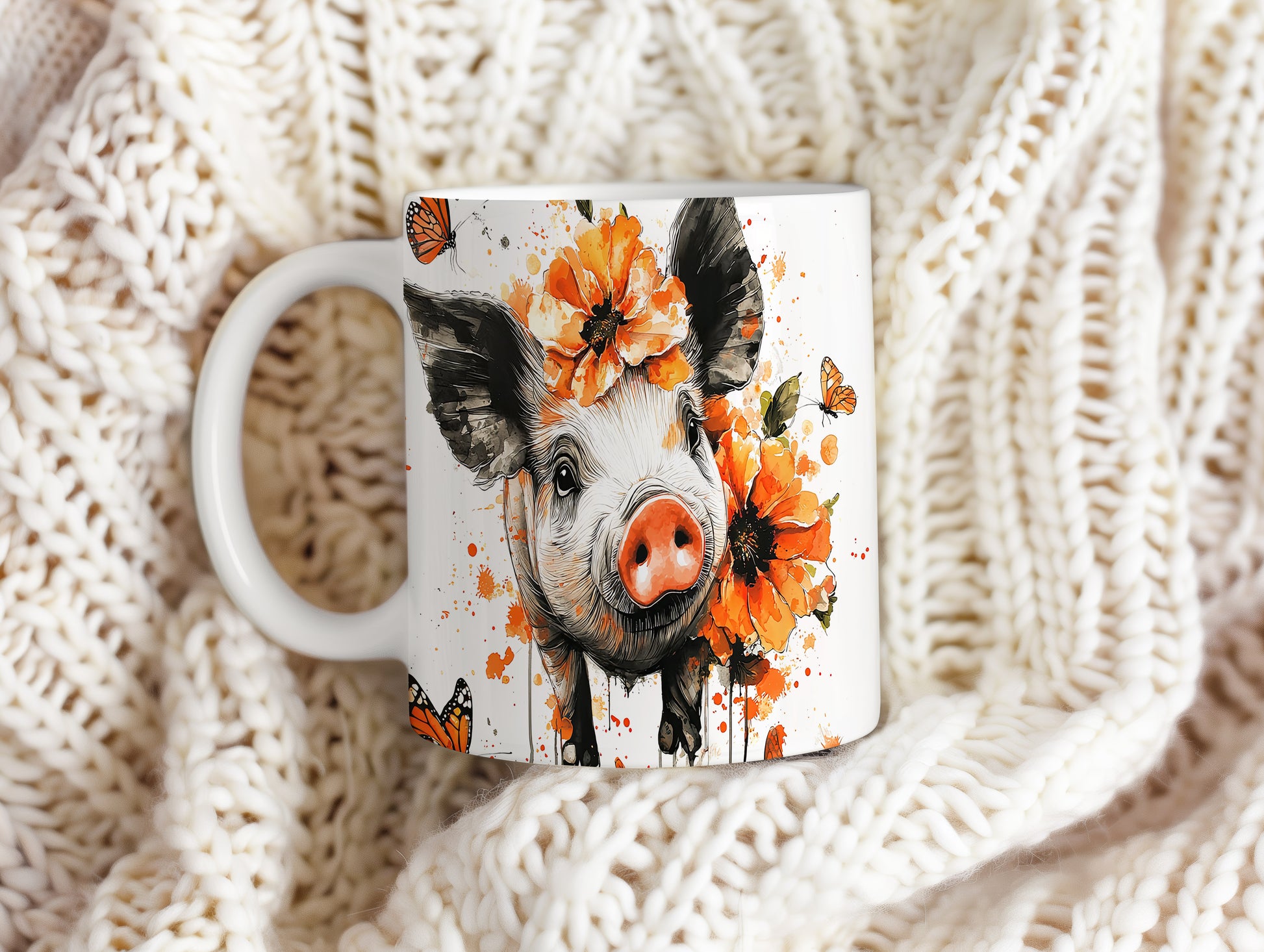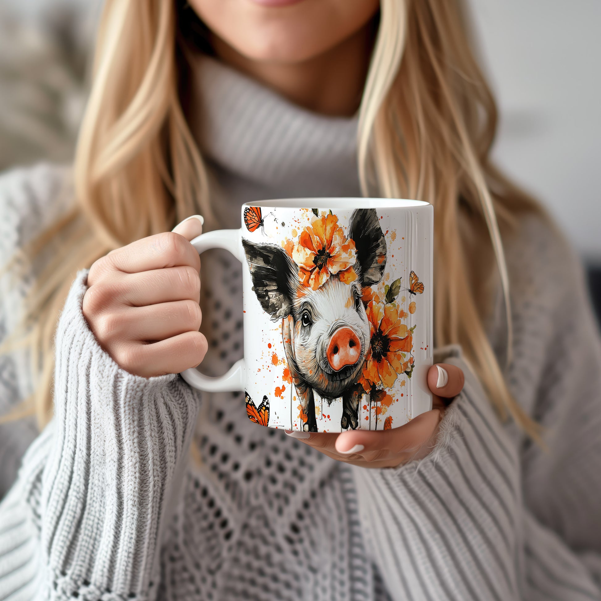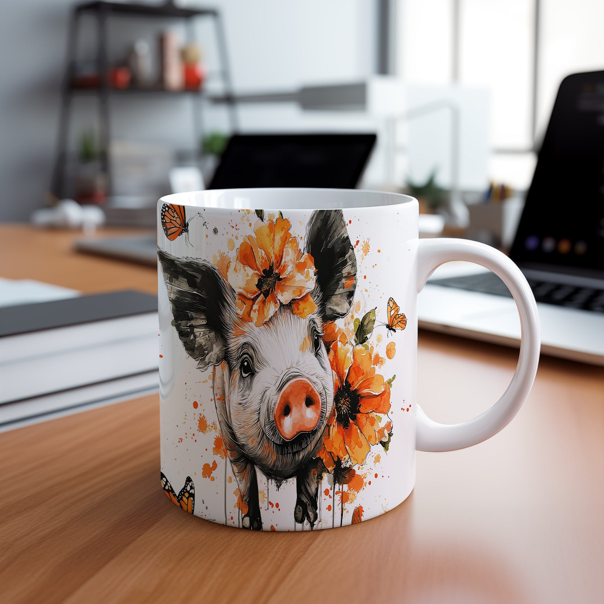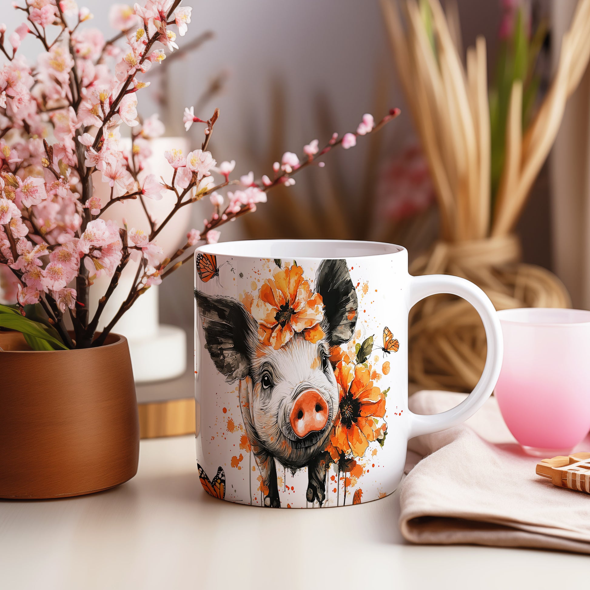Hrnek s roztomilým prasátkem – malířským vzhledem