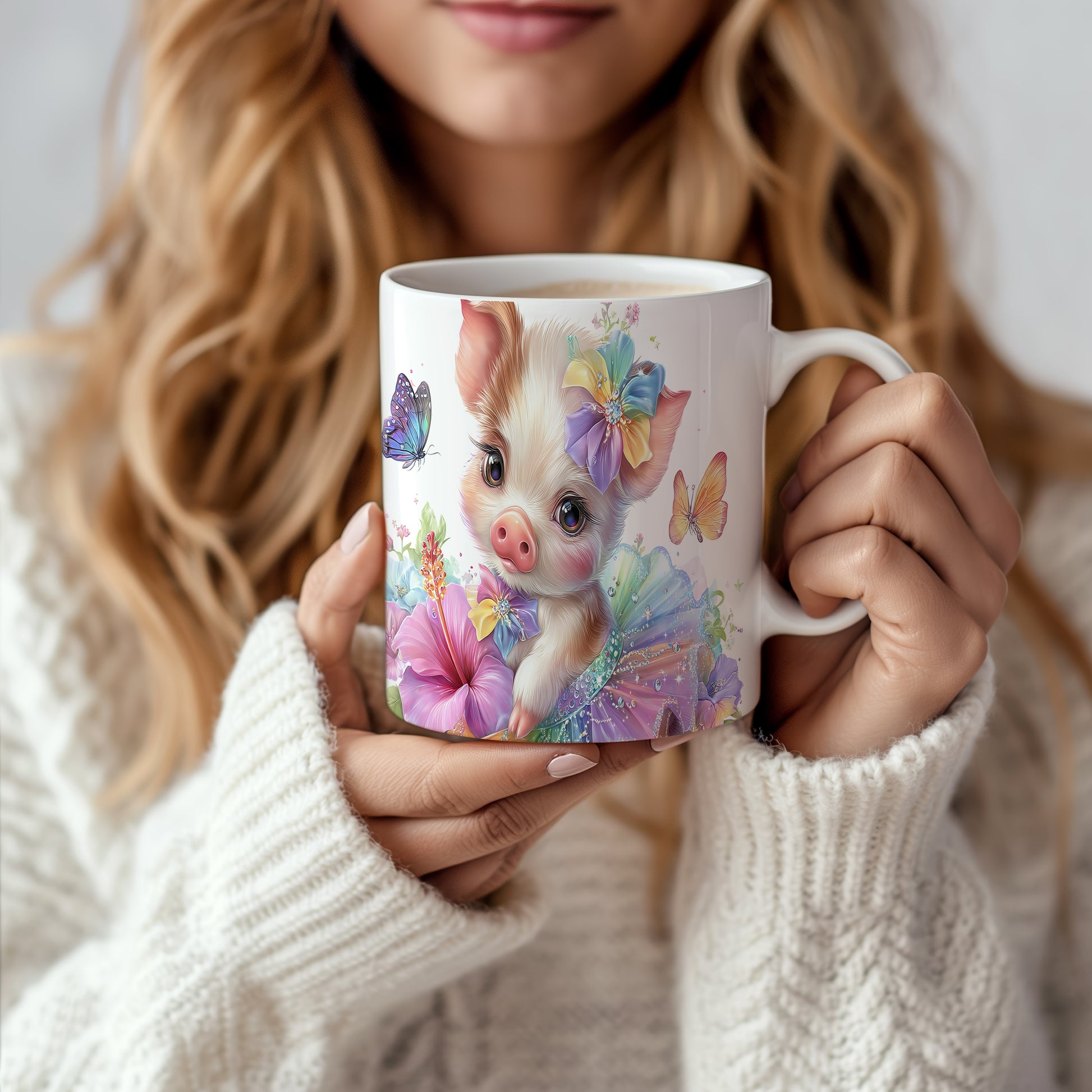 Tento krásný keramický hrnek s motivem roztomilého prasátka a květin je ideální pro milovníky zvířat a přírody. Skvělý dárek pro děti i dospělé, kteří ocení hravý design. Materiál: keramika. Objem: 330 ml. Vhodné do myčky i mikrovlnky. Používání tohoto hrnku přináší radost a útulnost do každodenního pití.