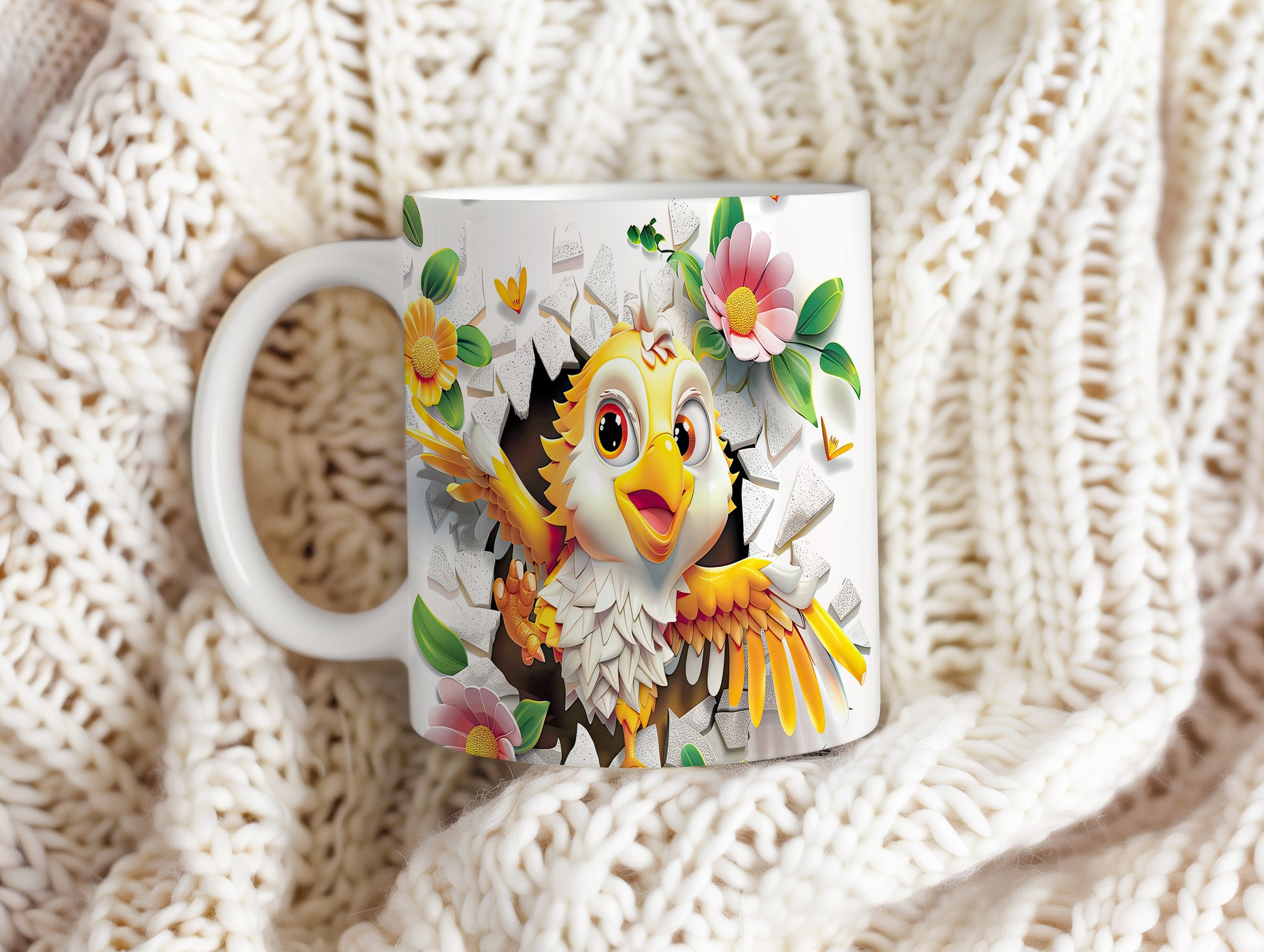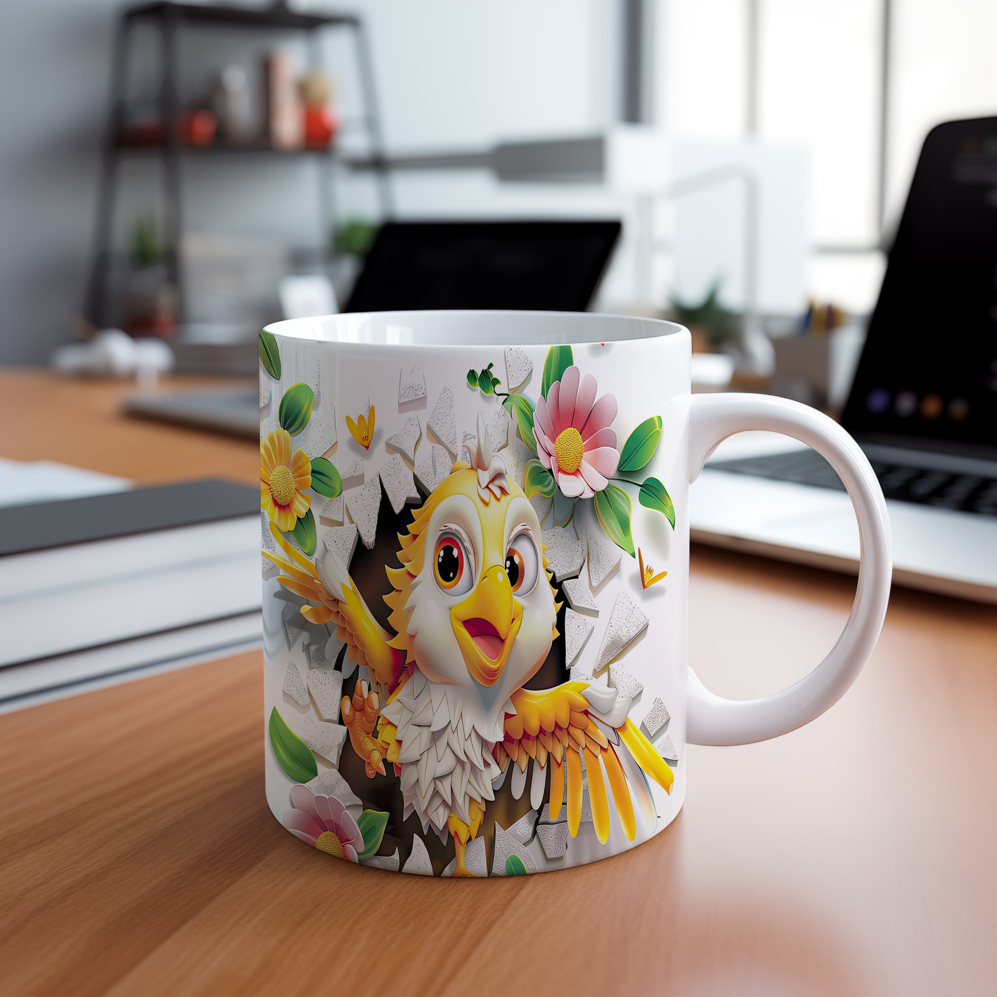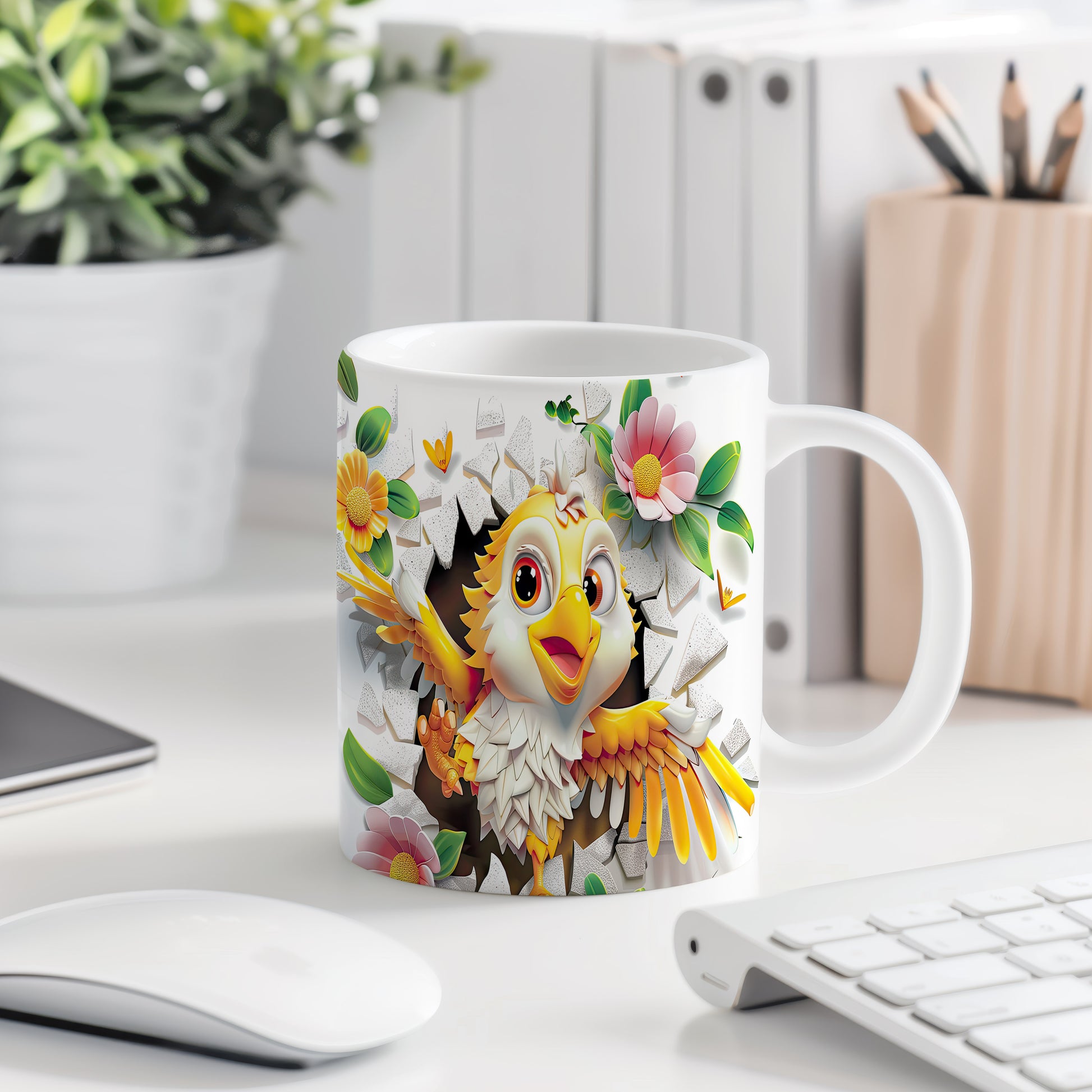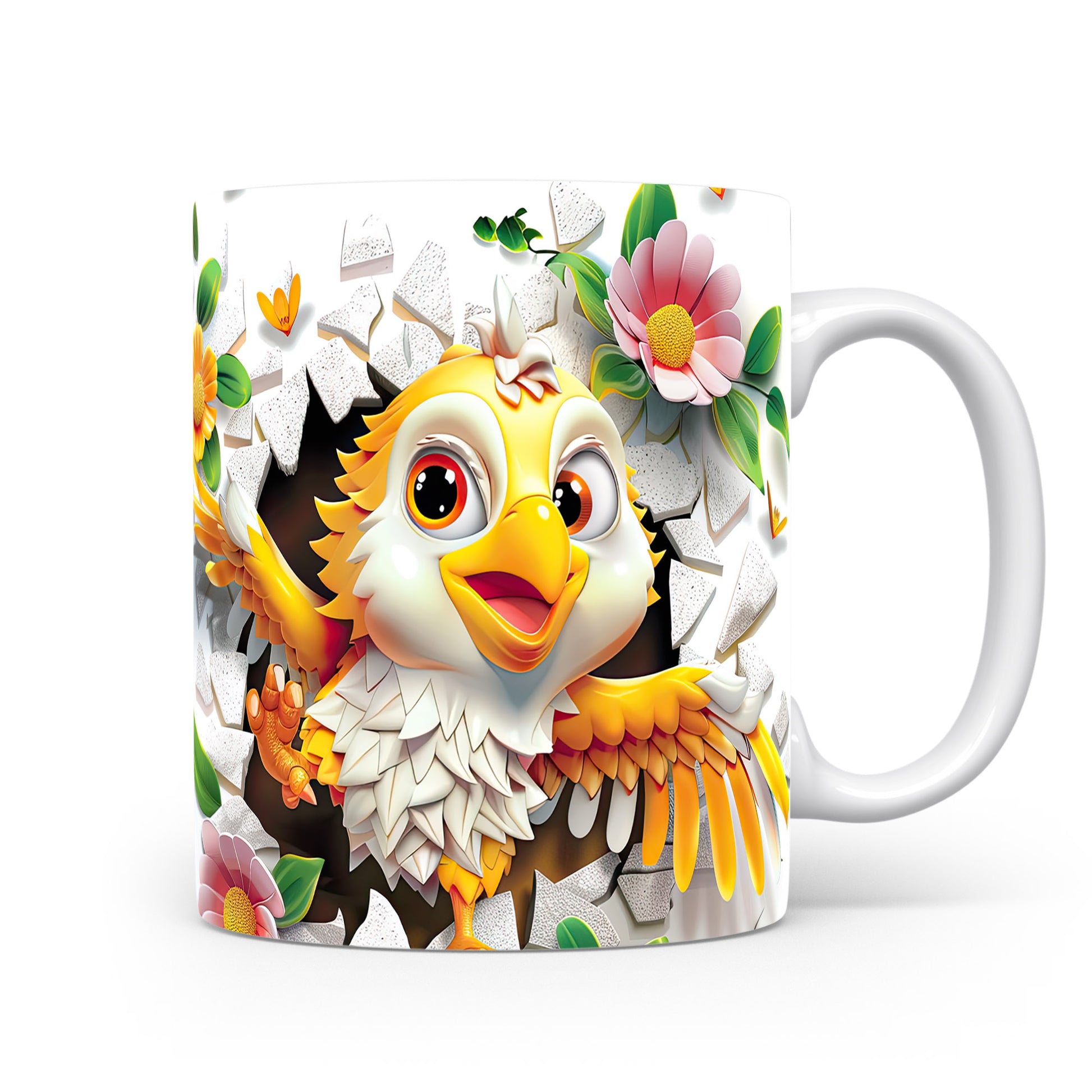 Tento hrnek zobrazuje veselého ptáčka vyklánějícího se z rozbitého vejce, obklopeného květinami. Je ideální pro milovníky přírody a skvělým dárkem pro přátele nebo rodinu. Materiál: keramika. Objem: 330 ml. Vhodné do myčky i mikrovlnky. Užívejte si každé sousto s tímto hrnkem, který přináší radost do každého dne.