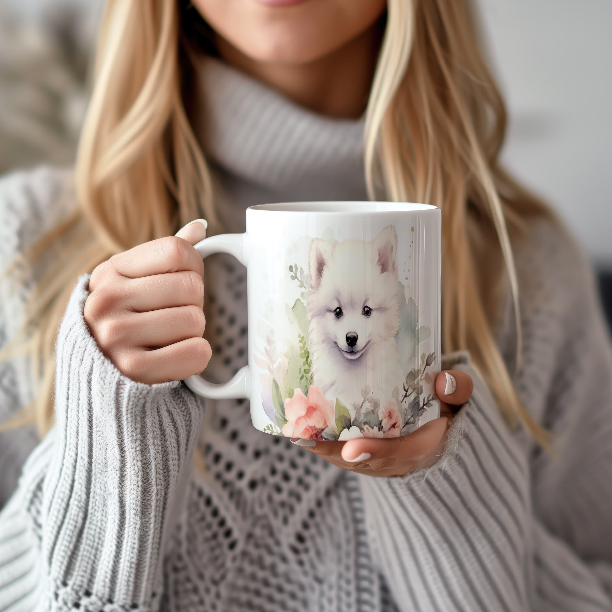 Hrnek s motivem roztomilého samojeda, který je obklopen květinami. Tento hrnek je ideální pro milovníky psů a přírody, skvělý tip na dárek pro přátele nebo rodinu. Materiál: keramika. Objem: 330 ml. Vhodné do myčky i mikrovlnky. Používáním tohoto hrnku si užijete každé sousto a nápoj s úsměvem.