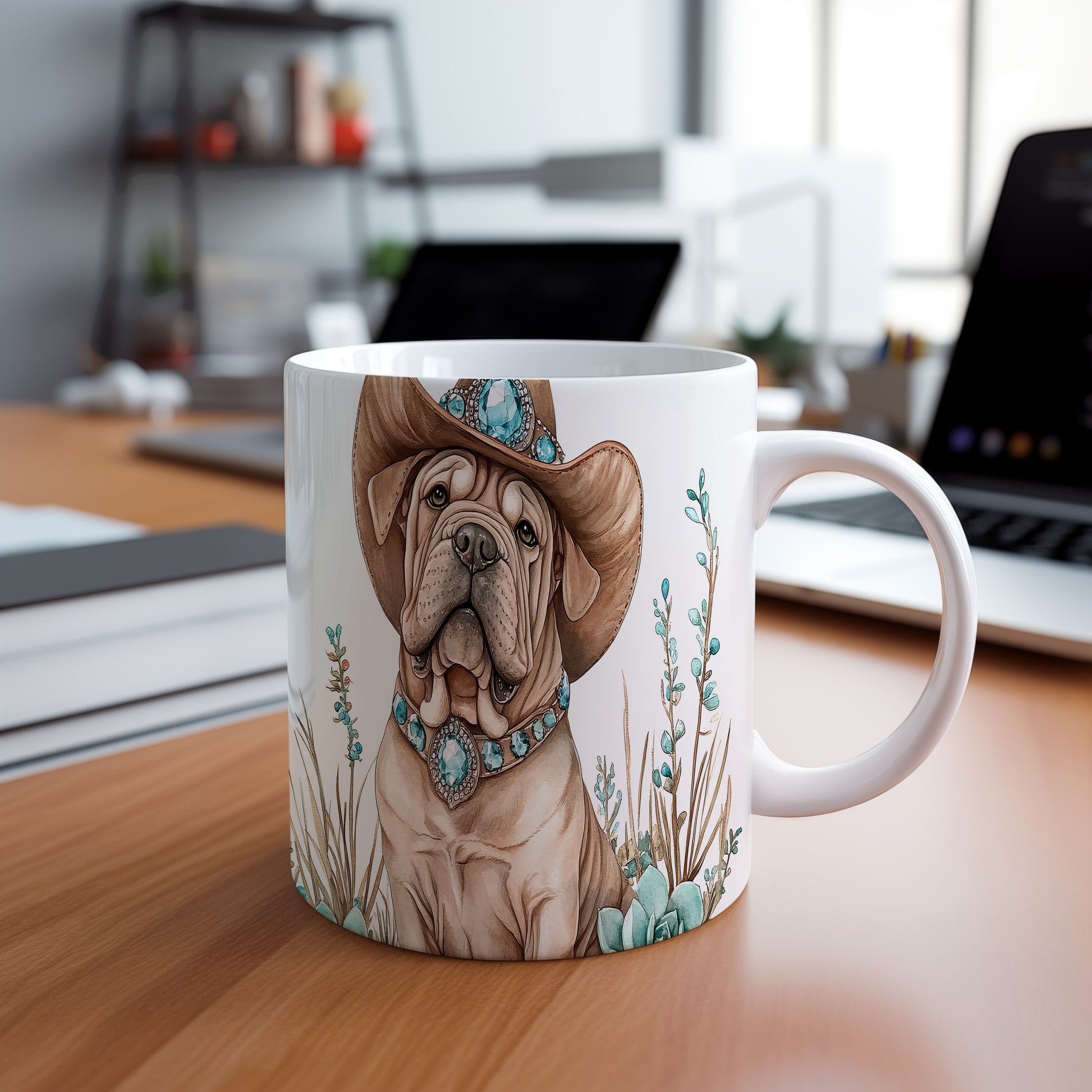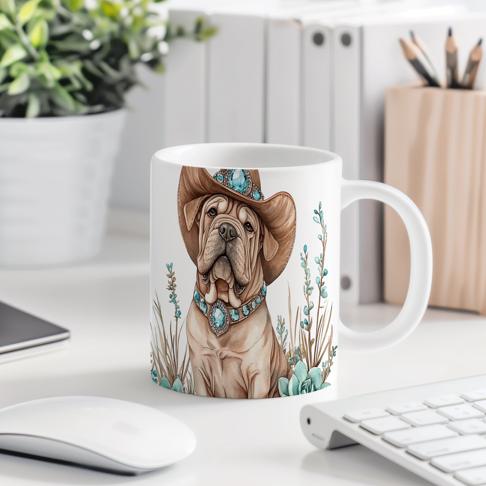 Tento keramický hrnek s motivem roztomilého psa v klobouku je ideální pro milovníky zvířat a originálních designů. Skvělý tip na dárek pro přátele nebo rodinu, kteří ocení jedinečné kousky. Materiál: keramika. Objem: 330 ml. Vhodné do myčky i mikrovlnky. Používáním tohoto hrnku si zpříjemníte každodenní pití kávy nebo čaje.
