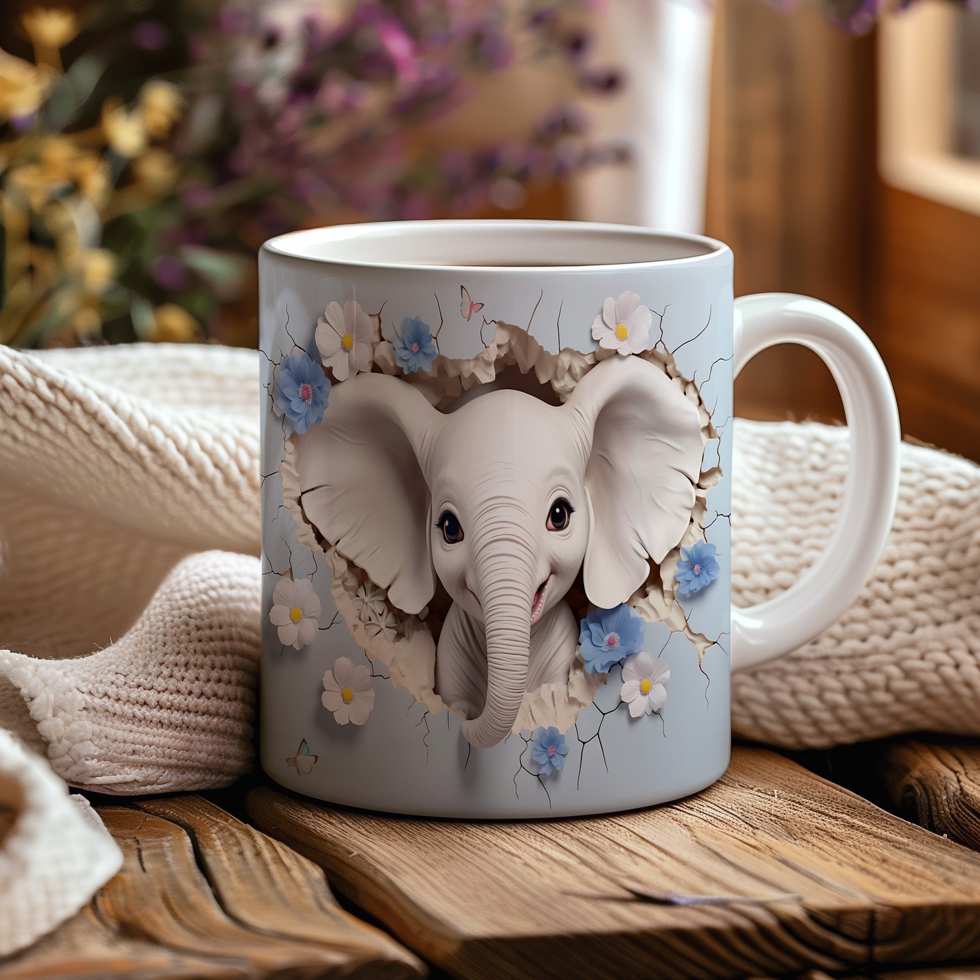 Tento keramický hrnek zobrazuje roztomilého slona obklopeného květinami. Je ideální pro milovníky zvířat a přírody, skvělý tip na dárek pro děti i dospělé. Materiál: keramika. Objem: 330 ml. Vhodné do myčky i mikrovlnky. Používání tohoto hrnku přináší radost a útulnost do každého dne.