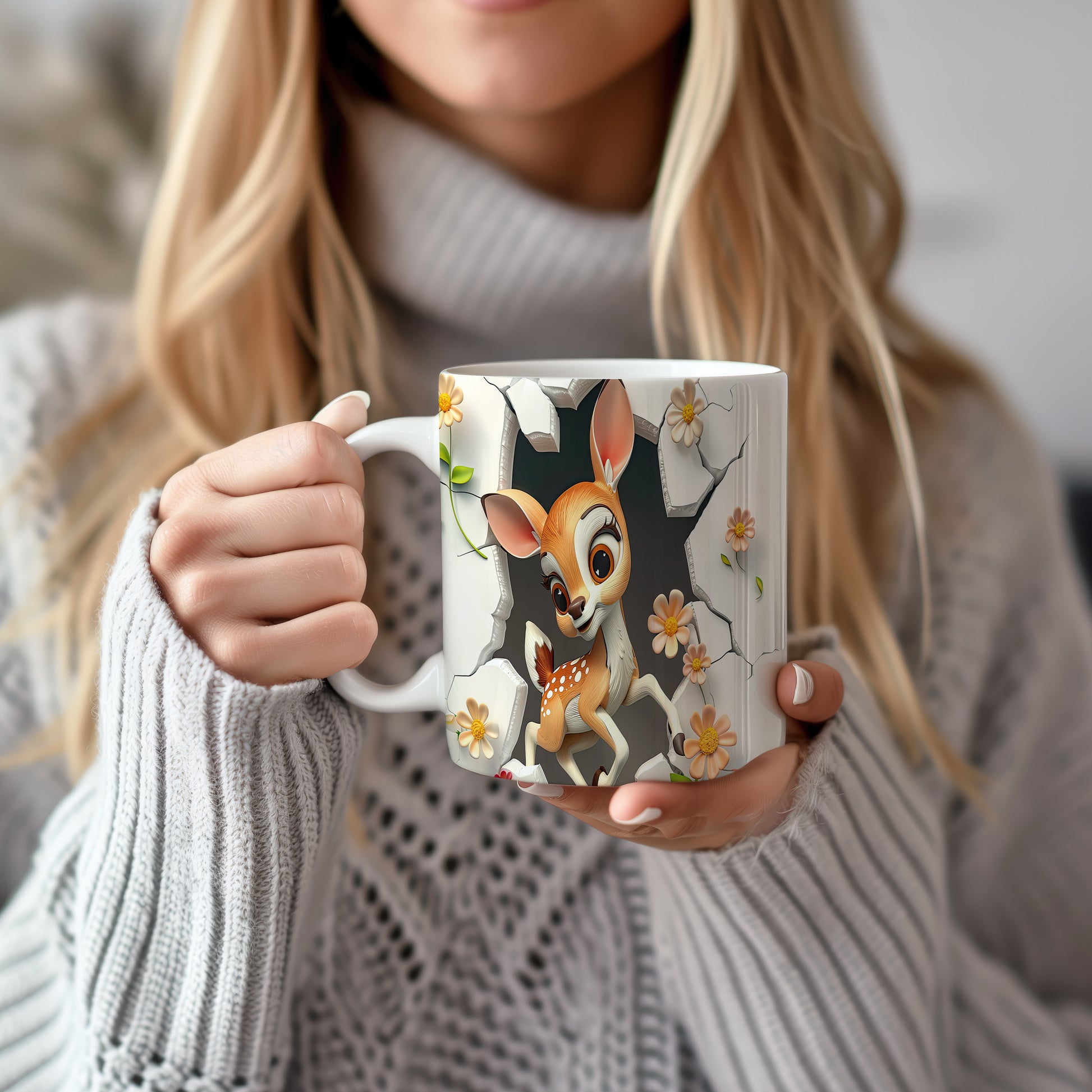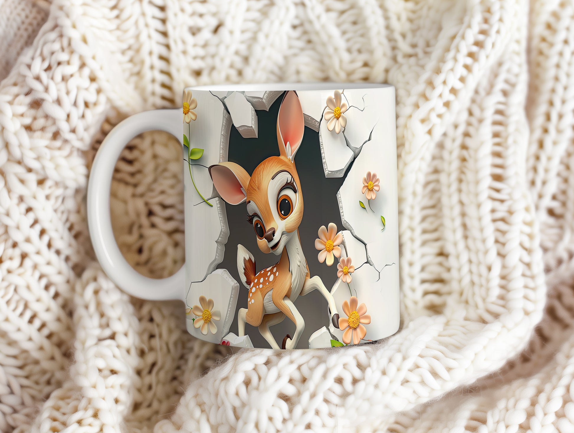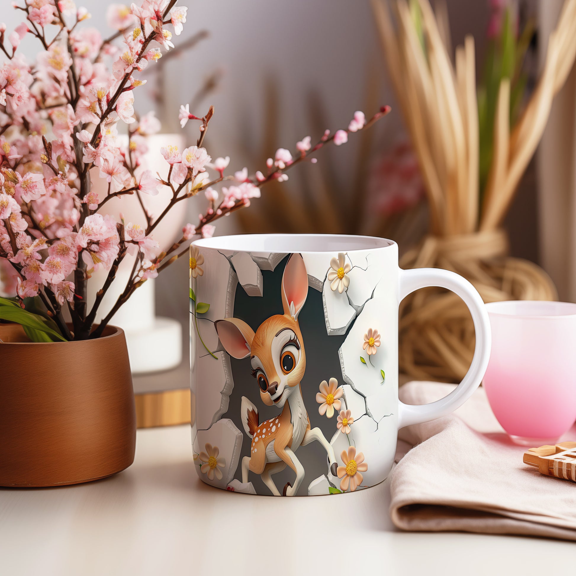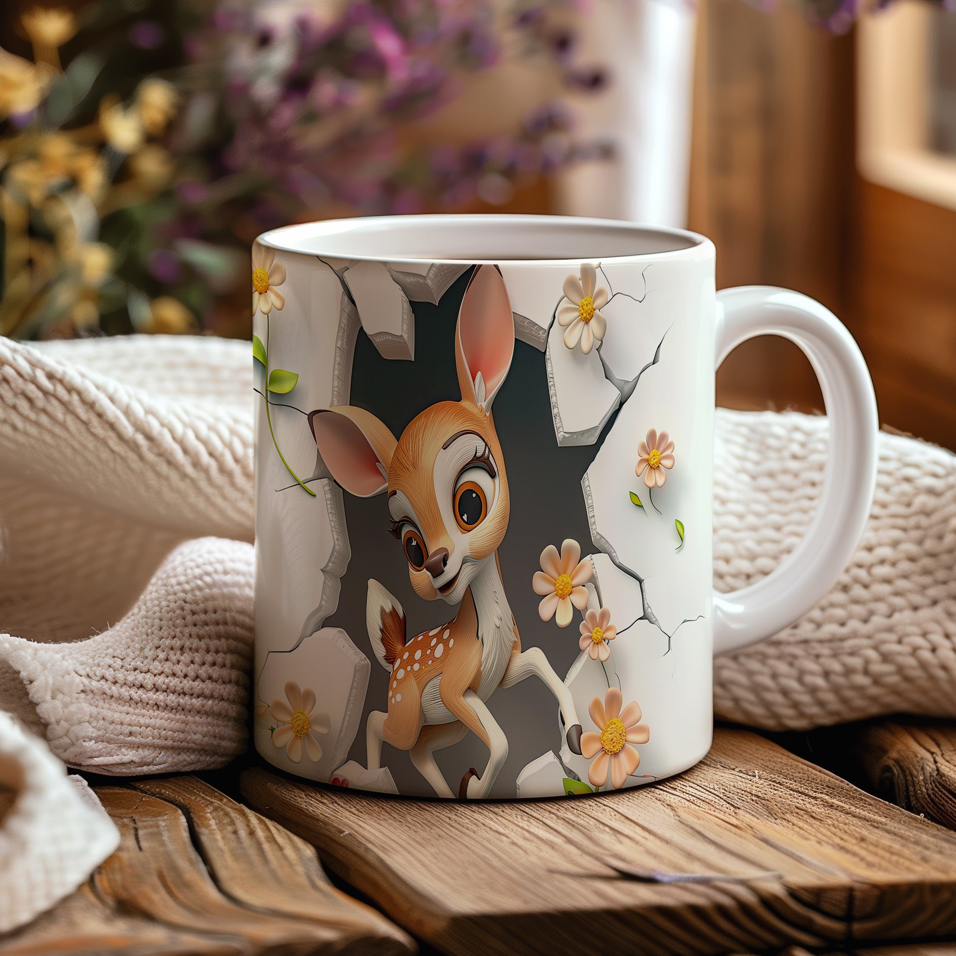 Tento hrnek zobrazuje roztomilé srnčí mládě mezi květinami, ideální pro milovníky přírody. Skvělý tip na dárek pro děti i dospělé, kteří ocení jemný design. Materiál: keramika. Objem: 330 ml. Vhodné do myčky i mikrovlnky. Díky svému vzhledu přináší radost a útulnost do každého dne.
