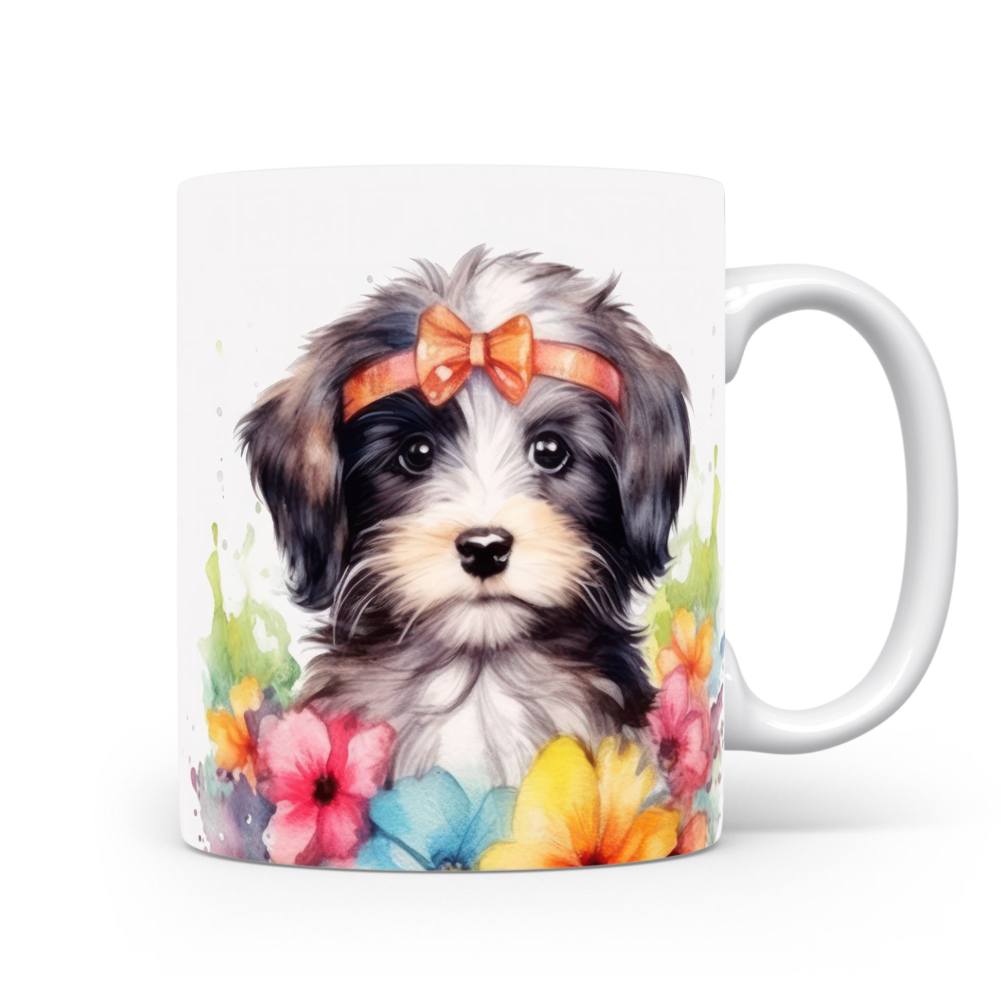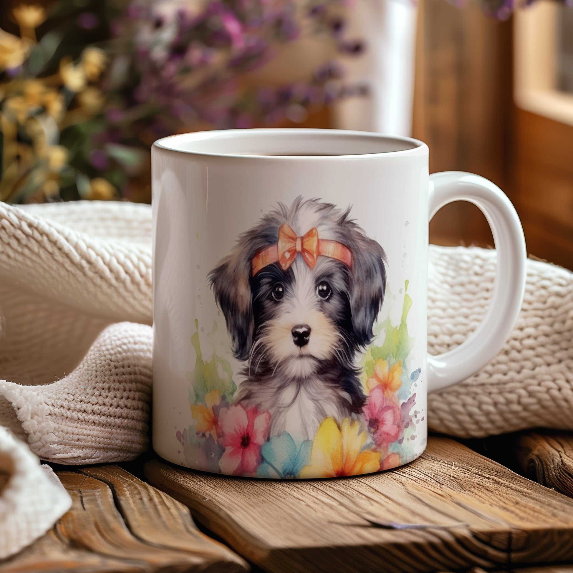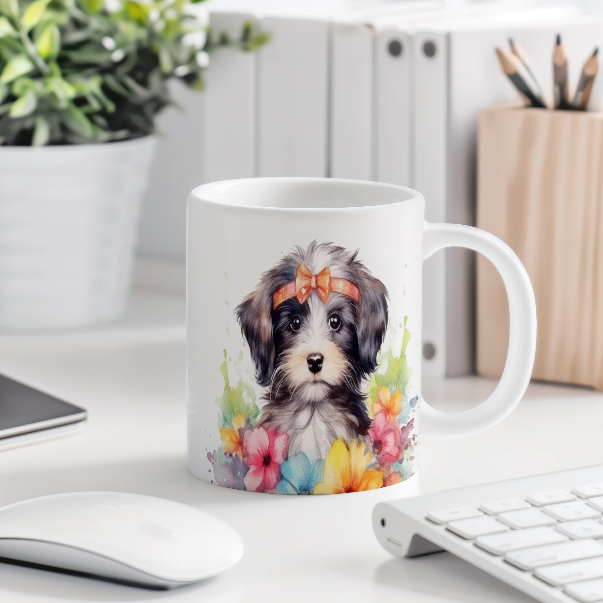 Keramický hrnek s motivem roztomilého štěňátka a barevných květin. Tento hrnek je ideálním dárkem pro milovníky psů a květin, potěší každého, kdo má rád hravé designy. Materiál: keramika. Objem: 330 ml. Vhodné do myčky i mikrovlnky. Používáním tohoto hrnku si zpříjemníte každé ráno s oblíbeným nápojem.