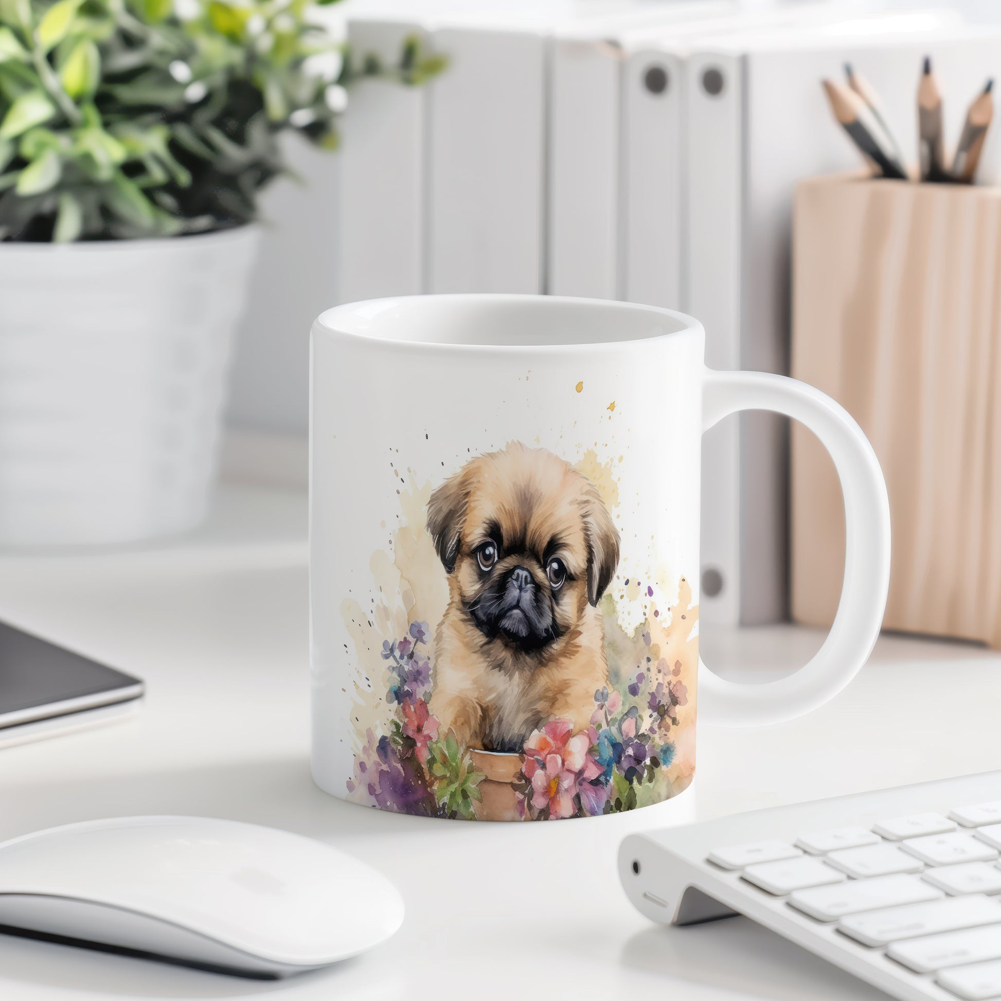 Hrnek s roztomilým štěňátkem v květinách je skvělým doplňkem pro milovníky psů a přírody. Tento hrnek potěší každého, kdo si chce zpříjemnit chvíle s oblíbeným nápojem. Materiál: keramika. Objem: 330 ml. Vhodné do myčky i mikrovlnky. Díky jeho designu si užijete každé sousto a povzbudíte svou kreativitu.