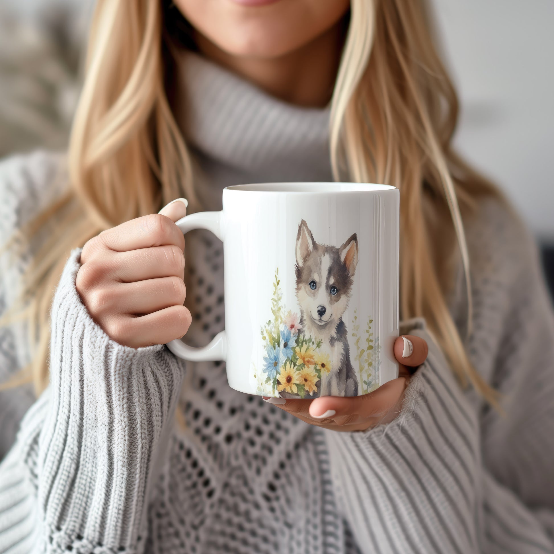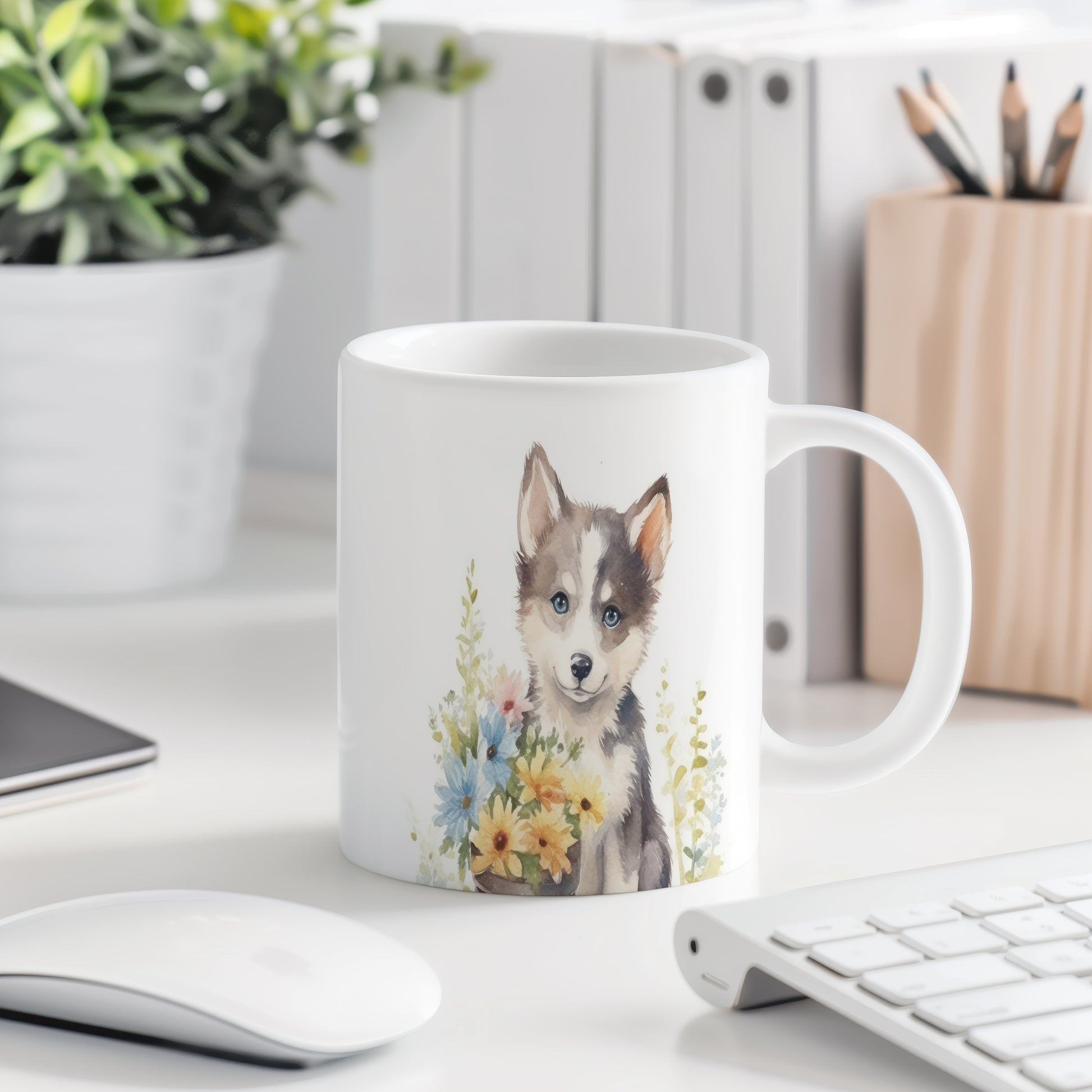 Hrnek s roztomilým štěnětem husky