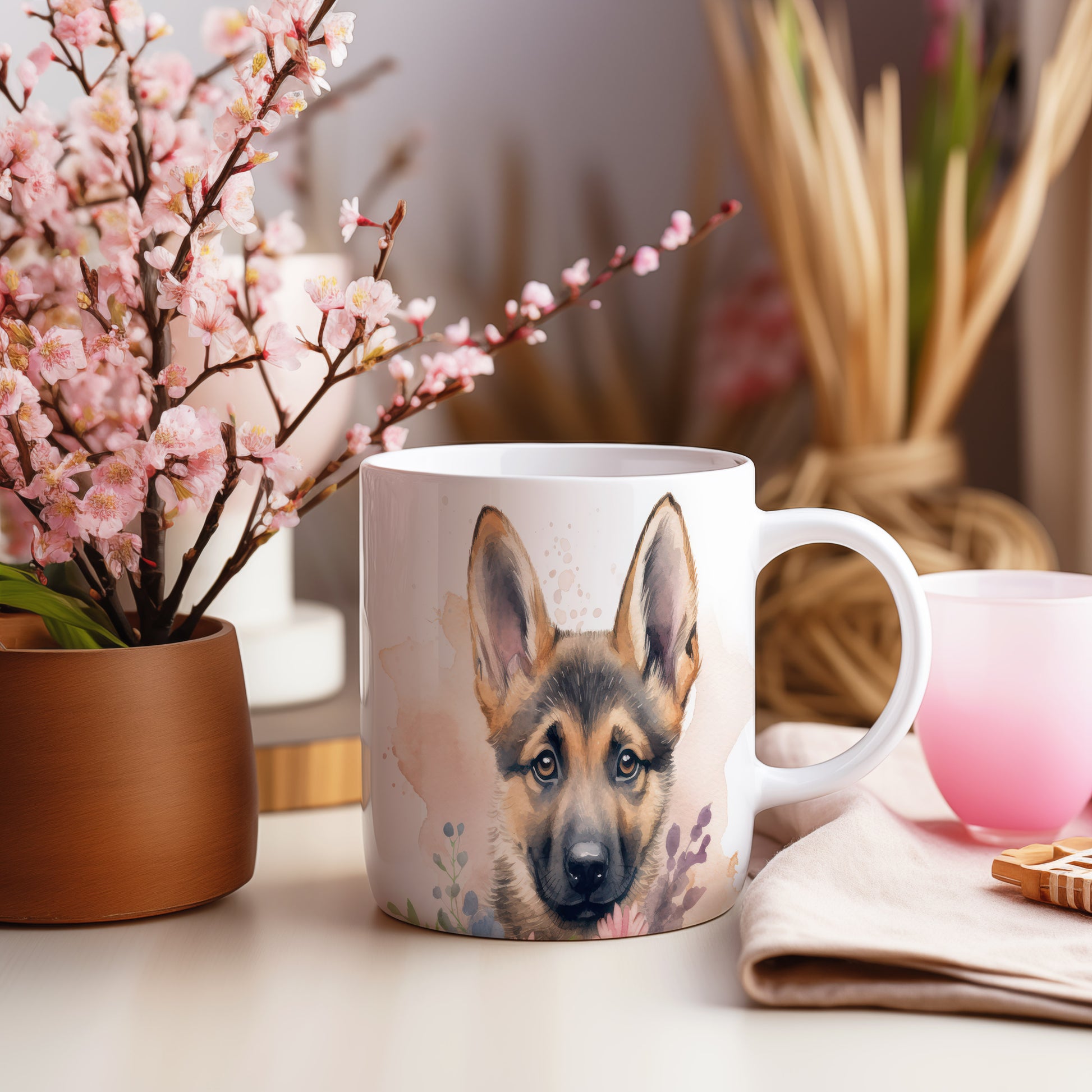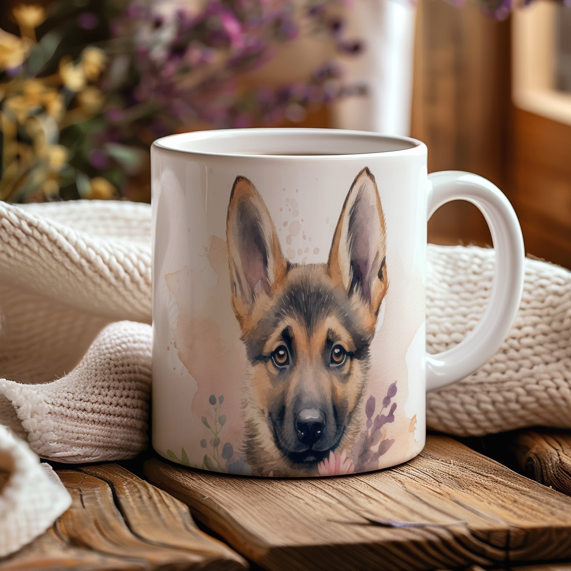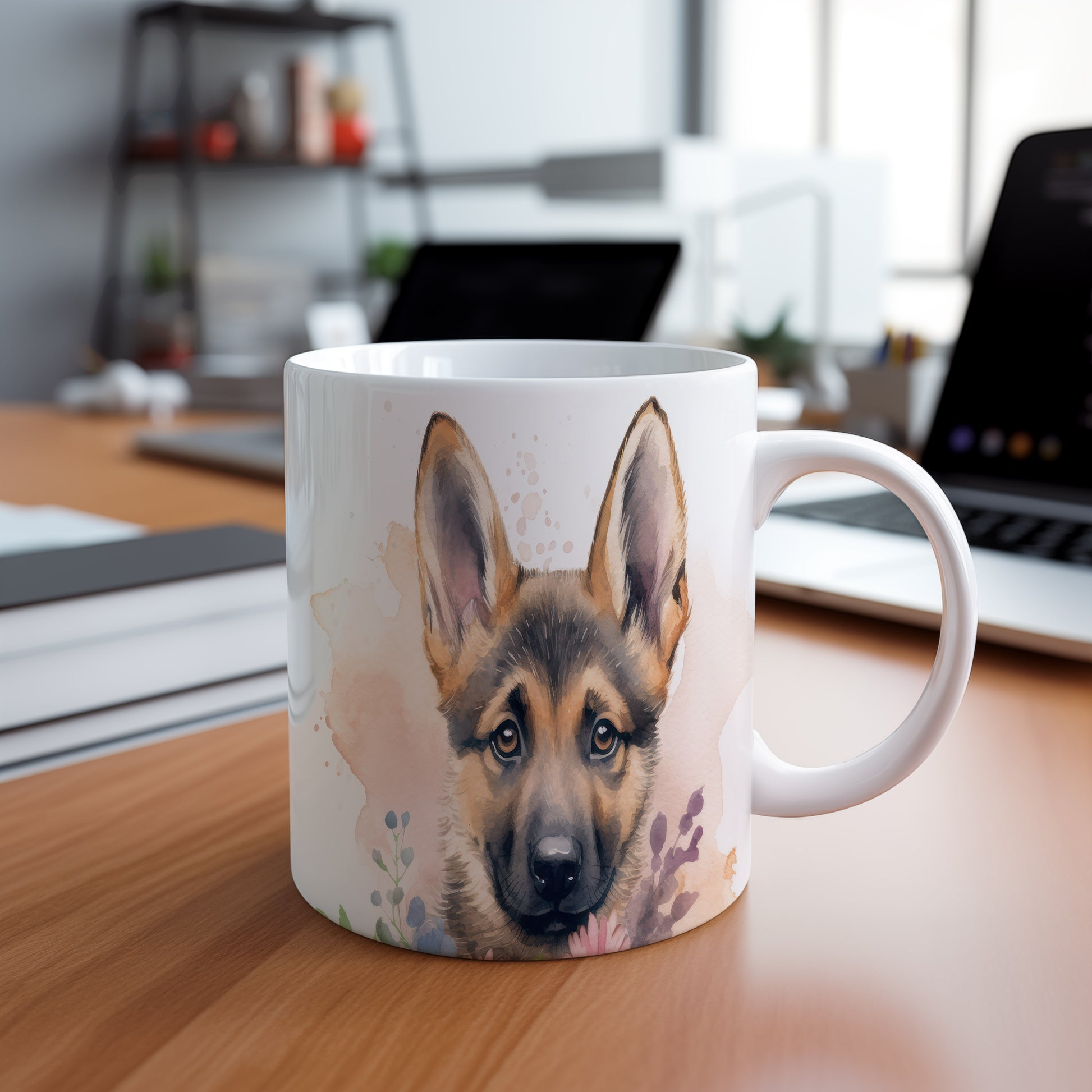 Hrnek s roztomilým štěnětem německého ovčáka
