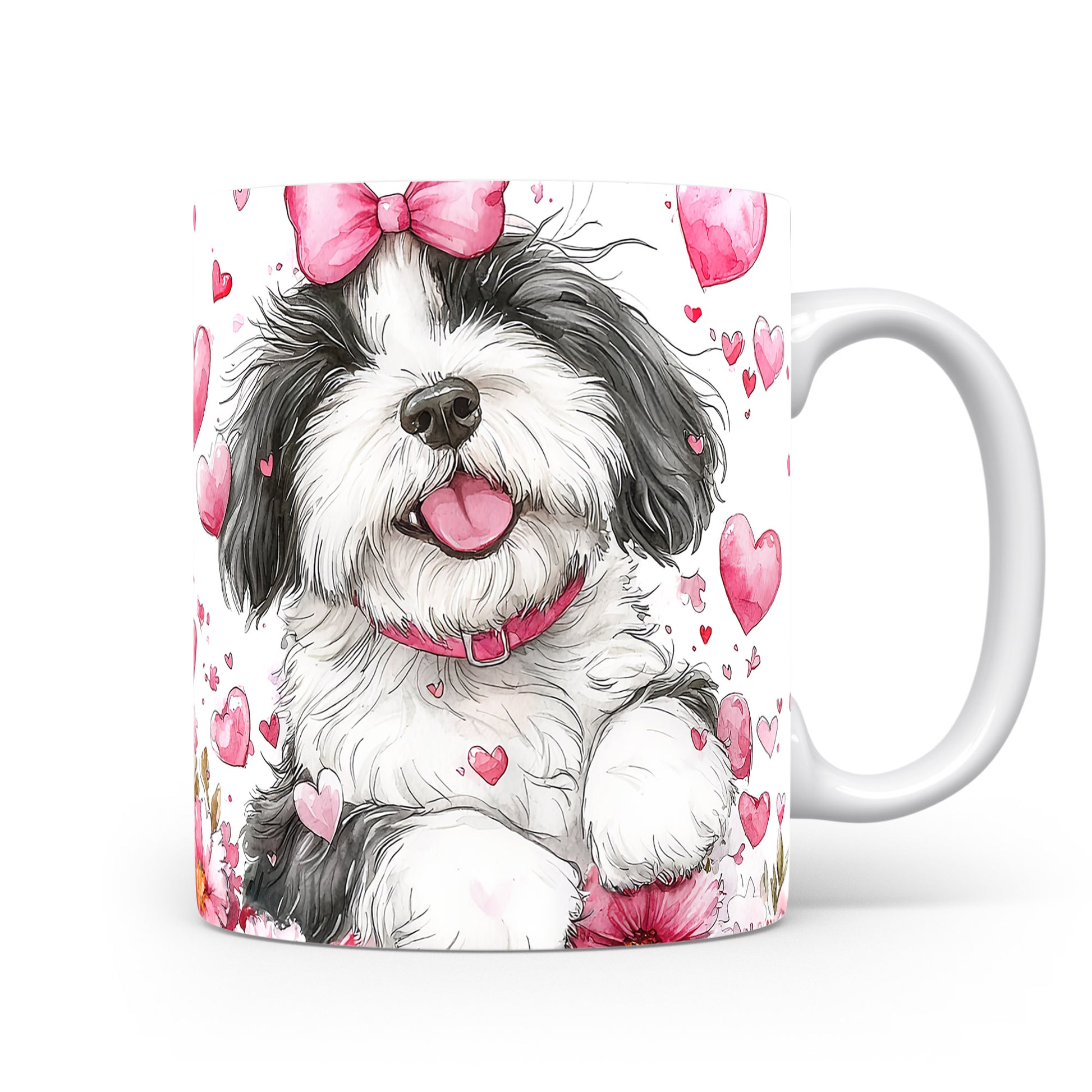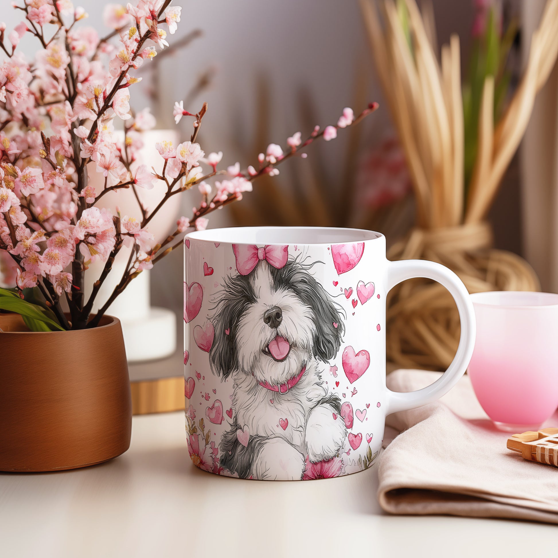 Hrnek s roztomilým štěnětem Shih tzu a růžovými srdíčky