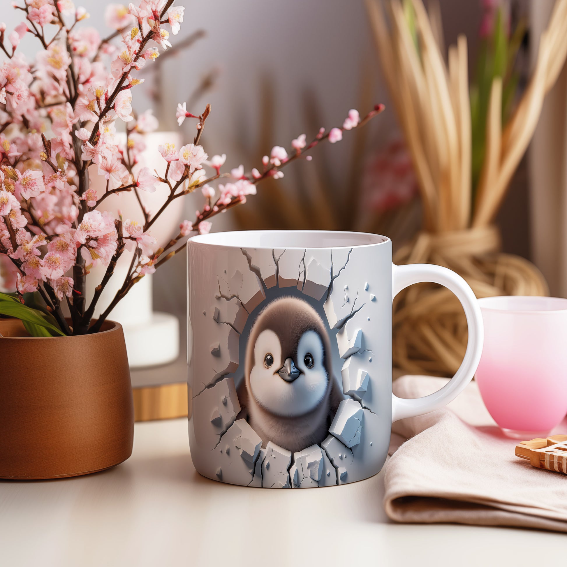 Hrnek s motivem roztomilého tučňáka, který přináší hravou atmosféru. Je ideální pro děti i dospělé, kteří ocení veselý design. Skvělý tip na dárek pro milovníky zvířat. Materiál: keramika. Objem: 330 ml. Vhodné do myčky i mikrovlnky. Tento hrnek vám zpříjemní každé ráno a dodá úsměv na tvář.