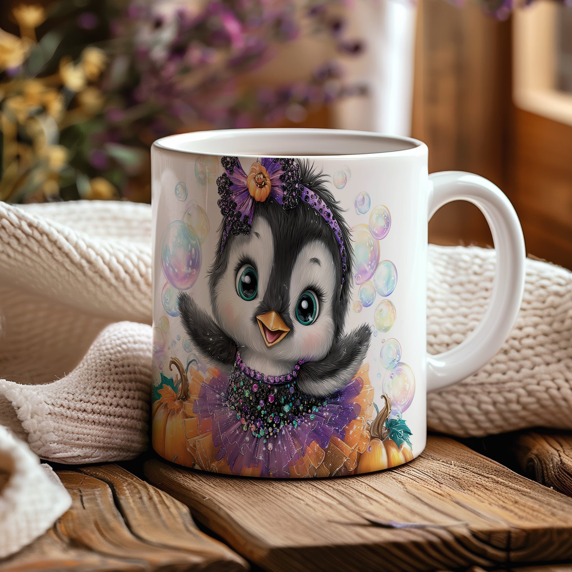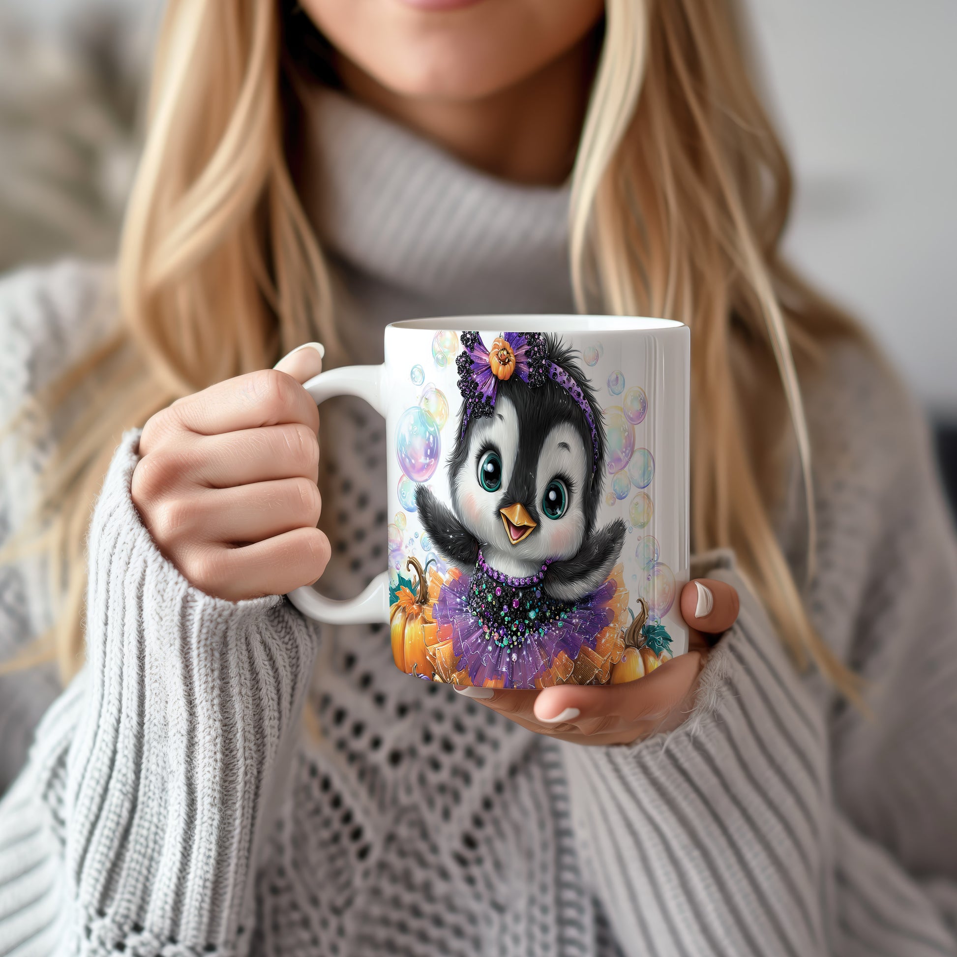 Tento hrnek zobrazuje roztomilého tučňáka v barevné sukni, ideální pro milovníky zvířat a veselých motivů. Skvělý tip na dárek pro děti nebo přátele, kteří ocení originální design. Materiál: keramika. Objem: 330 ml. Vhodné do myčky i mikrovlnky. Používáním tohoto hrnku si každý den zpříjemníte kávu nebo čaj.