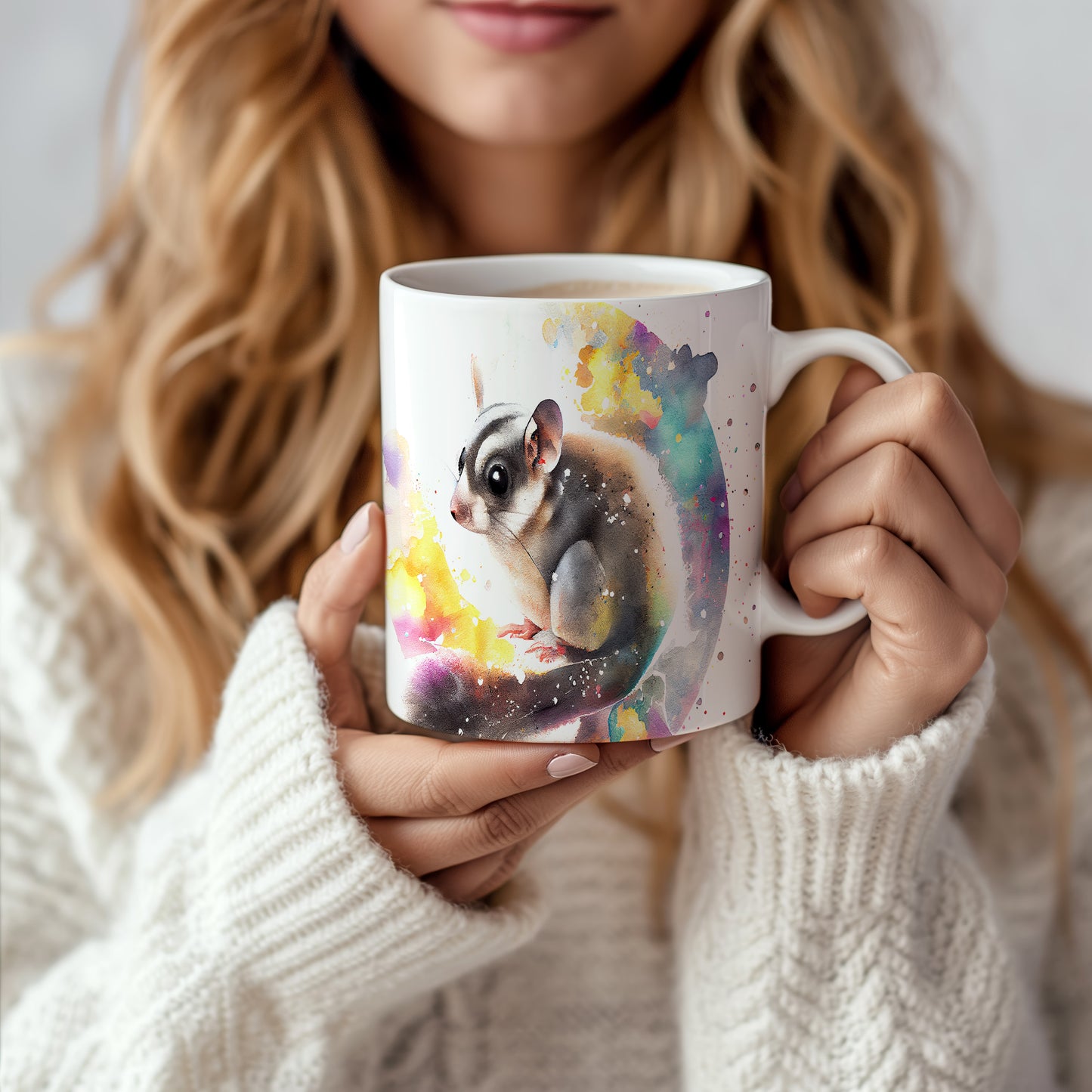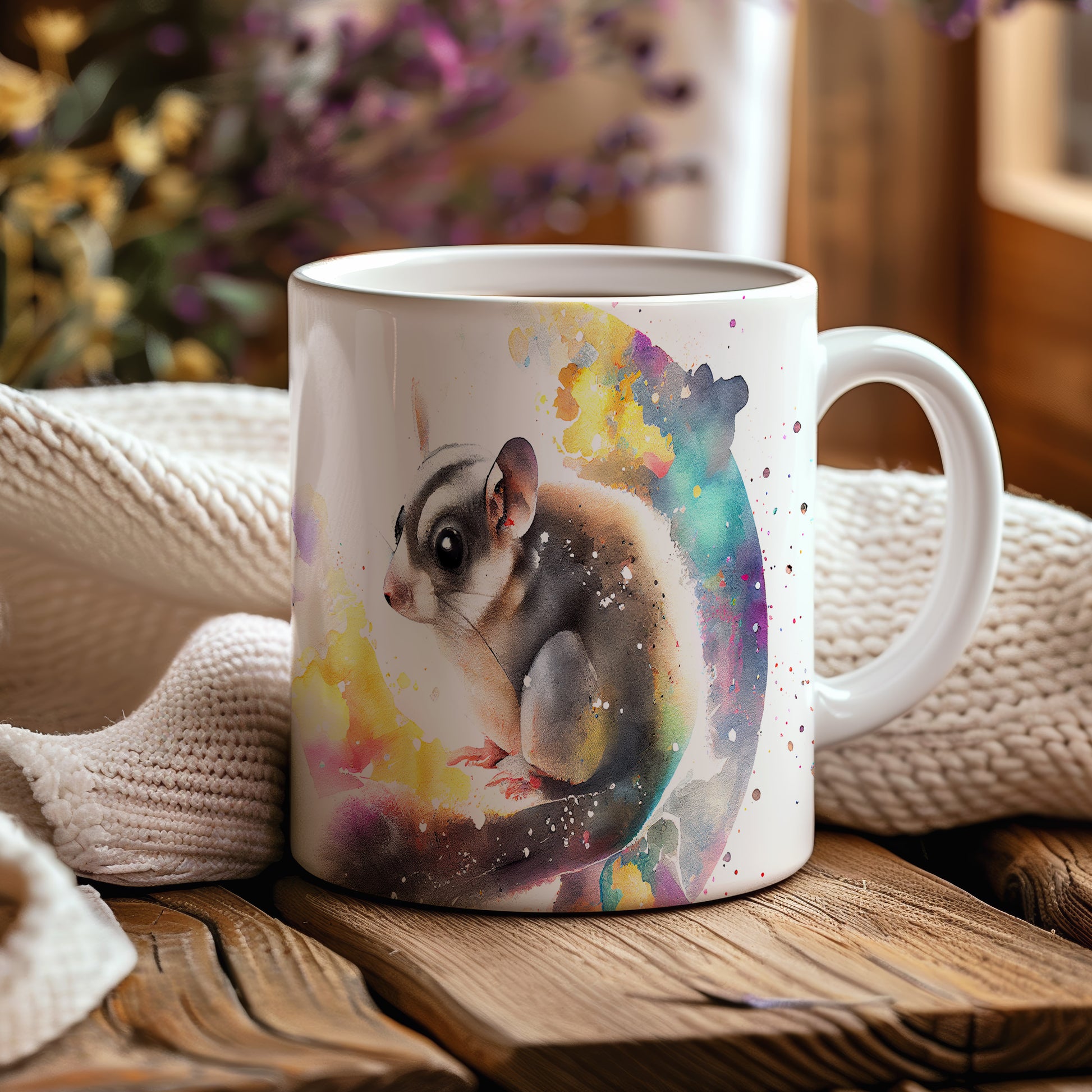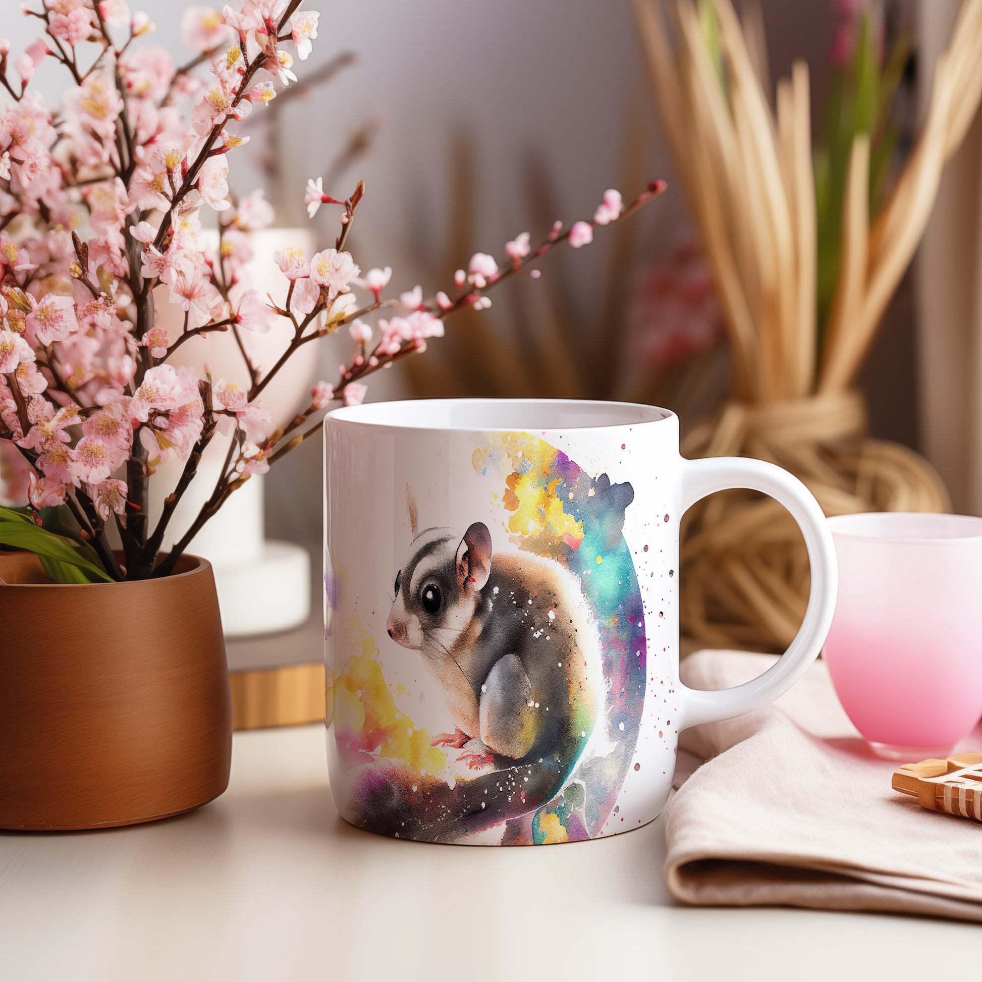 Tento hrnek s motivem roztomilého vačicha a barevnými akvarelovými skvrnami je skvělým doplňkem pro každého milovníka zvířat. Je ideální jako dárek pro přátele nebo rodinu, kteří ocení originální design. Materiál: keramika. Objem: 330 ml. Vhodné do myčky i mikrovlnky. Používání tohoto hrnku přináší radost a oživí každé pití.