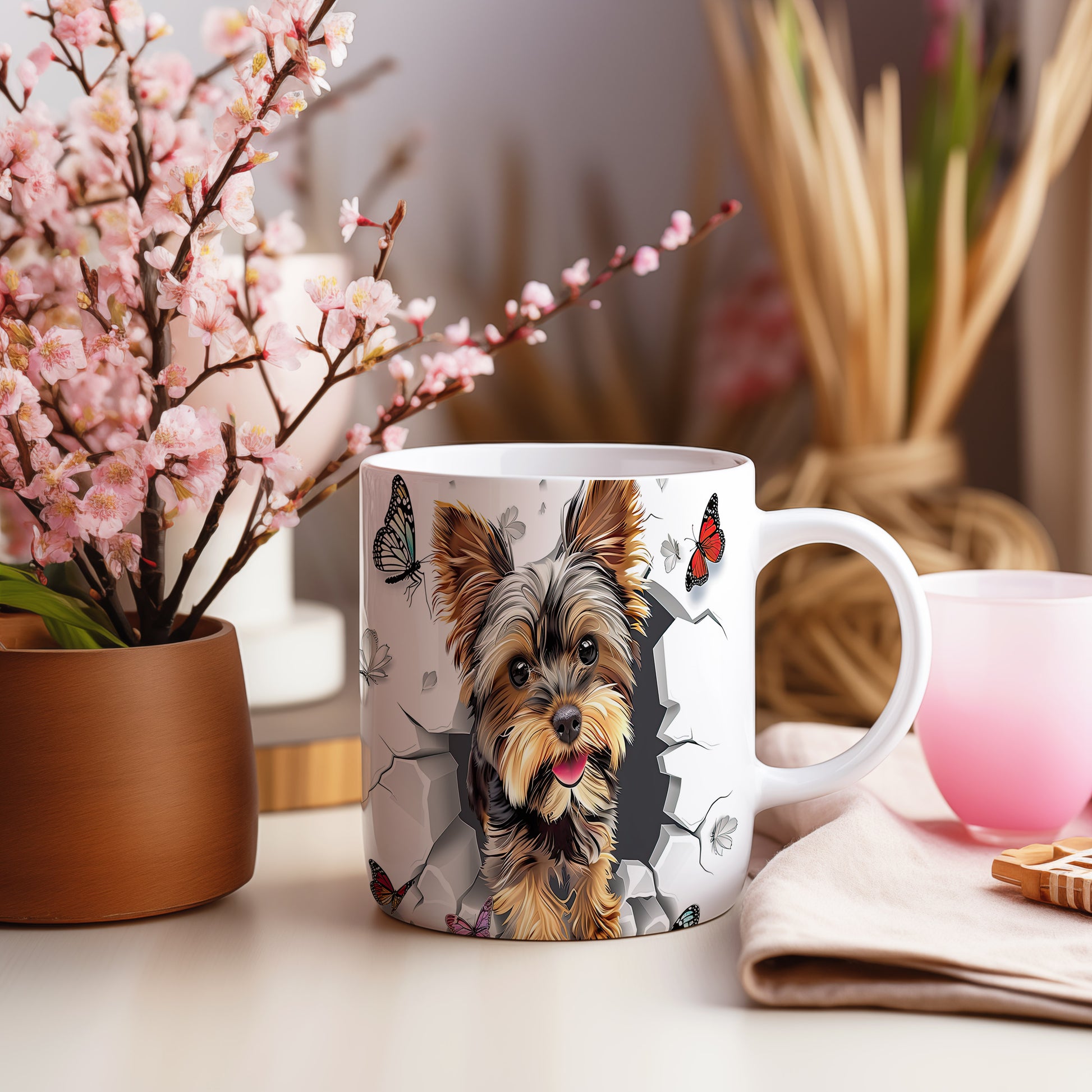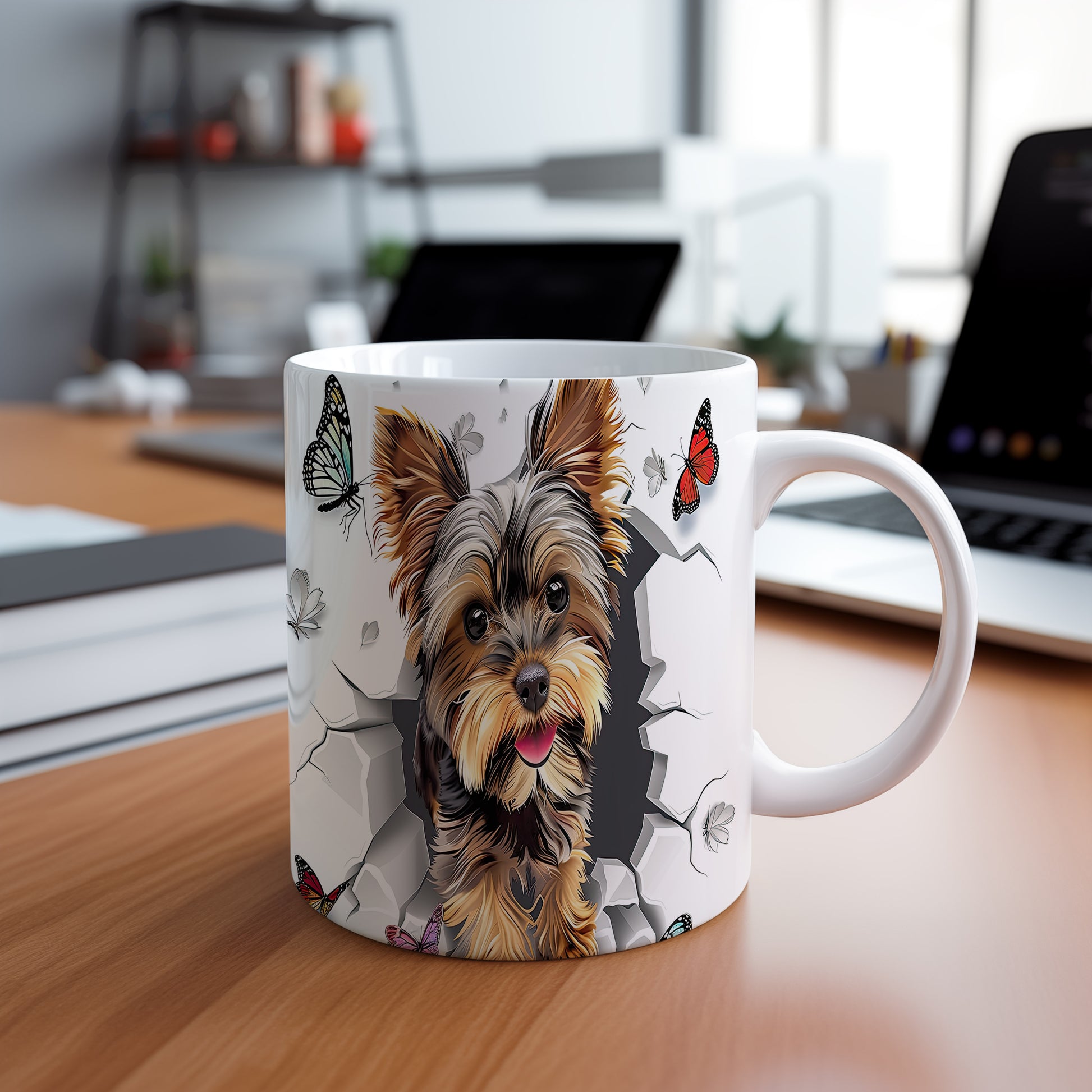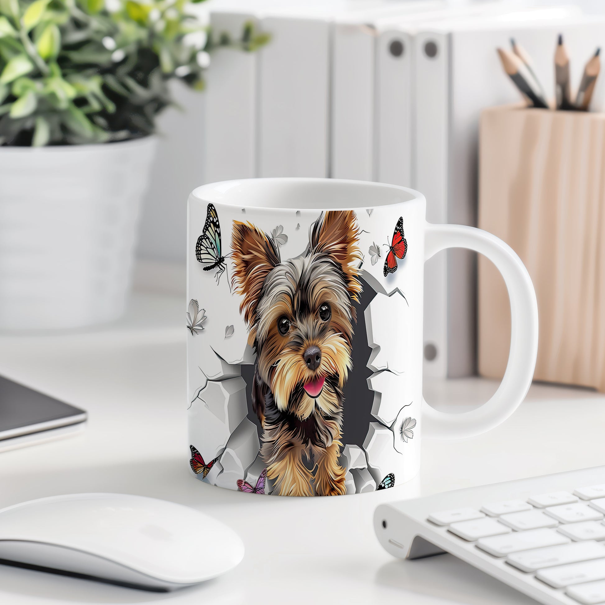 Tento hrnek s motivem roztomilého yorkšíra v realistickém stylu je ideálním doplňkem pro milovníky psů. Skvěle se hodí jako dárek pro přátele nebo rodinu, kteří ocení jeho jedinečný design. Materiál: keramika. Objem: 330 ml. Vhodné do myčky i mikrovlnky. Používáním tohoto hrnku si užijete každé sousto a nápoj s úsměvem.