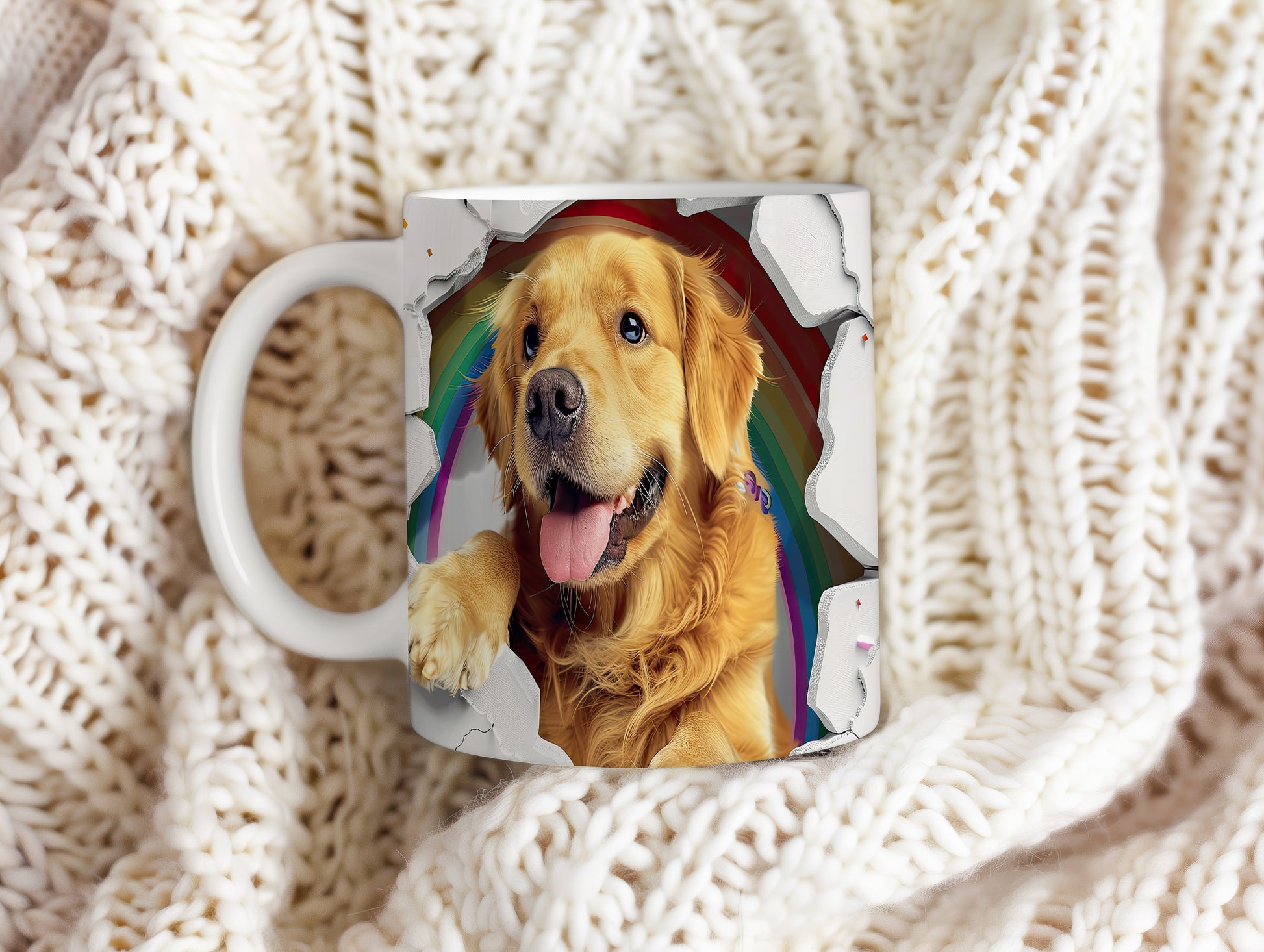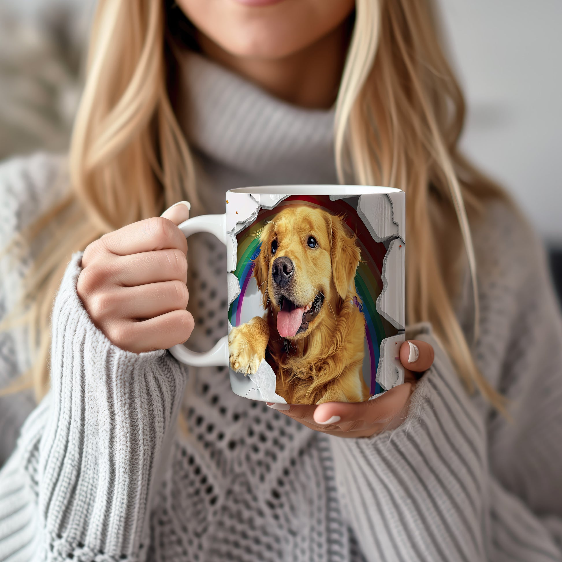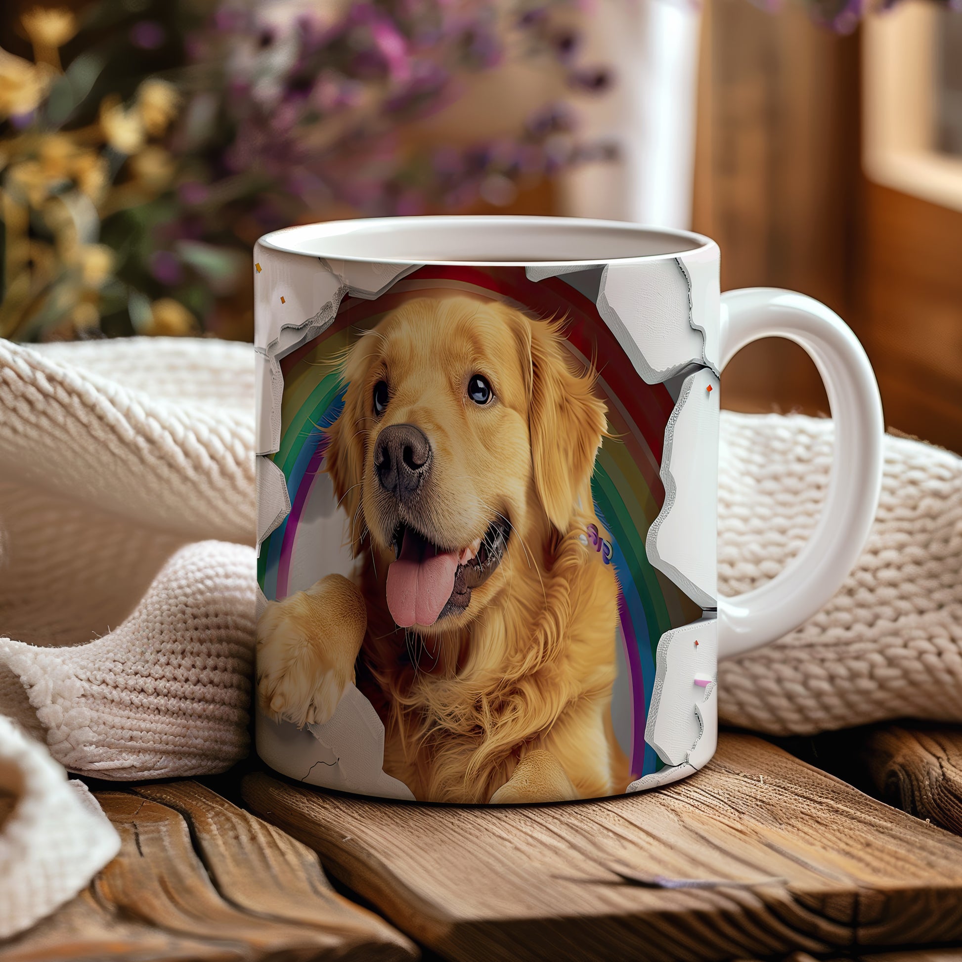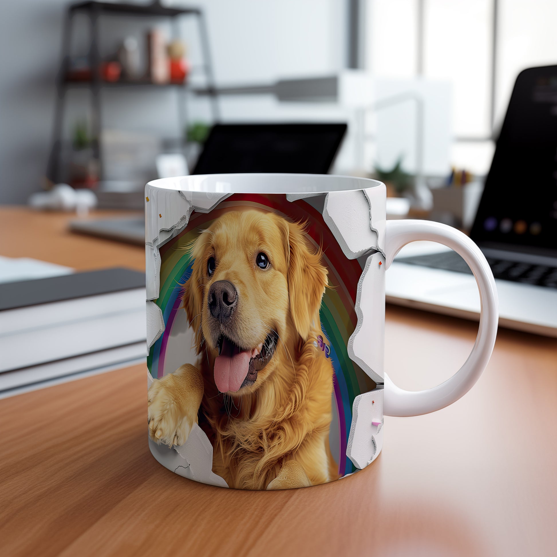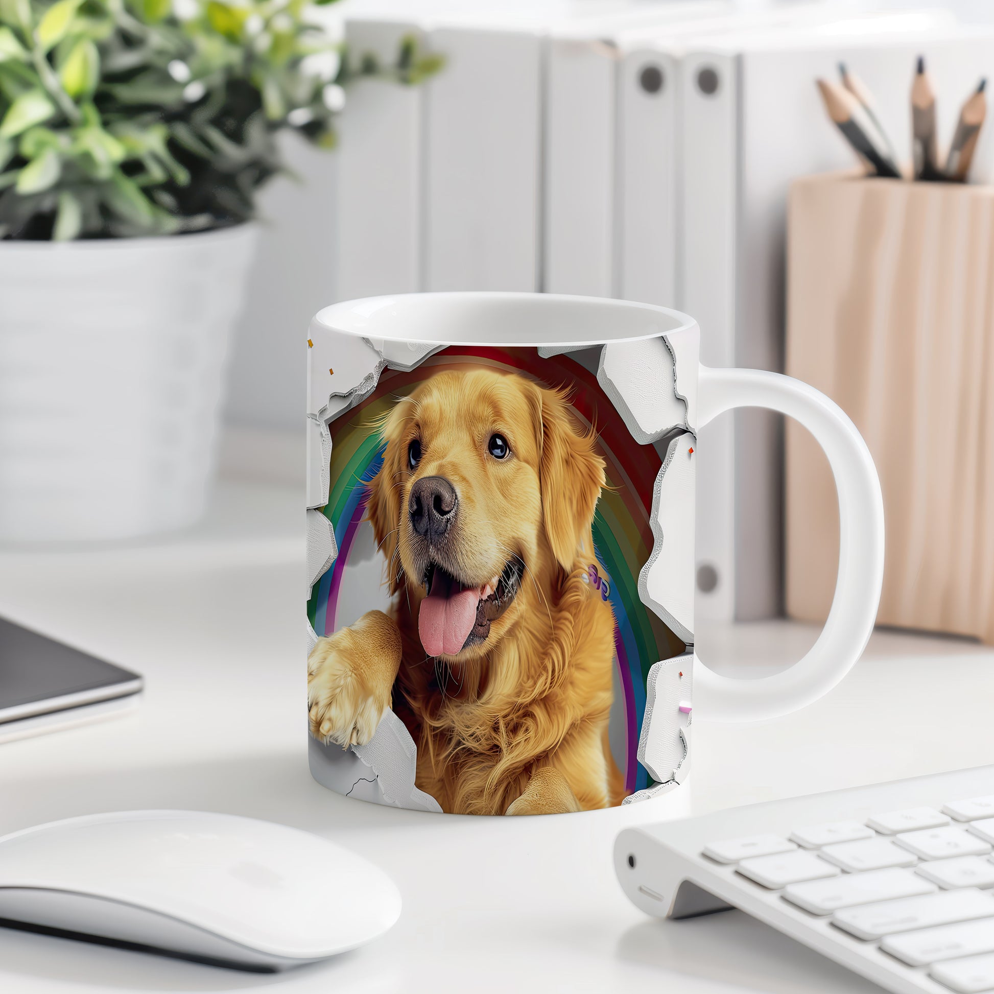 Tento hrnek zobrazuje roztomilého zlatého retrívra v hravém stylu. Je ideální pro milovníky psů a skvělým dárkem pro každého, kdo má rád zvířata. Materiál: keramika. Objem: 330 ml. Vhodné do myčky i mikrovlnky. Používáním tohoto hrnku si zpříjemníte každé ráno.