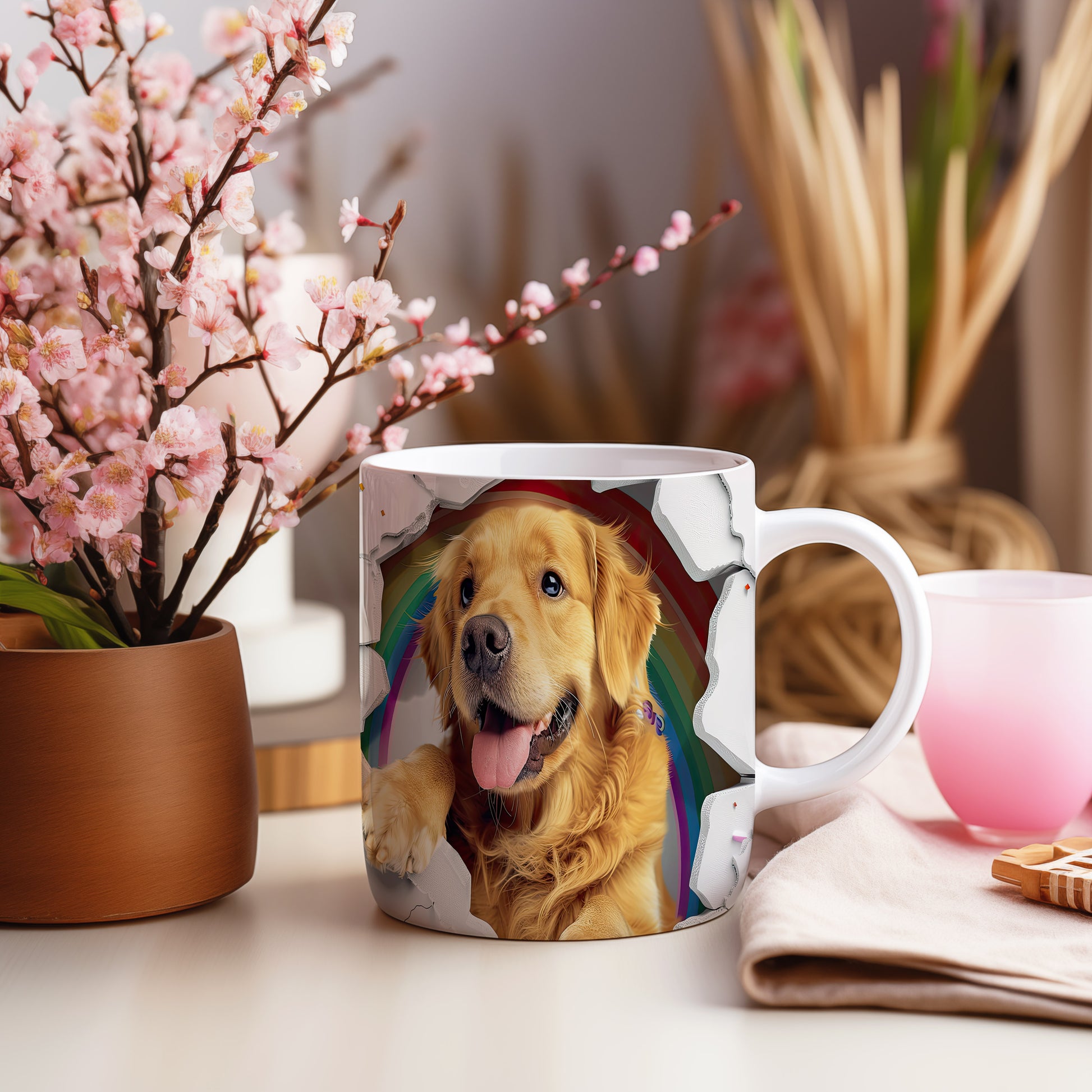 Hrnek s roztomilým zlatým retrívrem – malířským vzhledem