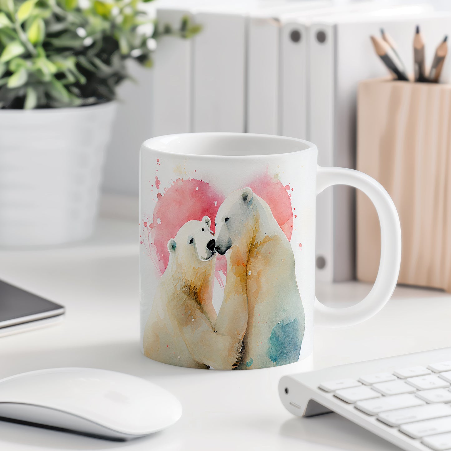 Tento hrnek s motivem roztomilých ledních medvědů přináší do vašeho dne hravou atmosféru. Je ideálním dárkem pro milovníky přírody a zvířat, kteří ocení jeho jedinečný design. Materiál: keramika. Objem: 330 ml. Vhodné do myčky i mikrovlnky. Užijte si každé sousto s tímto hrnkem, který vám zpříjemní chvíle u kávy nebo čaje.