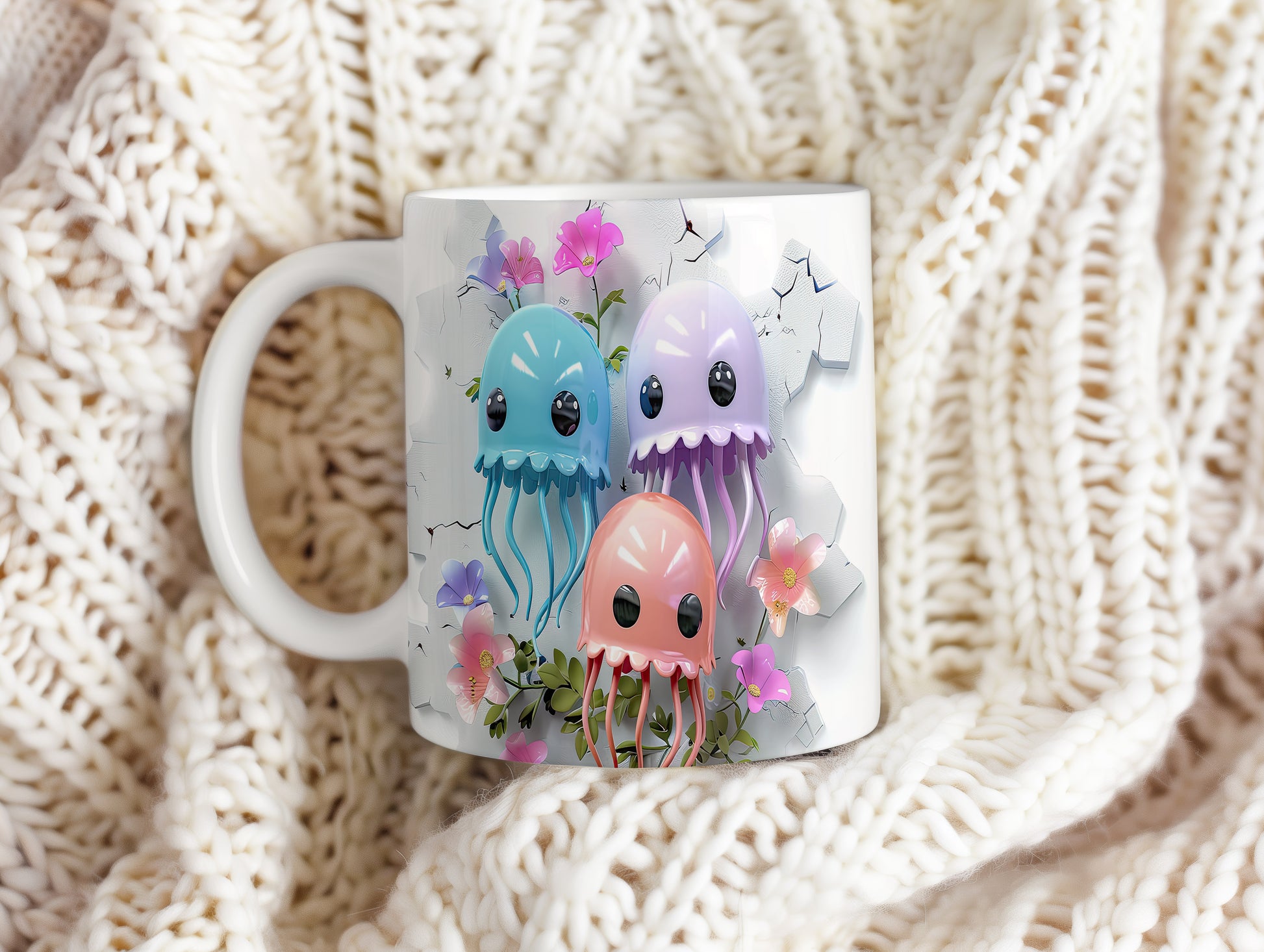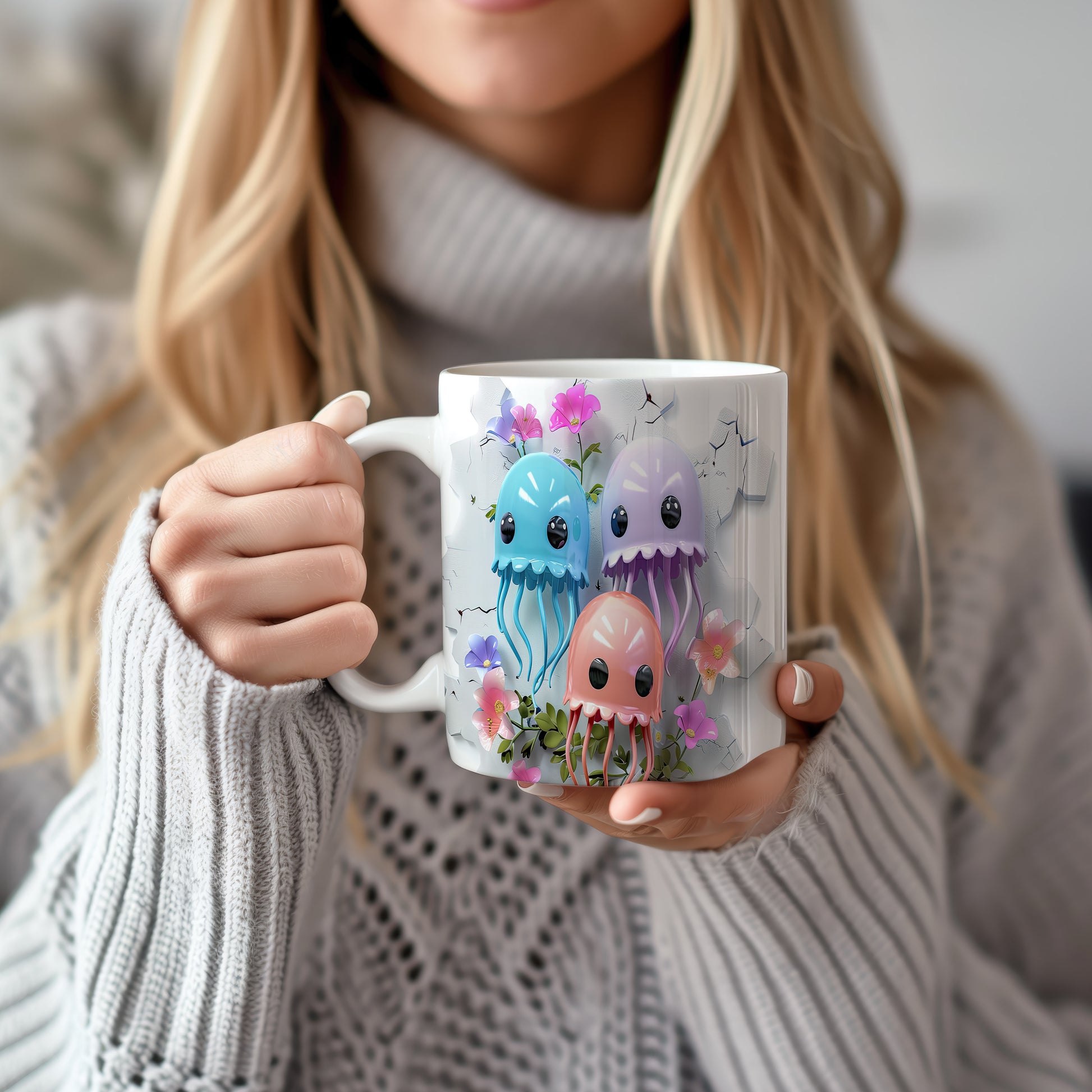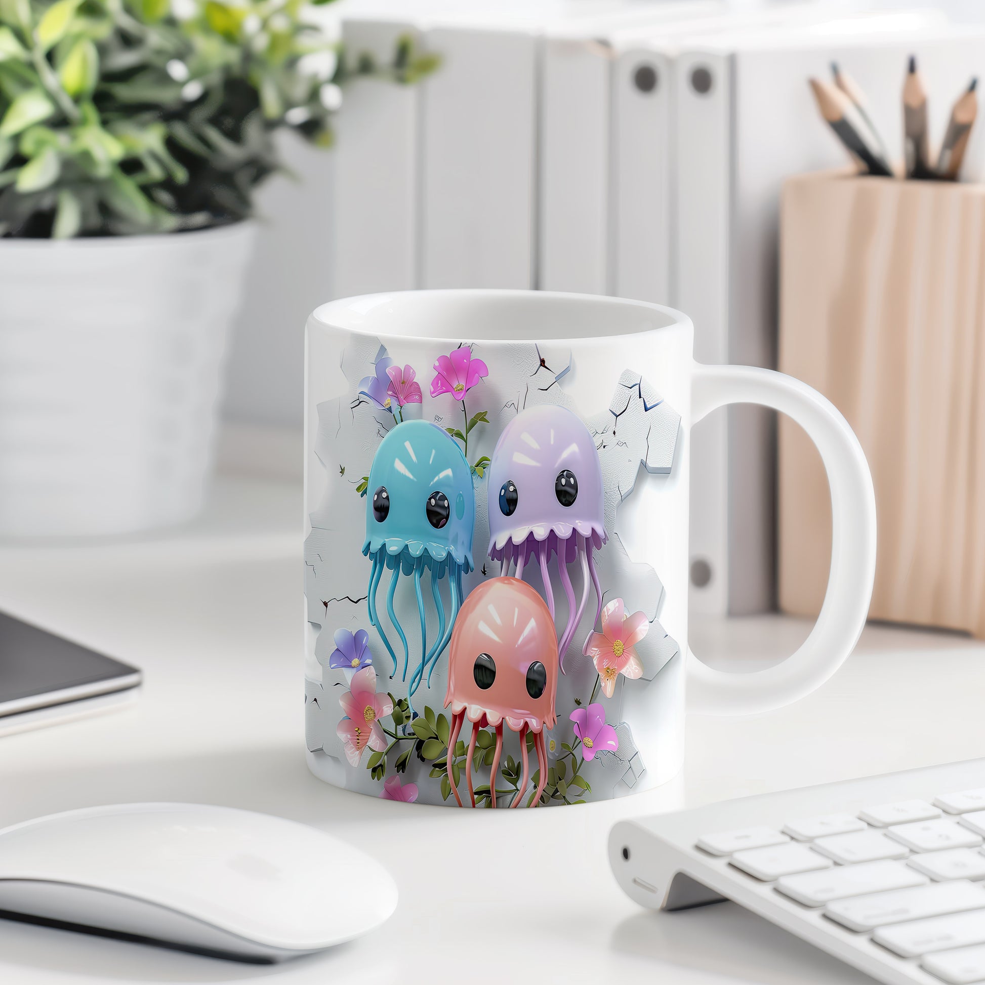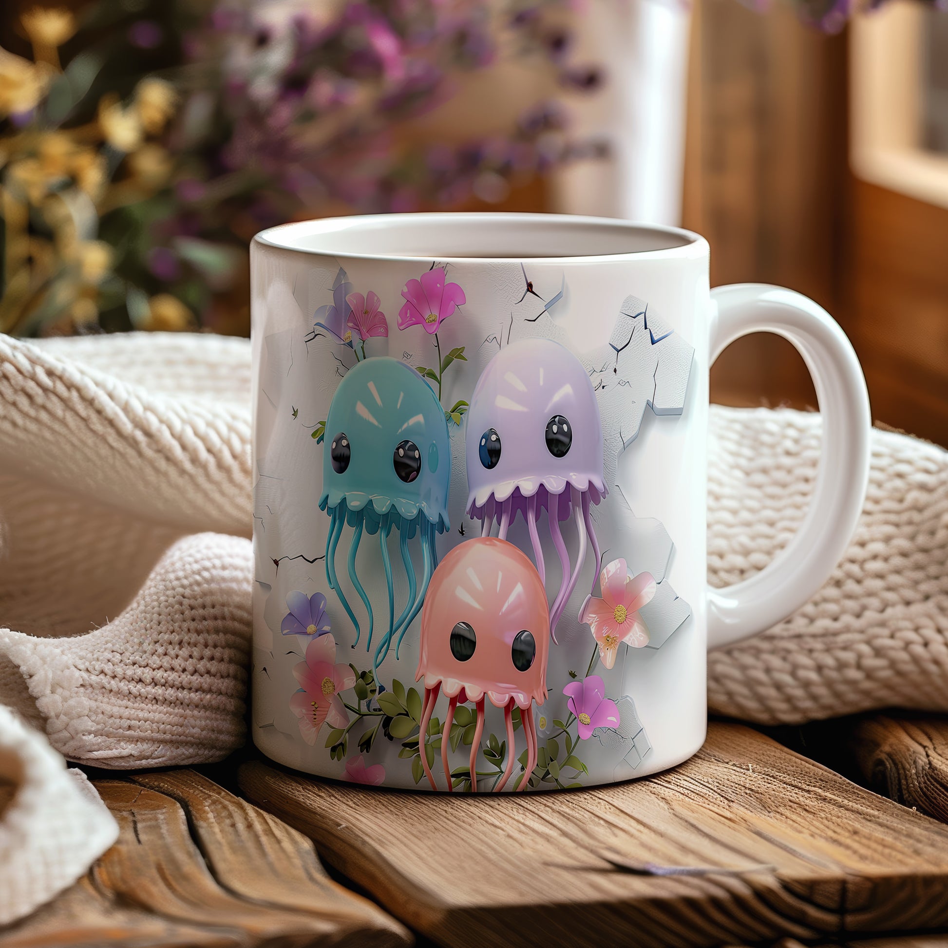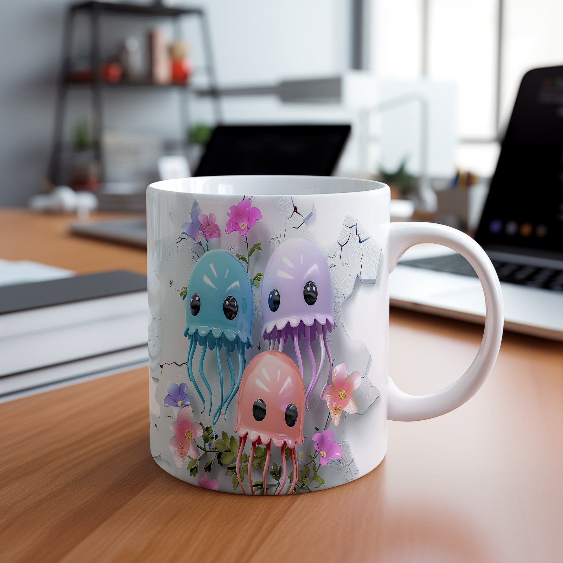 Tento keramický hrnek s roztomilými medúzami a květinami je skvělým doplňkem pro milovníky moře a originálních designů. Je ideální jako dárek pro přátele nebo rodinu, kteří ocení jedinečné kousky. Materiál: keramika. Objem: 330 ml. Vhodné do myčky i mikrovlnky. Díky svému designu přináší do každodenního pití radost a barevnost.