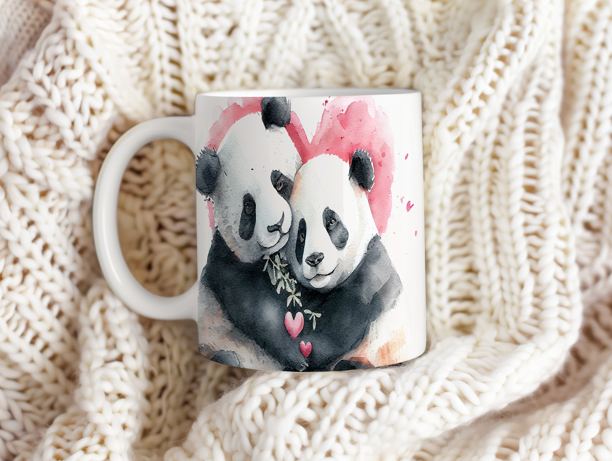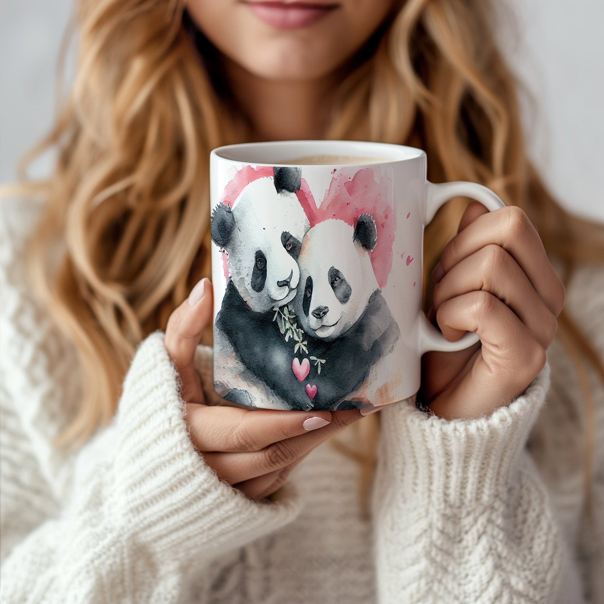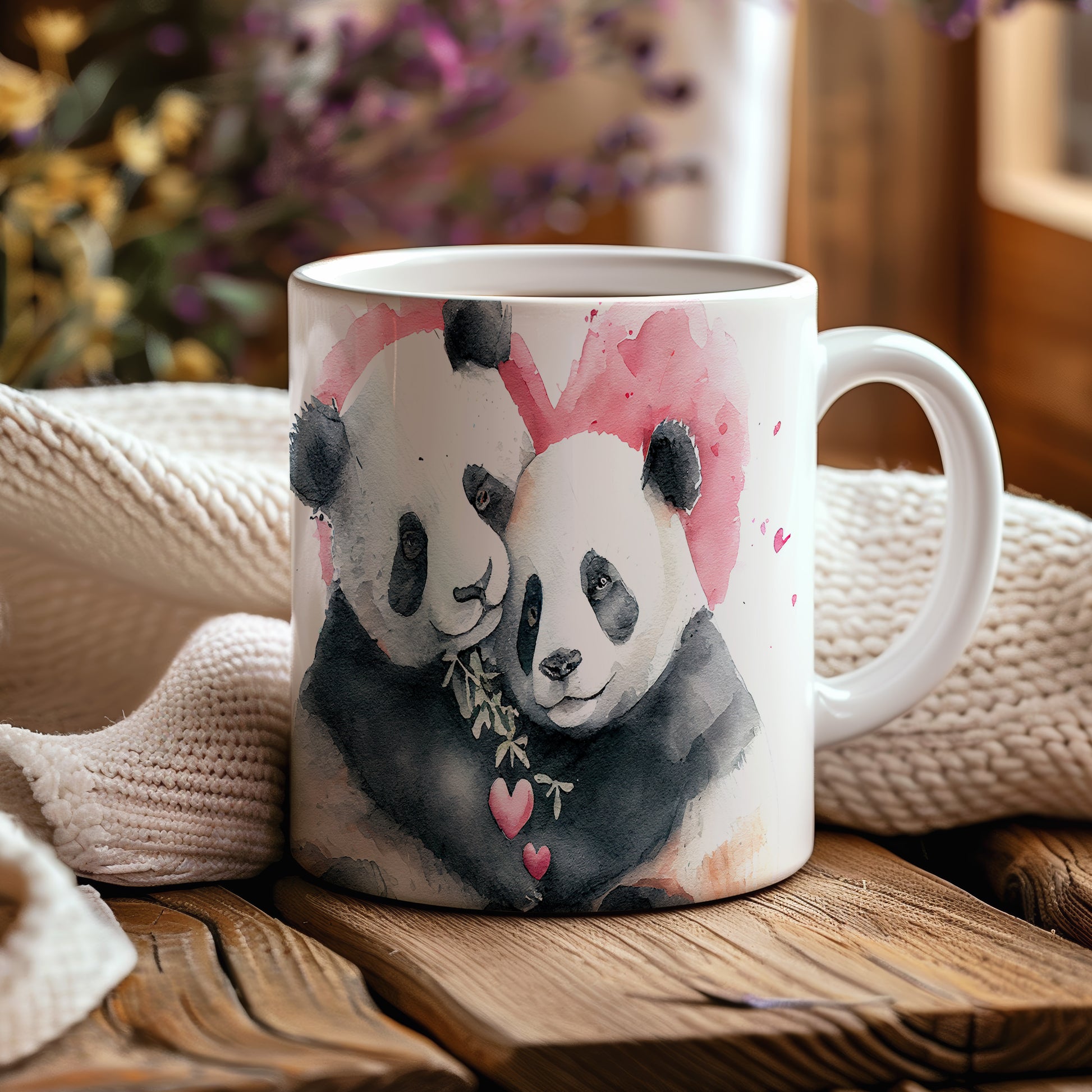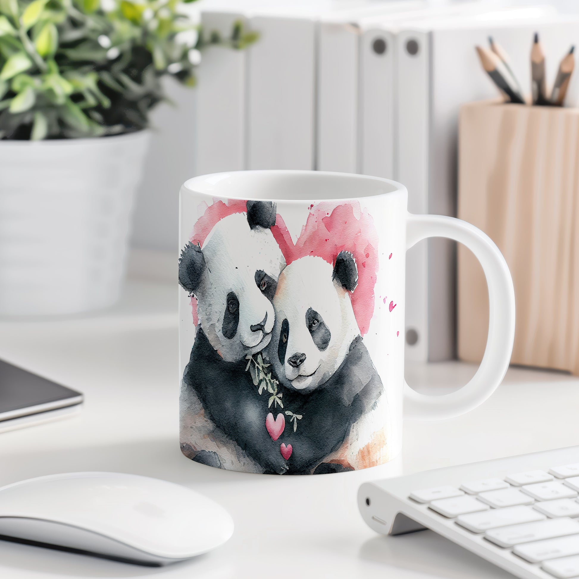 Hrnek s motivem roztomilých pand a jemných srdíček je ideálním dárkem pro milovníky těchto zvířat. Tento hrnek potěší každého, kdo ocení hravý design a příjemnou atmosféru. Materiál: keramika. Objem: 330 ml. Vhodné do myčky i mikrovlnky. Používání tohoto hrnku přináší radost a útulnost do každodenního pití.