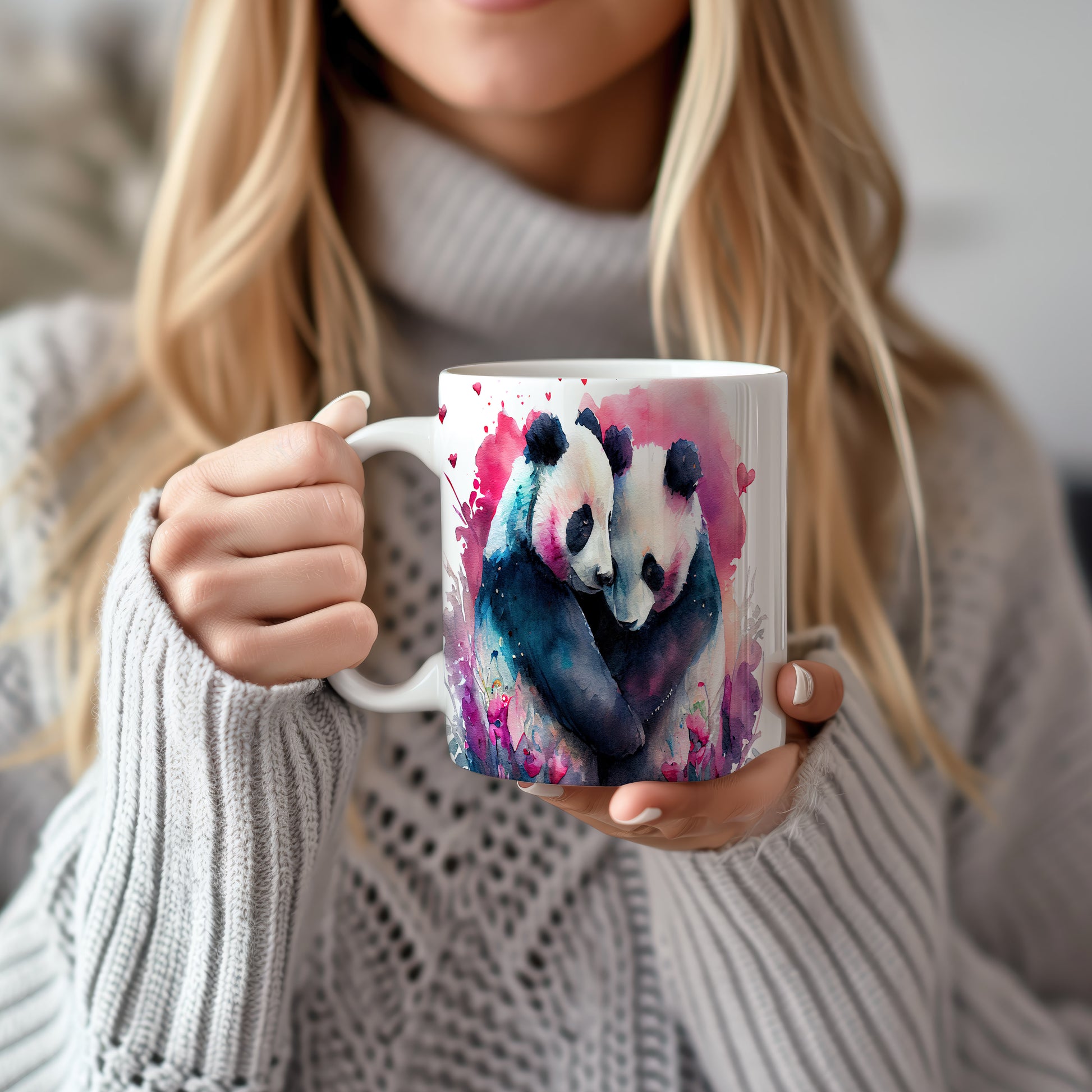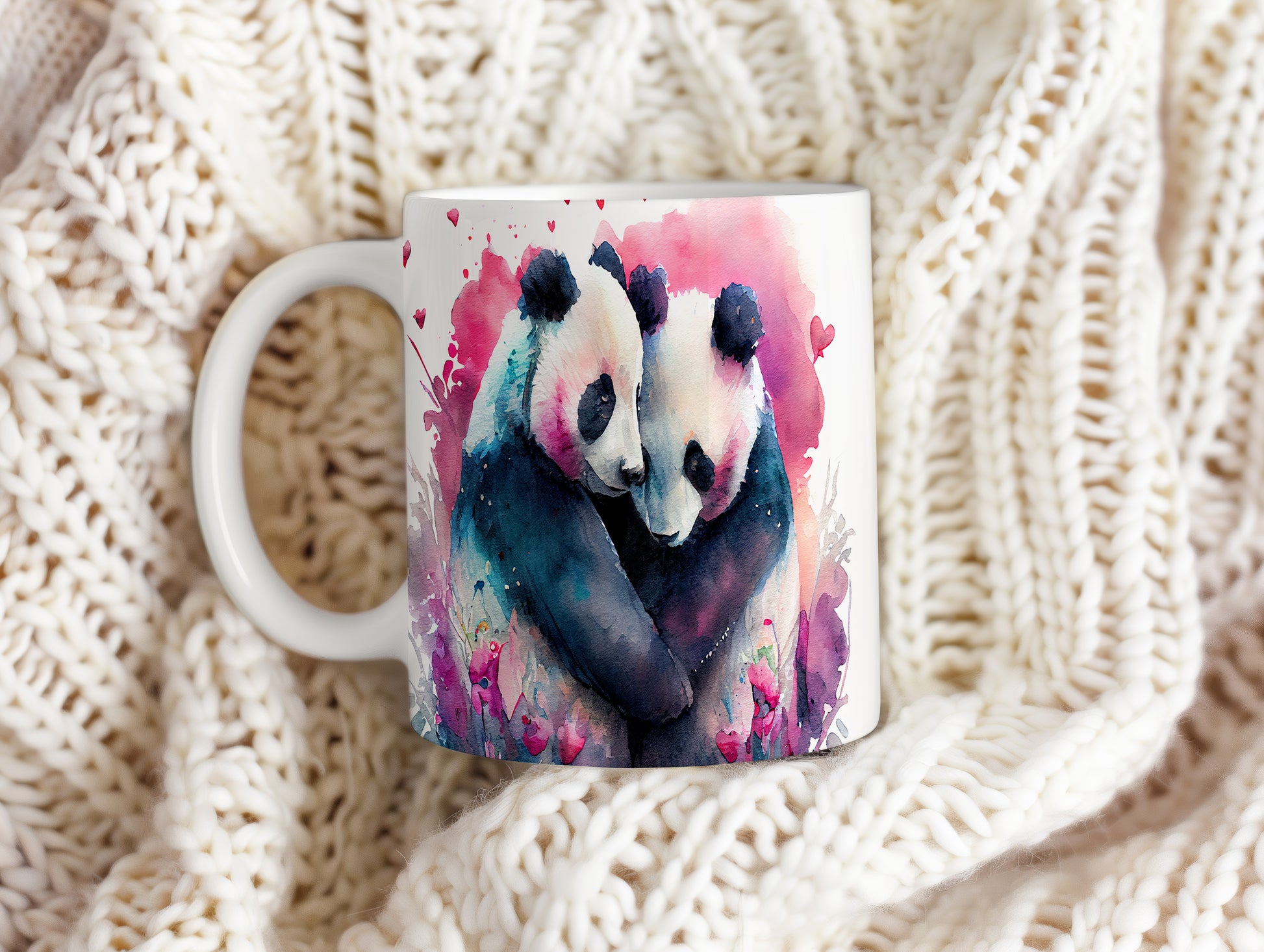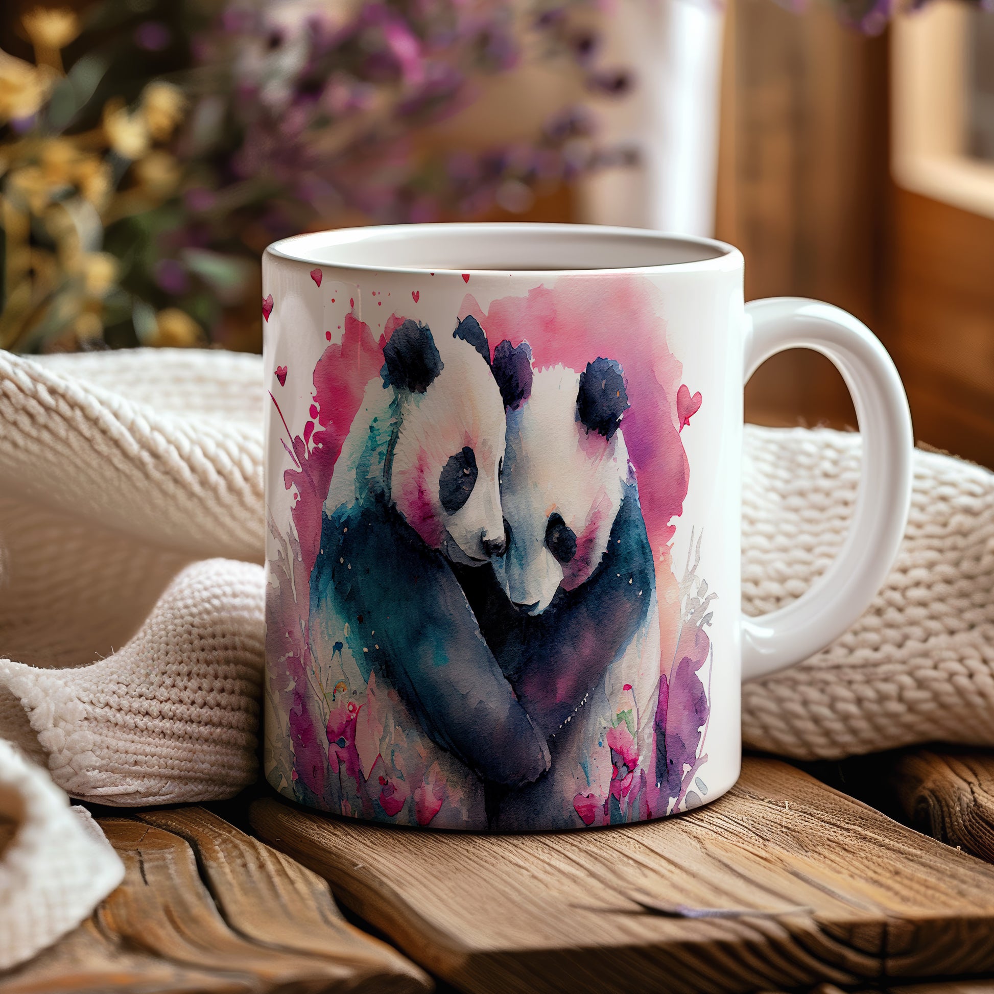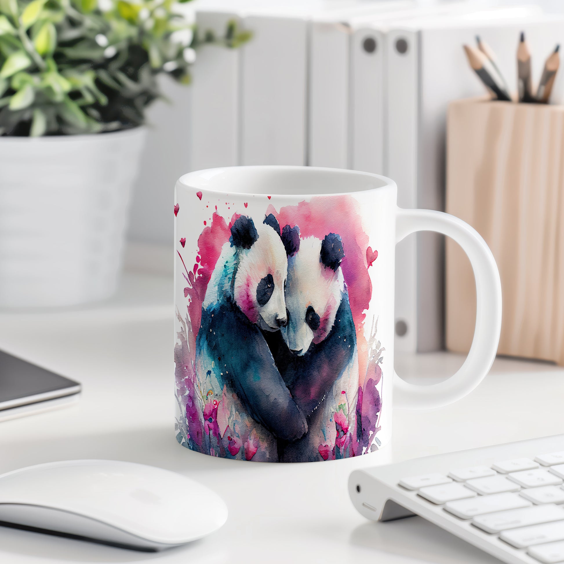 Hrnek s roztomilými pandami zobrazuje dvě pandy, které se objímají na pozadí srdíček a barevných květin. Je ideální pro milovníky přírody a zvířat, skvělý tip na dárek pro přátele nebo rodinu. Materiál: keramika. Objem: 330 ml. Vhodné do myčky i mikrovlnky. Tento hrnek přináší radost do každého dne a potěší každého, kdo si ho vezme do ruky.