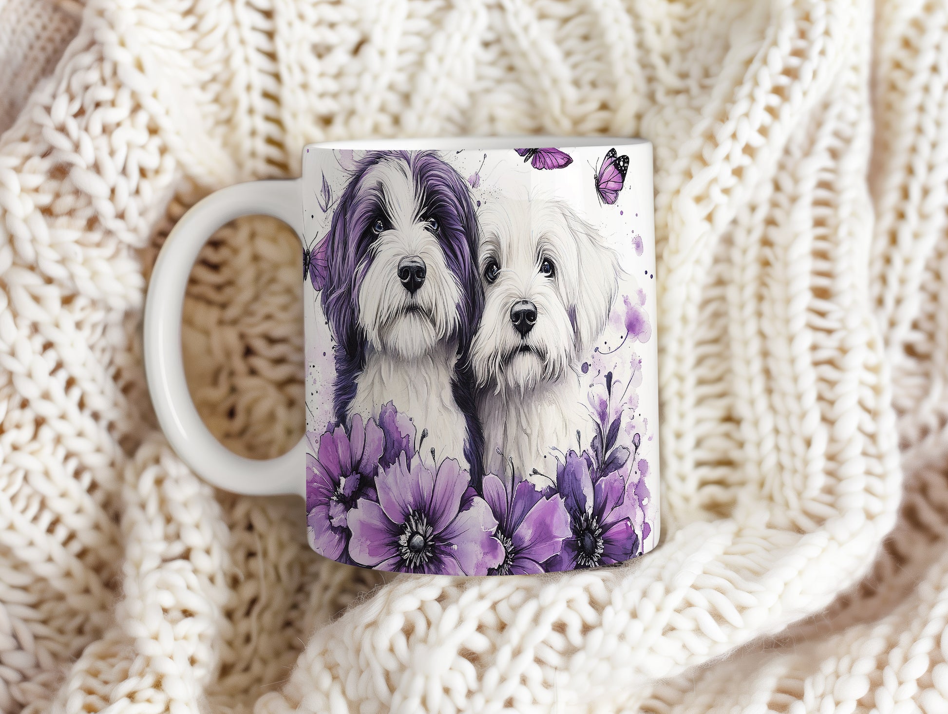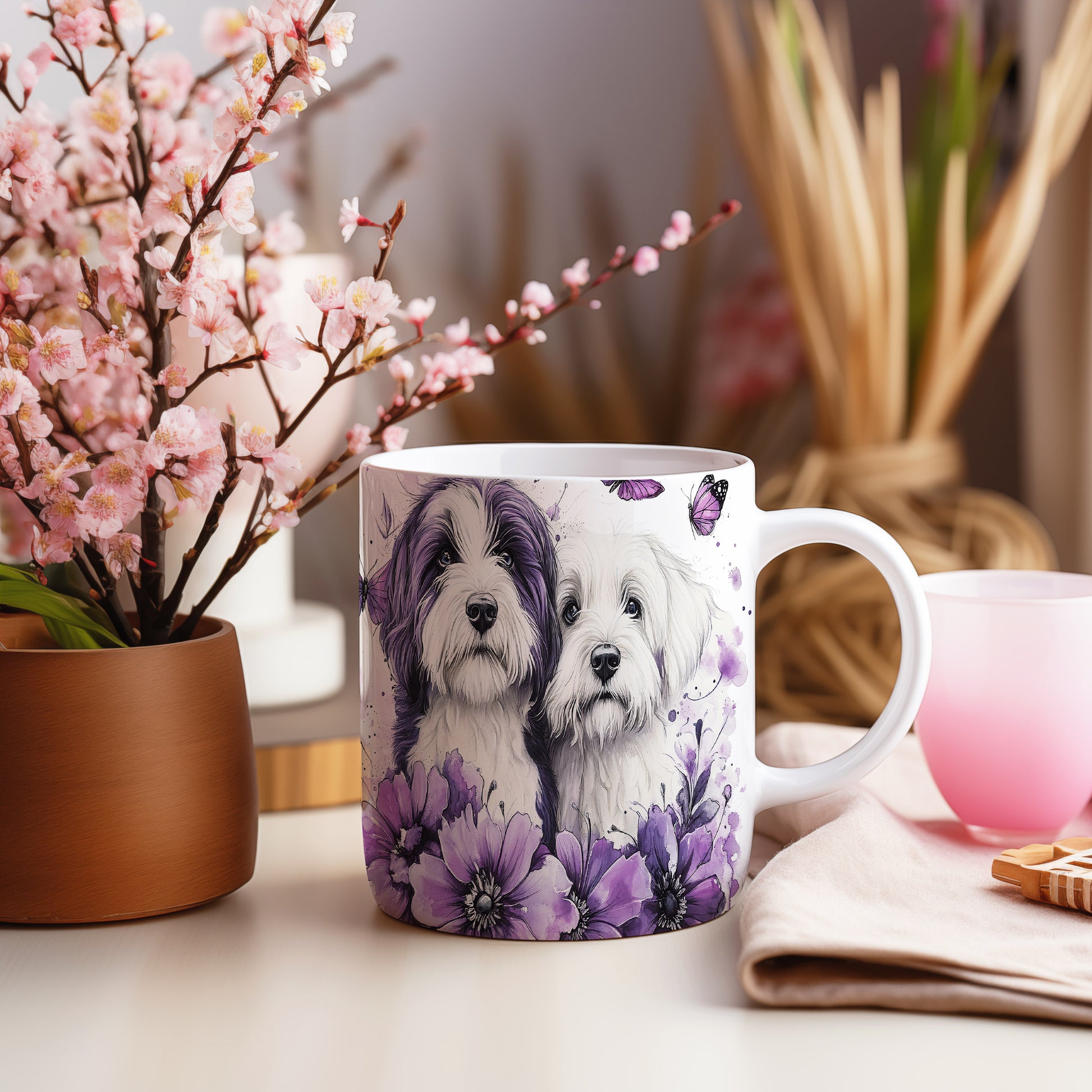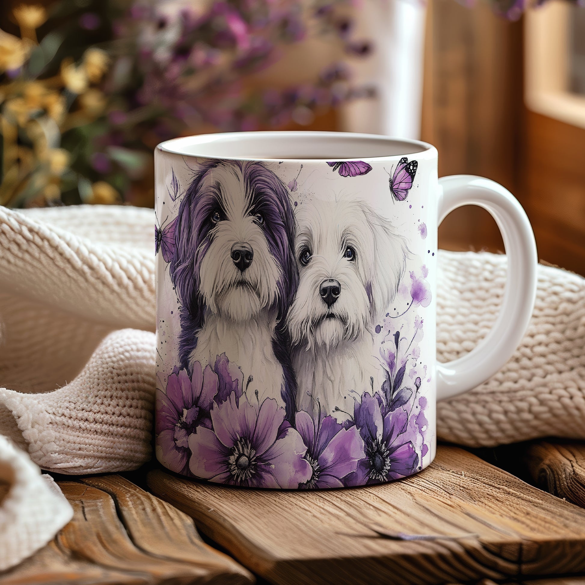Tento hrnek zdobí motiv dvou roztomilých pejsků s květinami v purpurových a bílých odstínech. Je ideální pro milovníky psů a skvělým dárkem pro každého, kdo má rád zvířata. Materiál: keramika. Objem: 330 ml. Vhodné do myčky i mikrovlnky. Používání tohoto hrnku přináší radost a útulnost do každého dne.