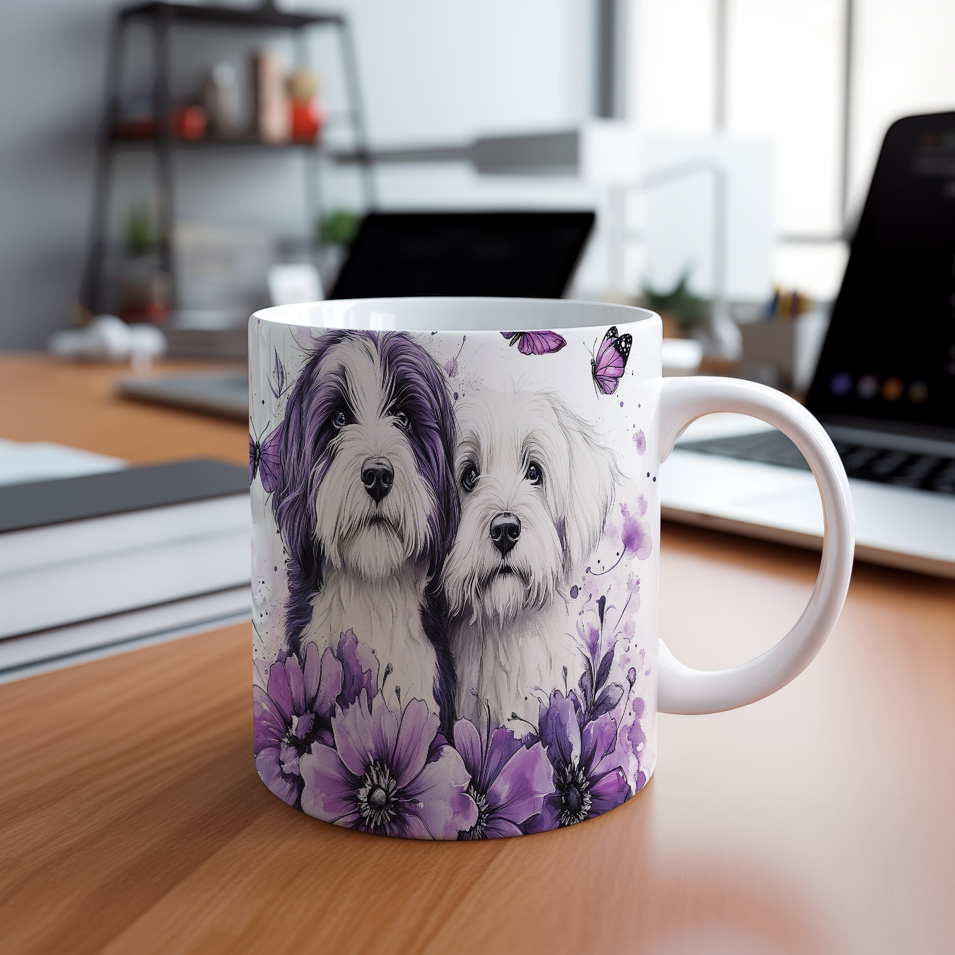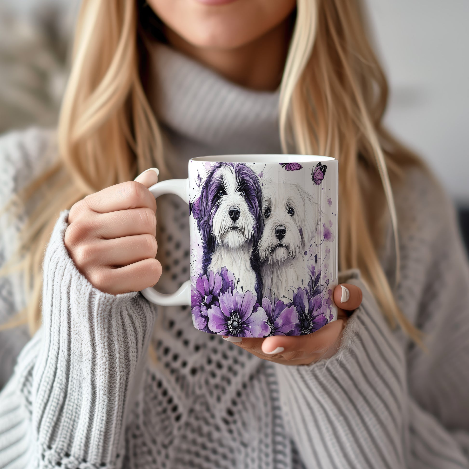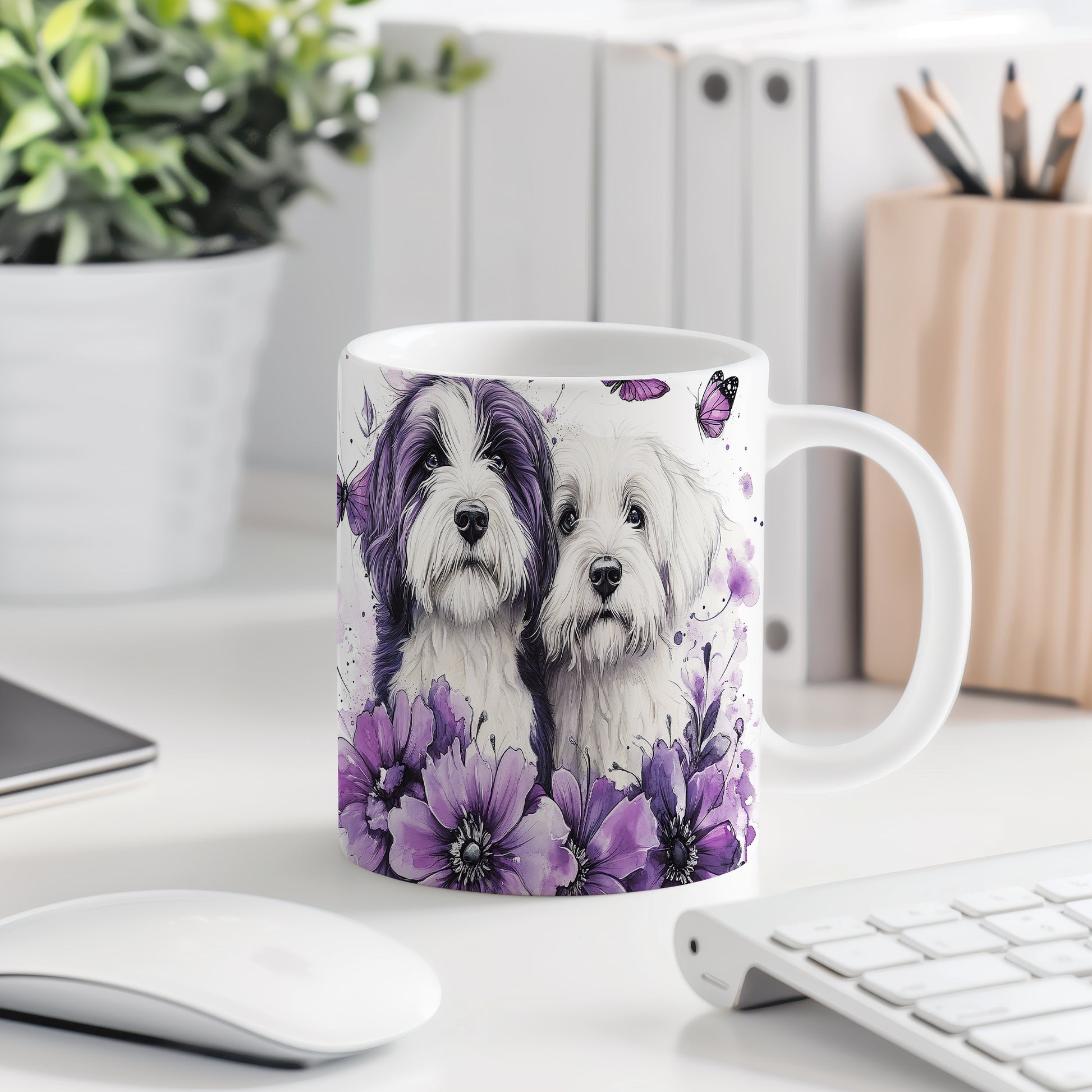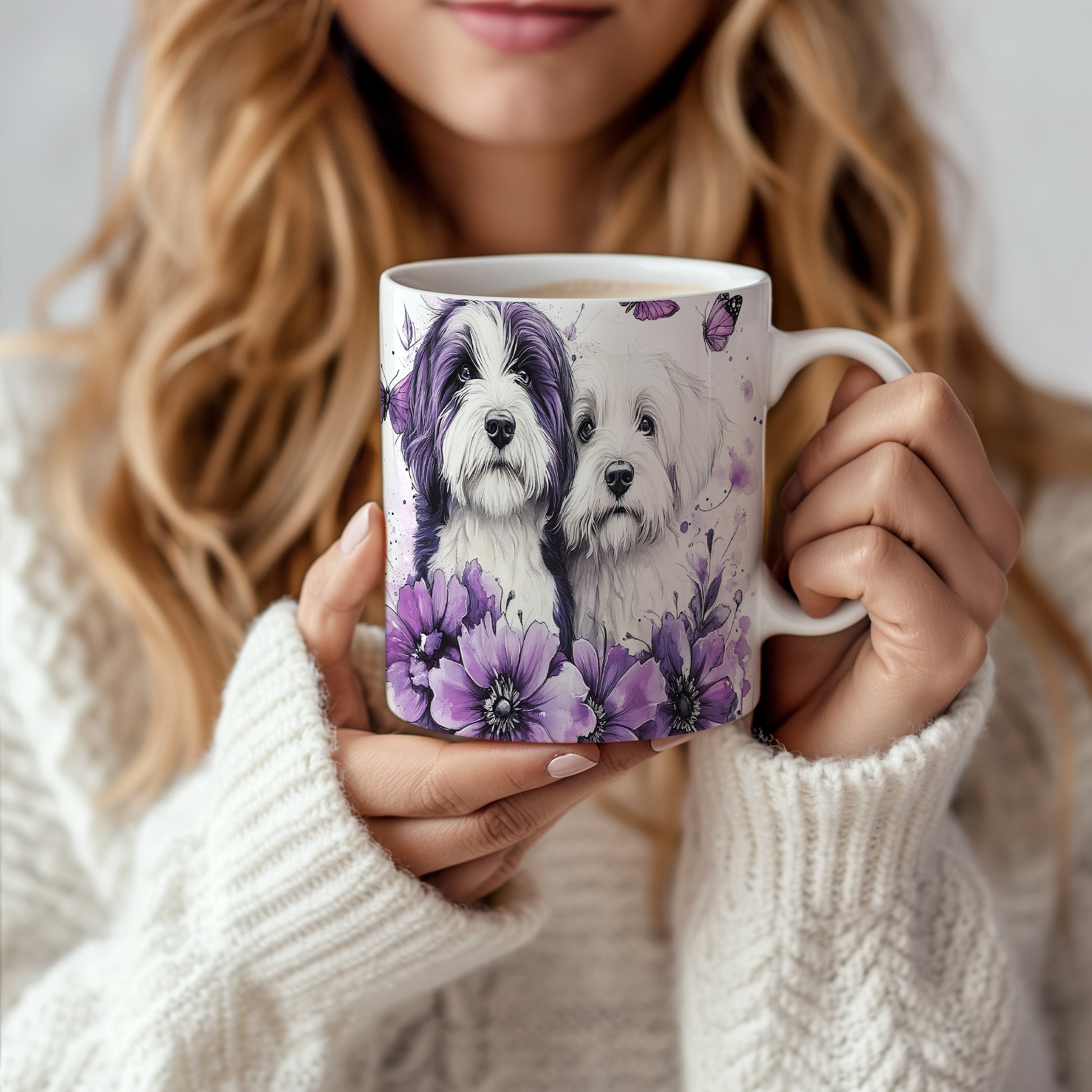 Tento hrnek zdobí motiv dvou roztomilých pejsků s květinami v purpurových a bílých odstínech. Je ideální pro milovníky psů a skvělým dárkem pro každého, kdo má rád zvířata. Materiál: keramika. Objem: 330 ml. Vhodné do myčky i mikrovlnky. Používání tohoto hrnku přináší radost a útulnost do každého dne.