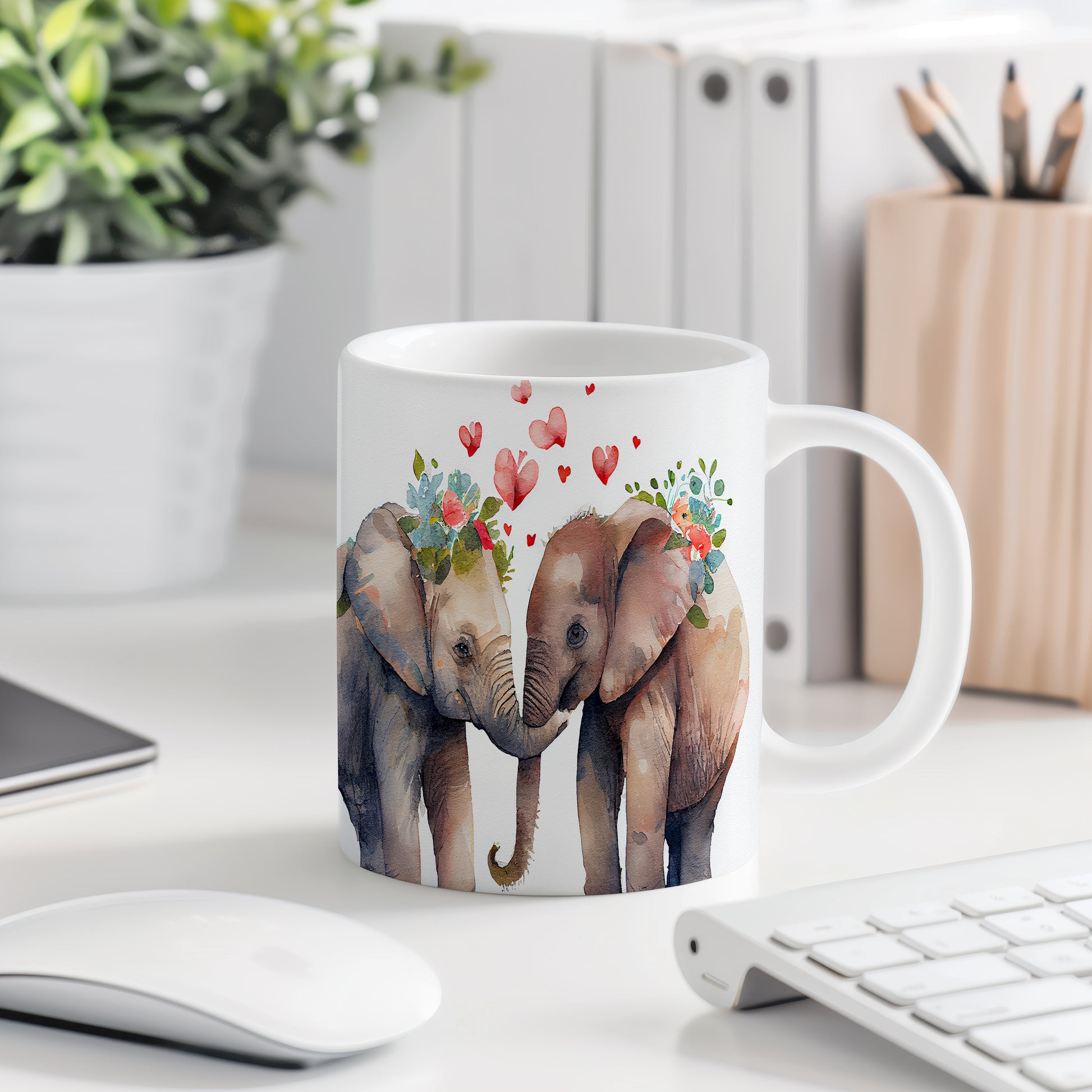 Hrnek s roztomilými slony a srdíčky přináší hravou atmosféru a je ideální pro milovníky zvířat. Skvělý tip na dárek pro děti i dospělé, kteří ocení veselý design. Materiál: keramika. Objem: 330 ml. Vhodné do myčky i mikrovlnky. Tento hrnek potěší každého a dodá radost při každém doušku.