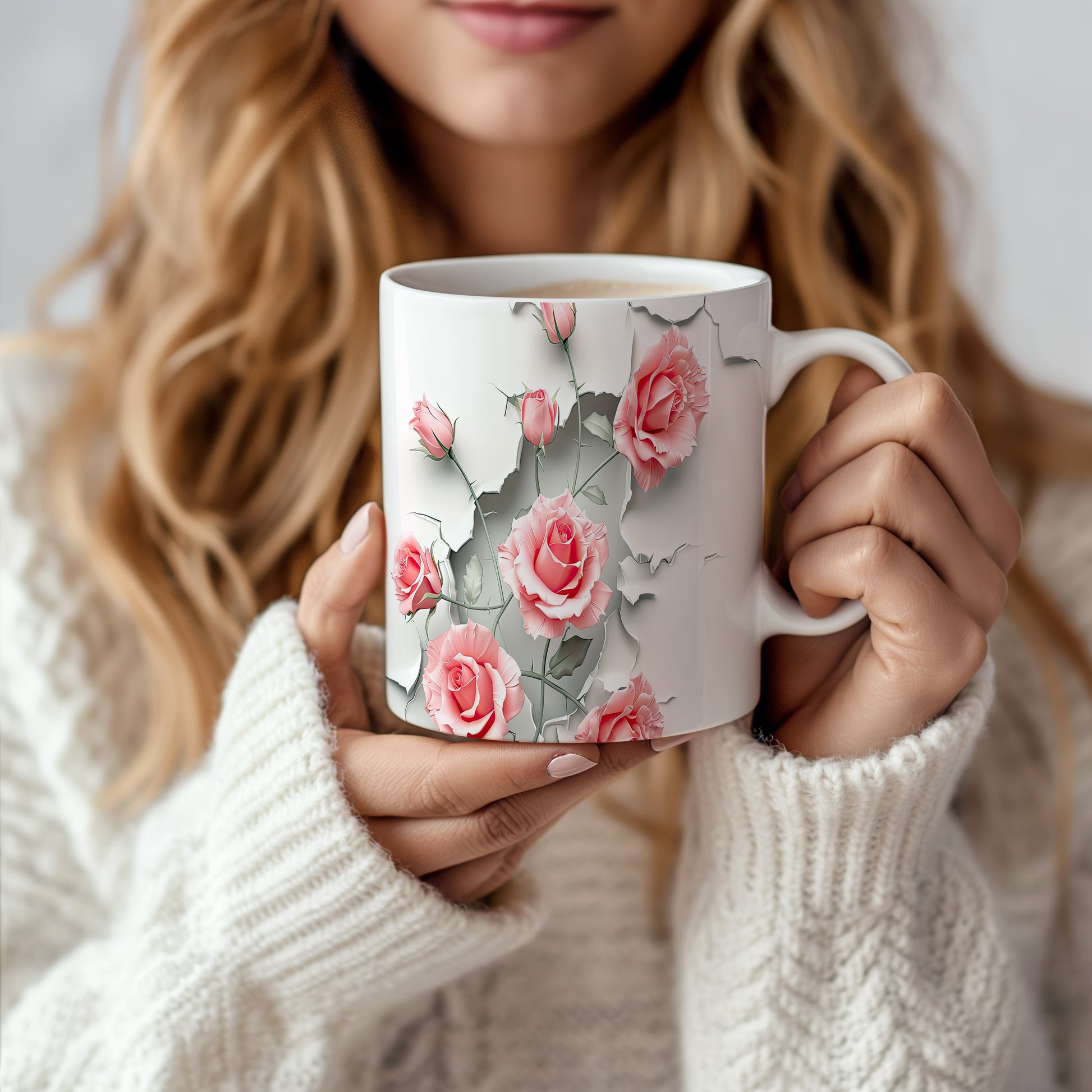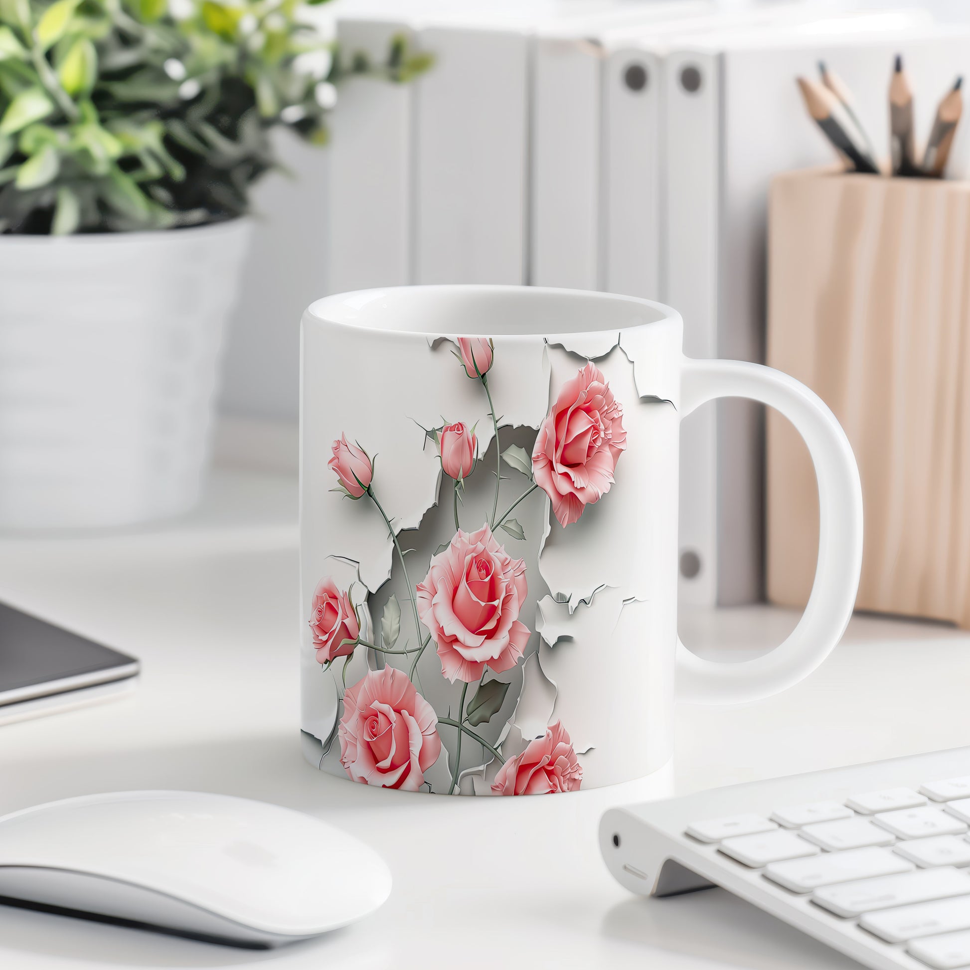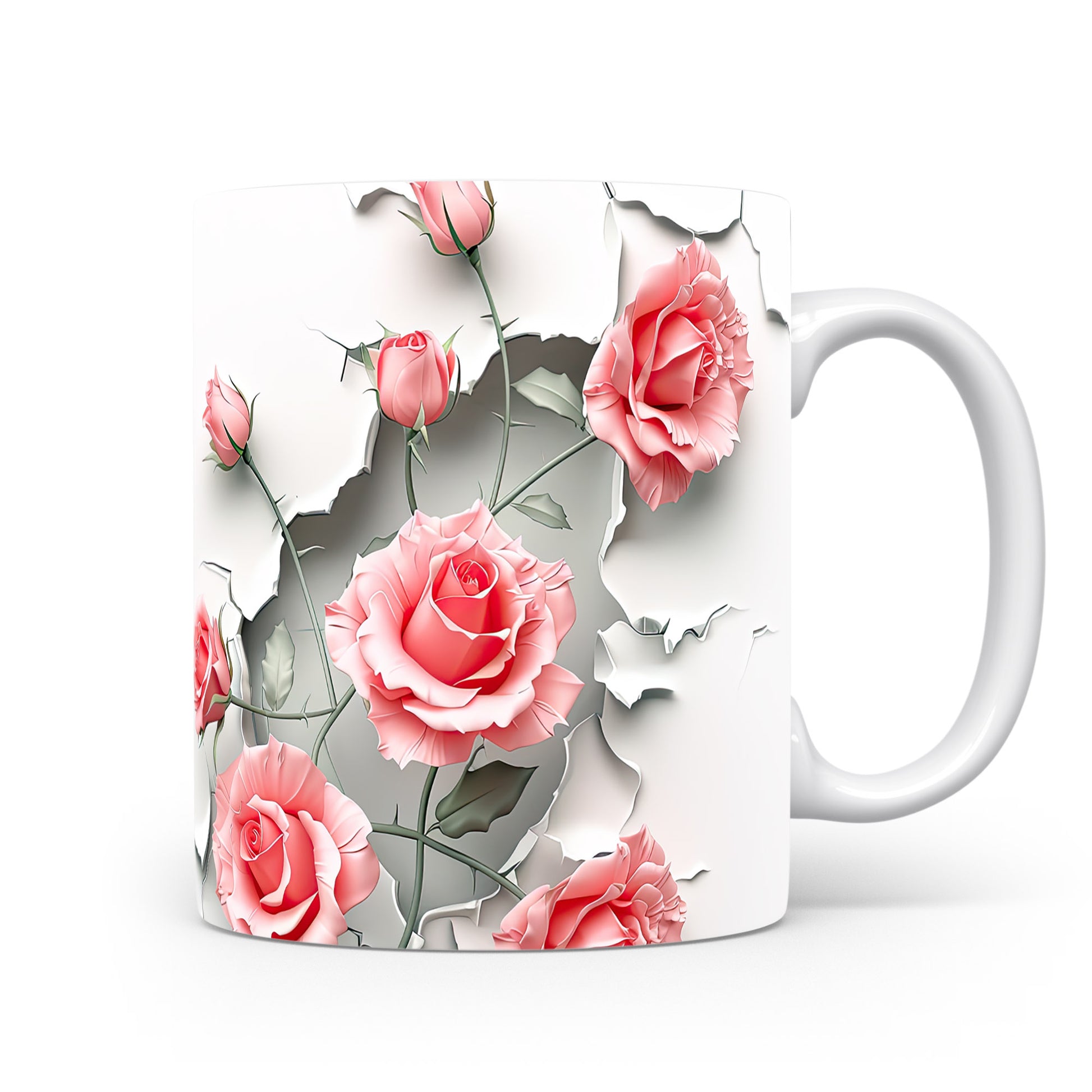 Hrnek s růžemi 3D efektem – bílým provedením