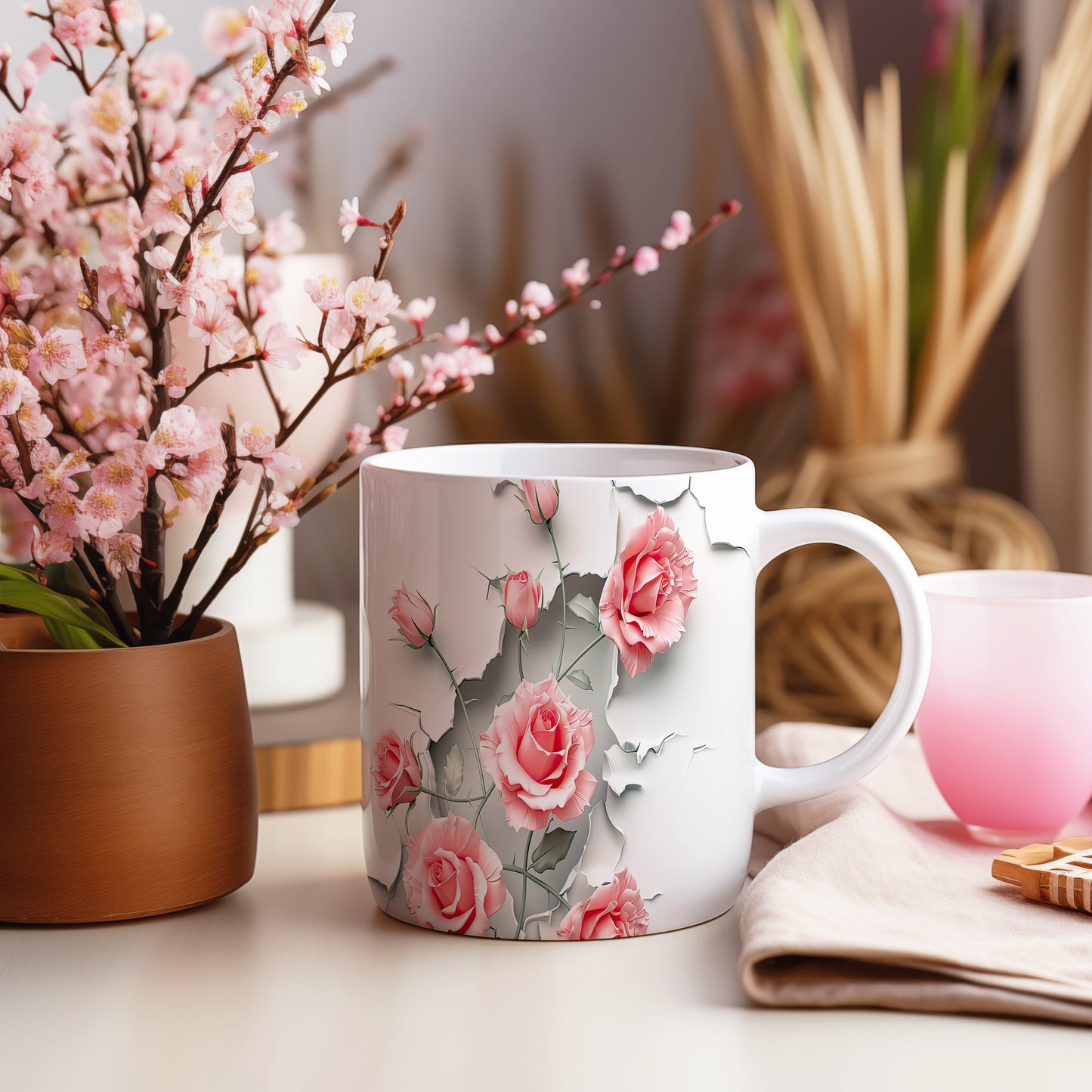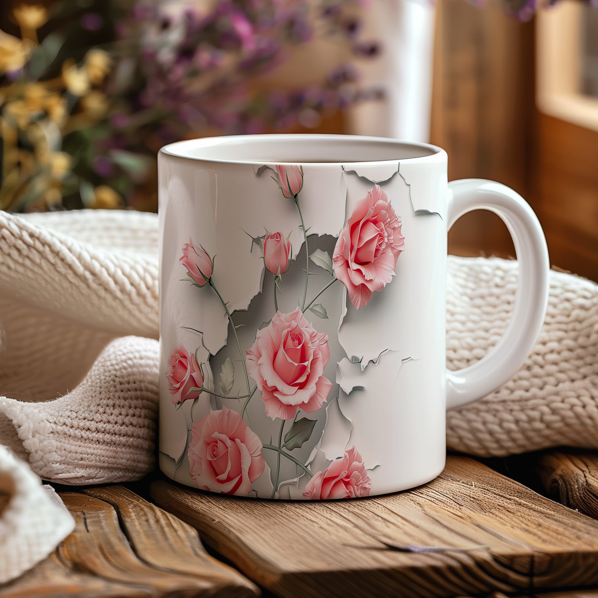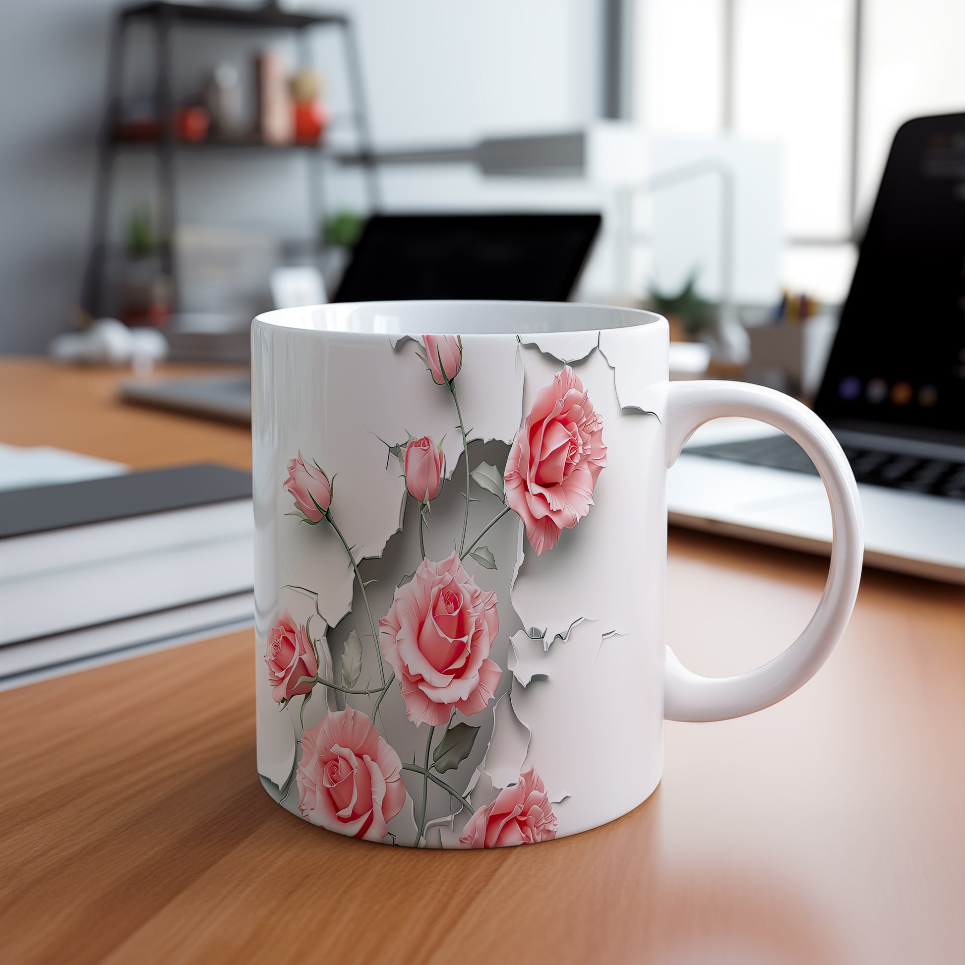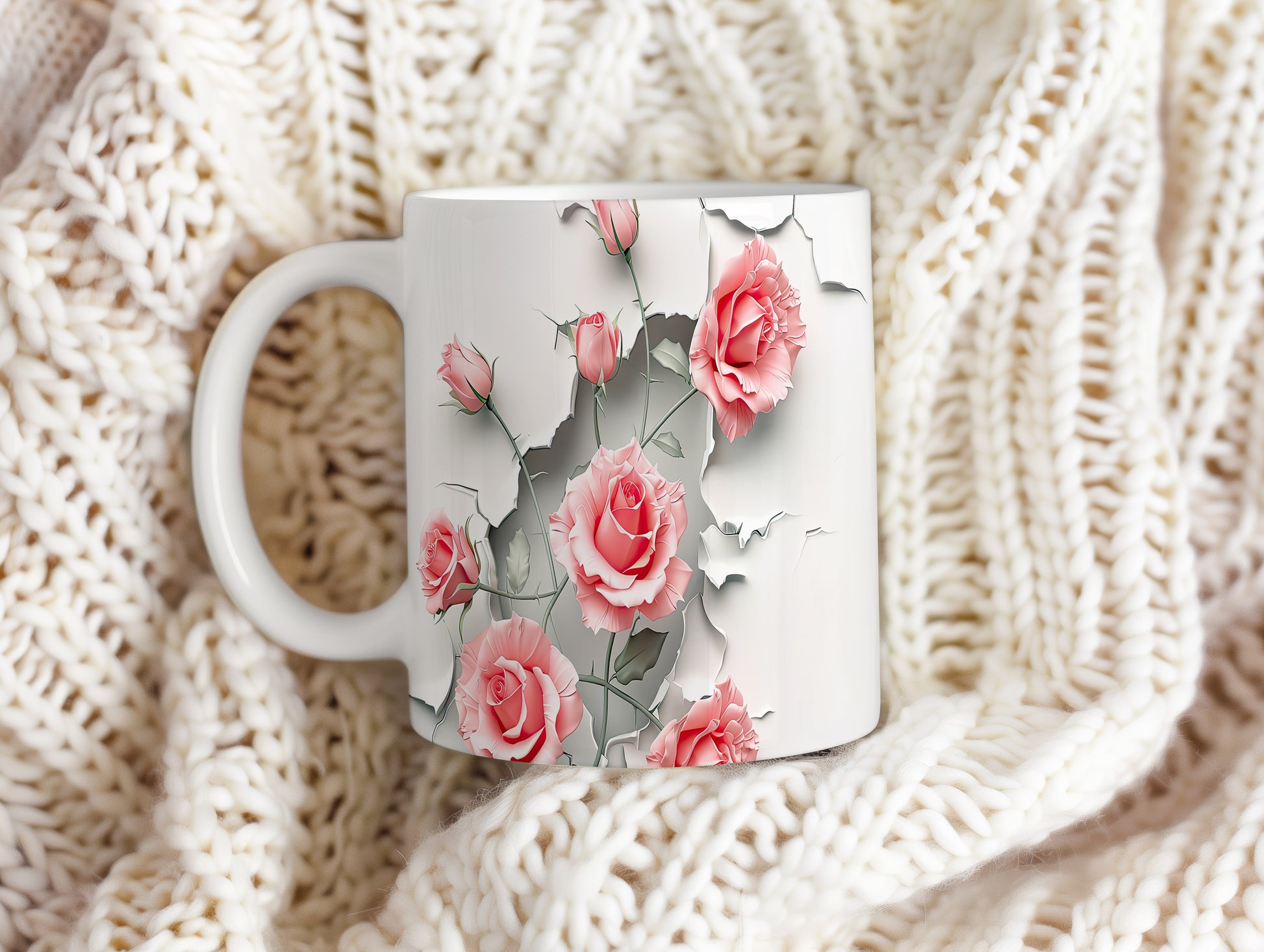 Hrnek s růžemi 3D efektem – bílým provedením