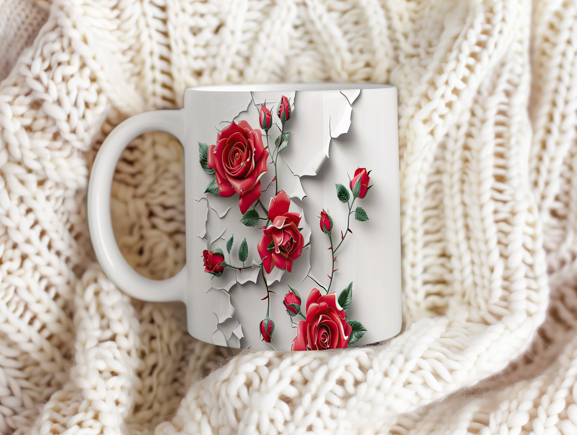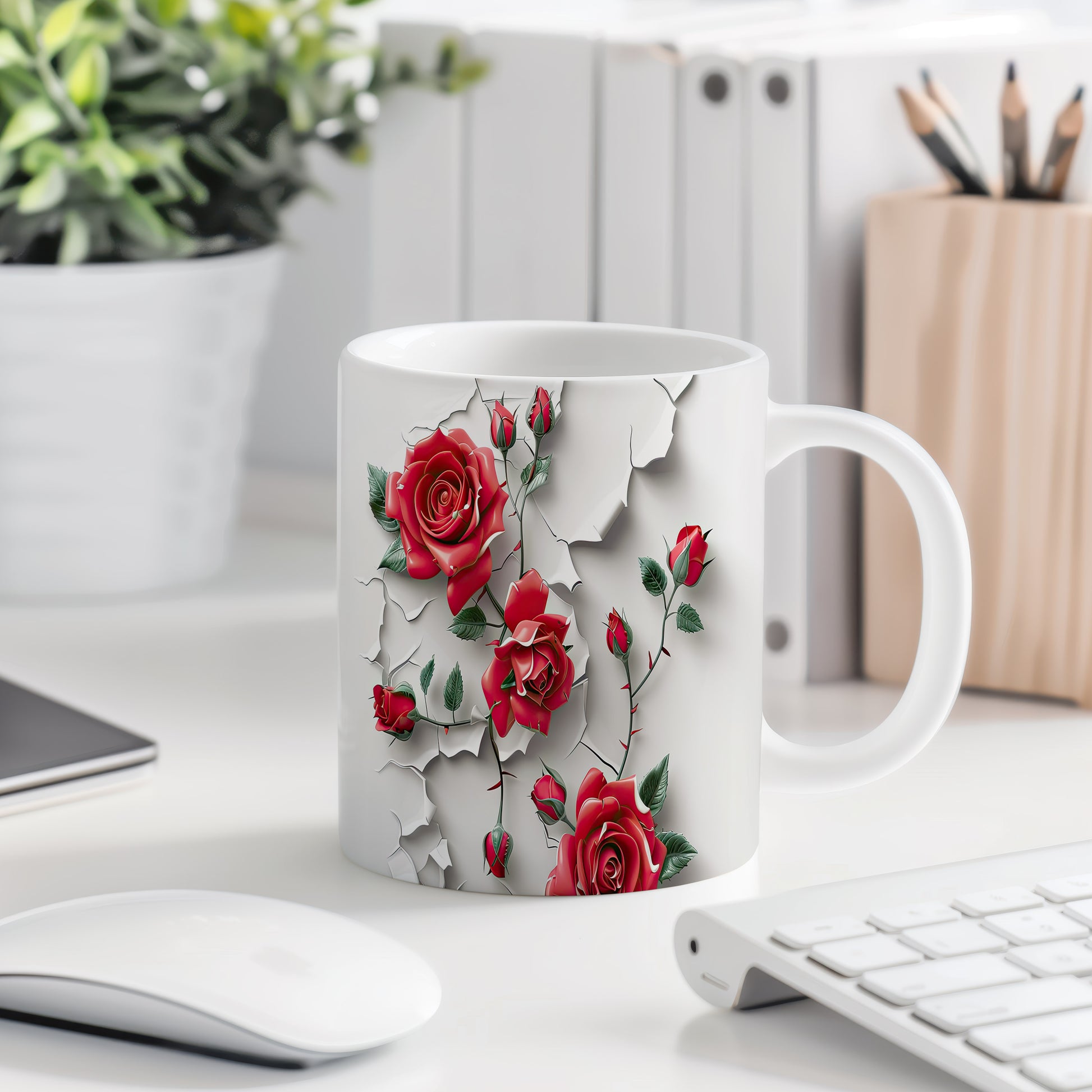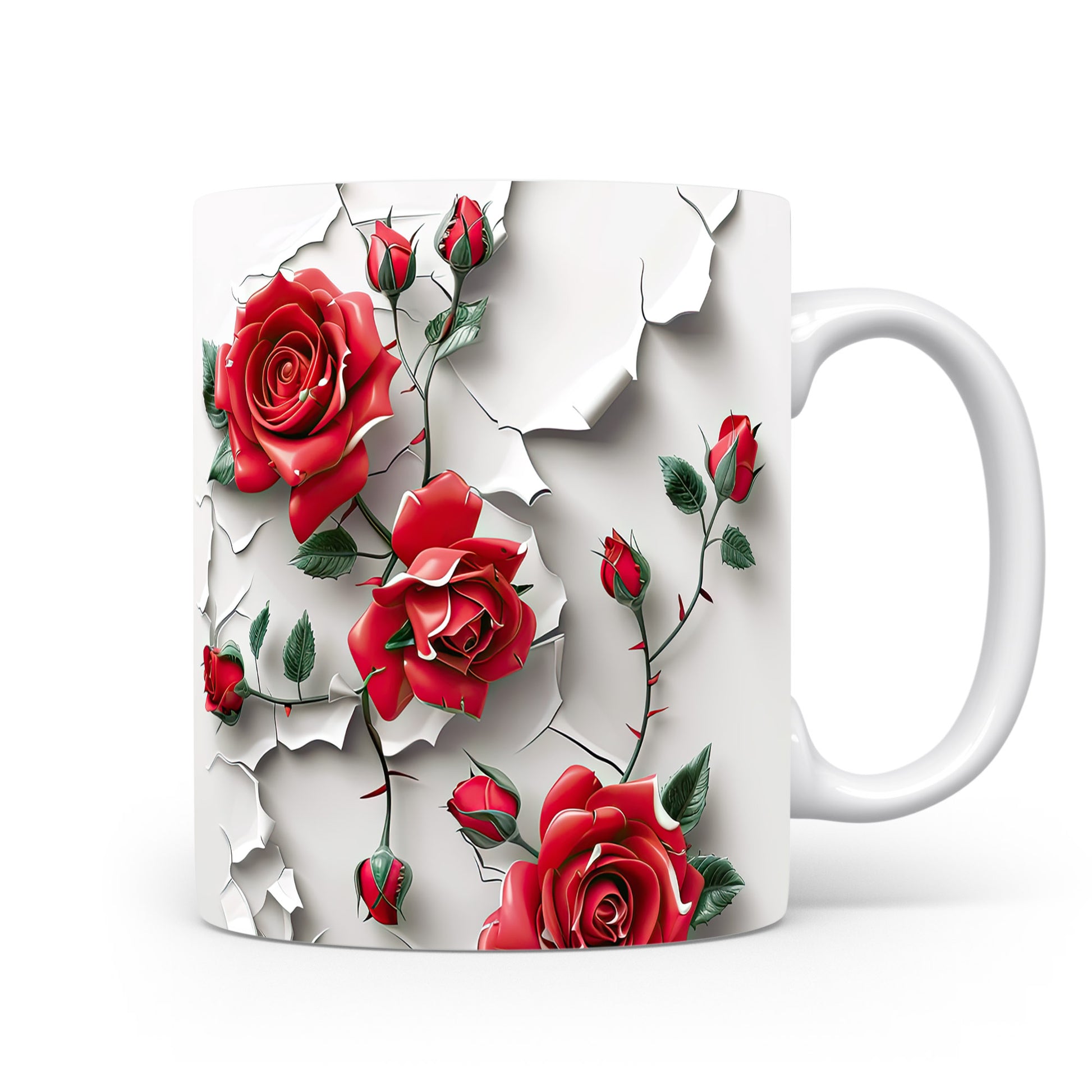 Hrnek s růžemi a 3D efektem – bílým provedením