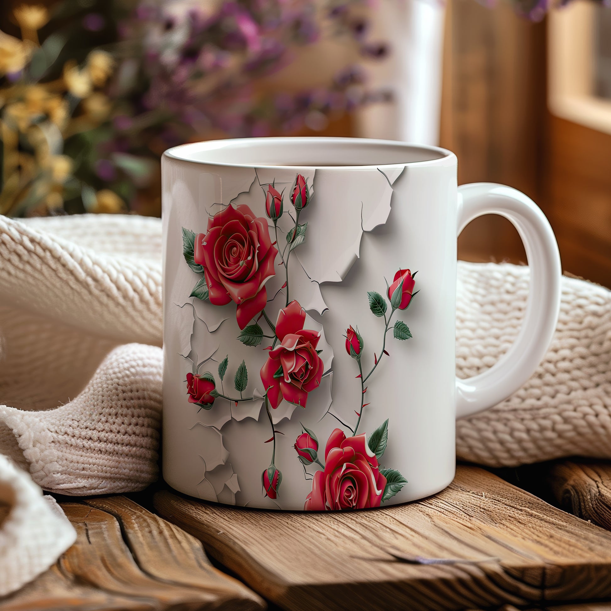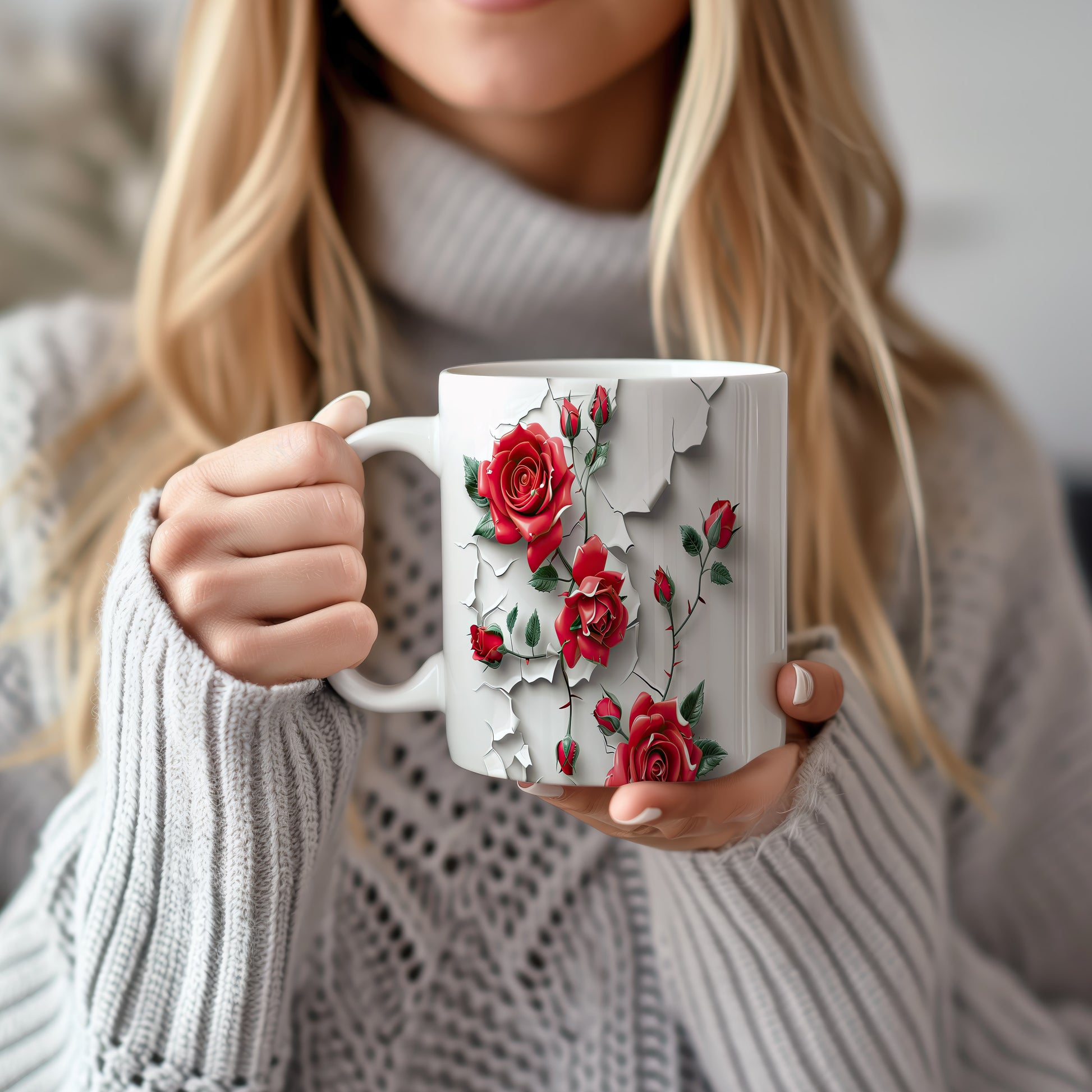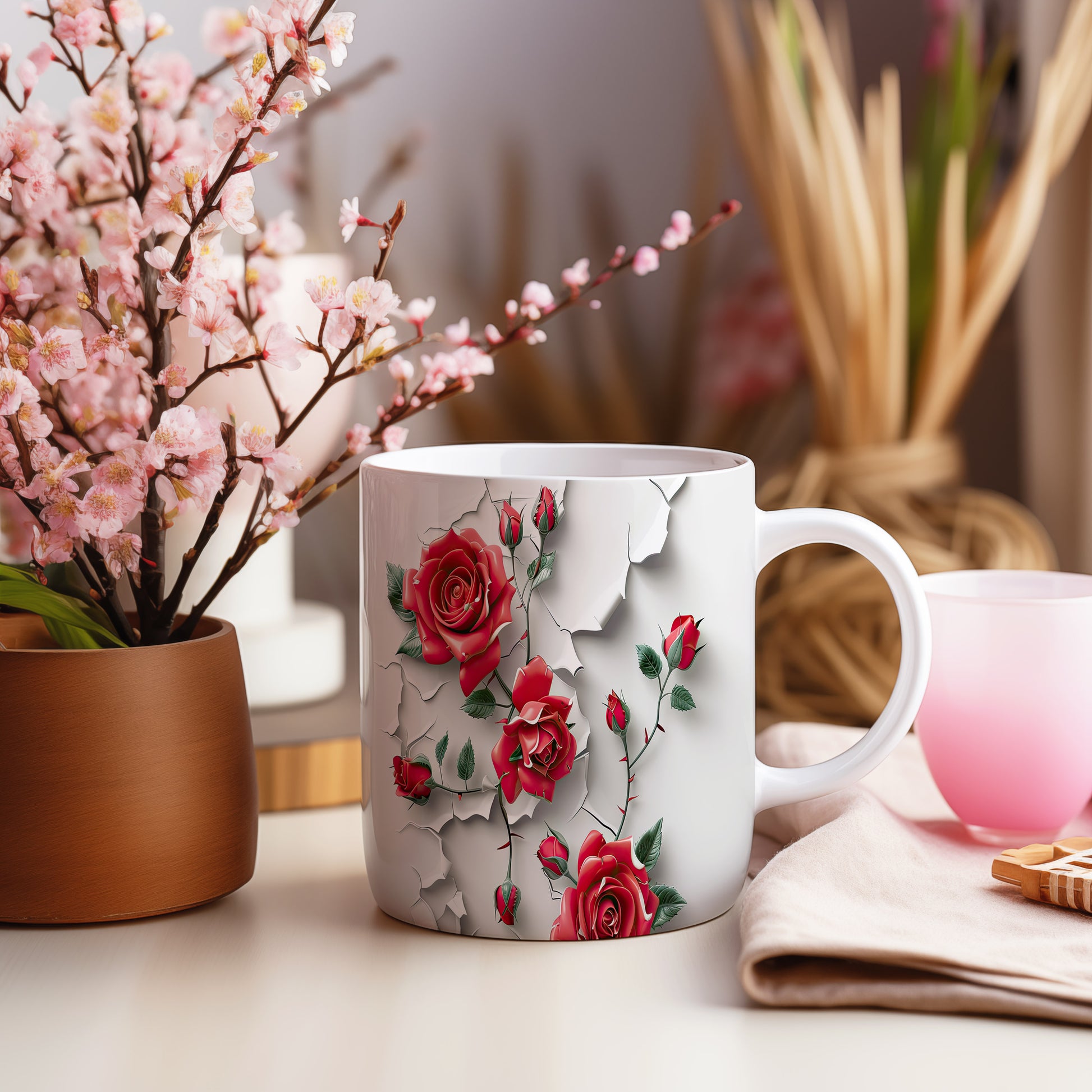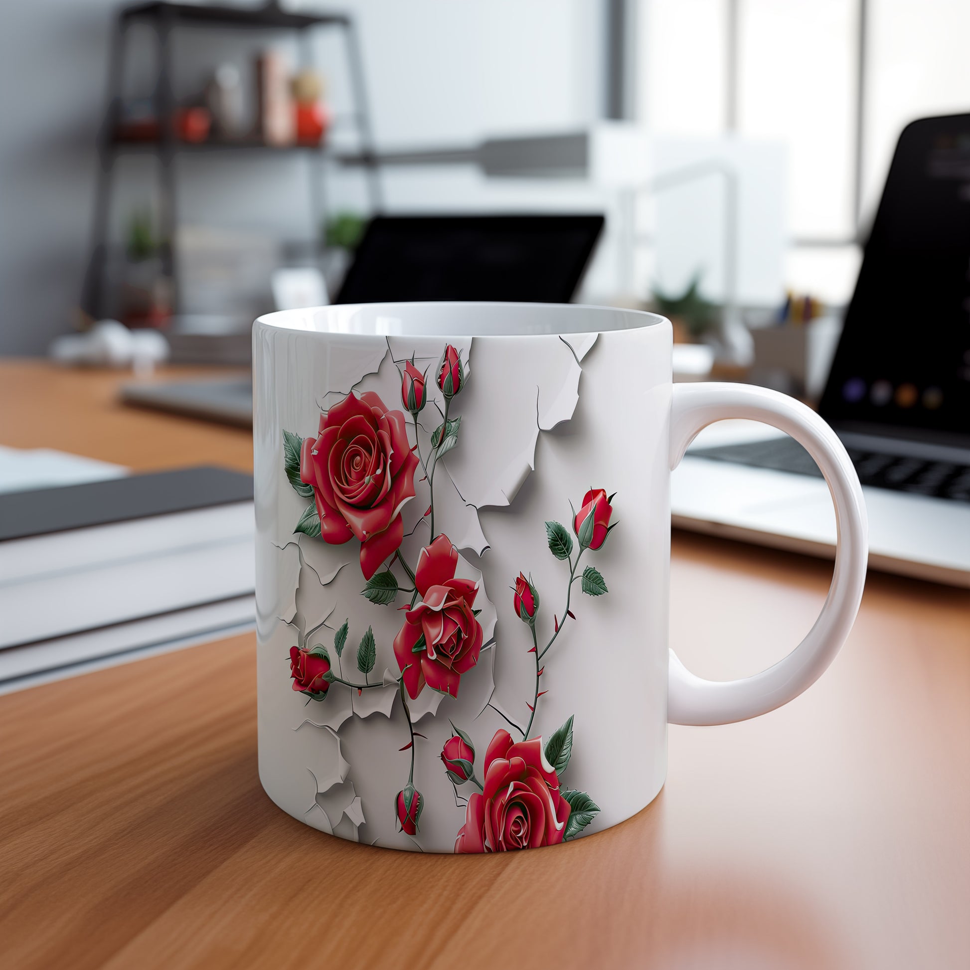 Hrnek s růžemi a 3D efektem – bílým provedením