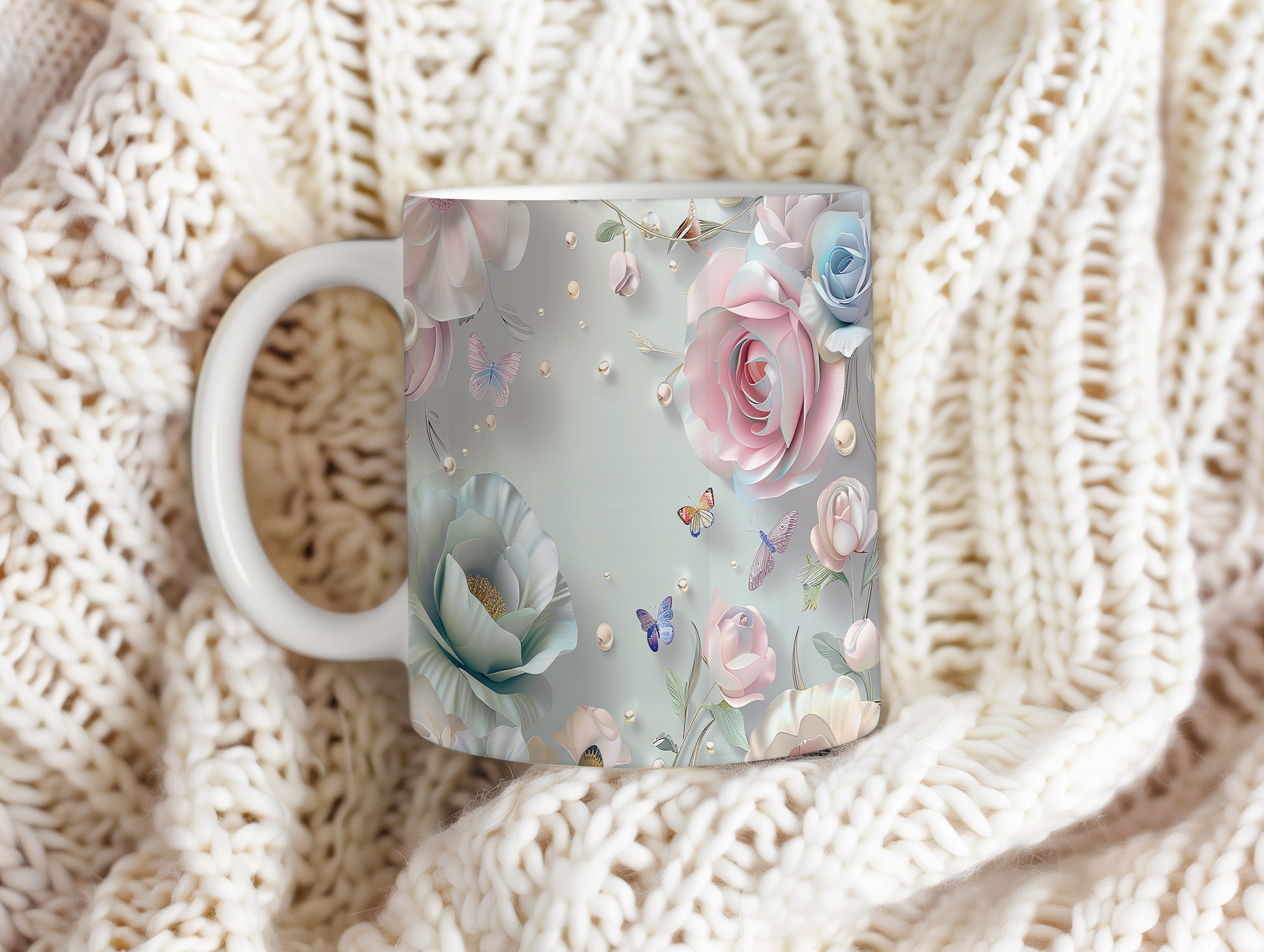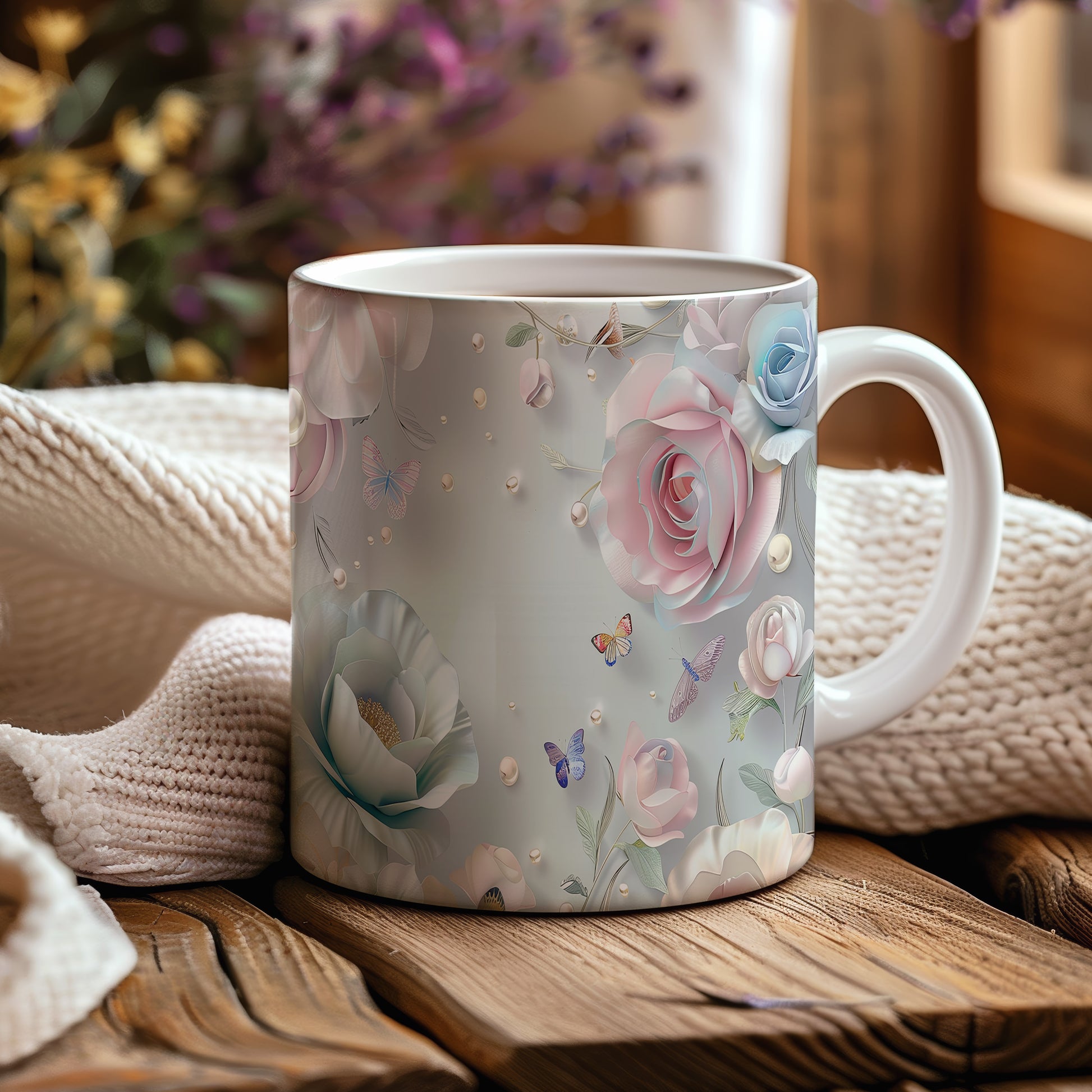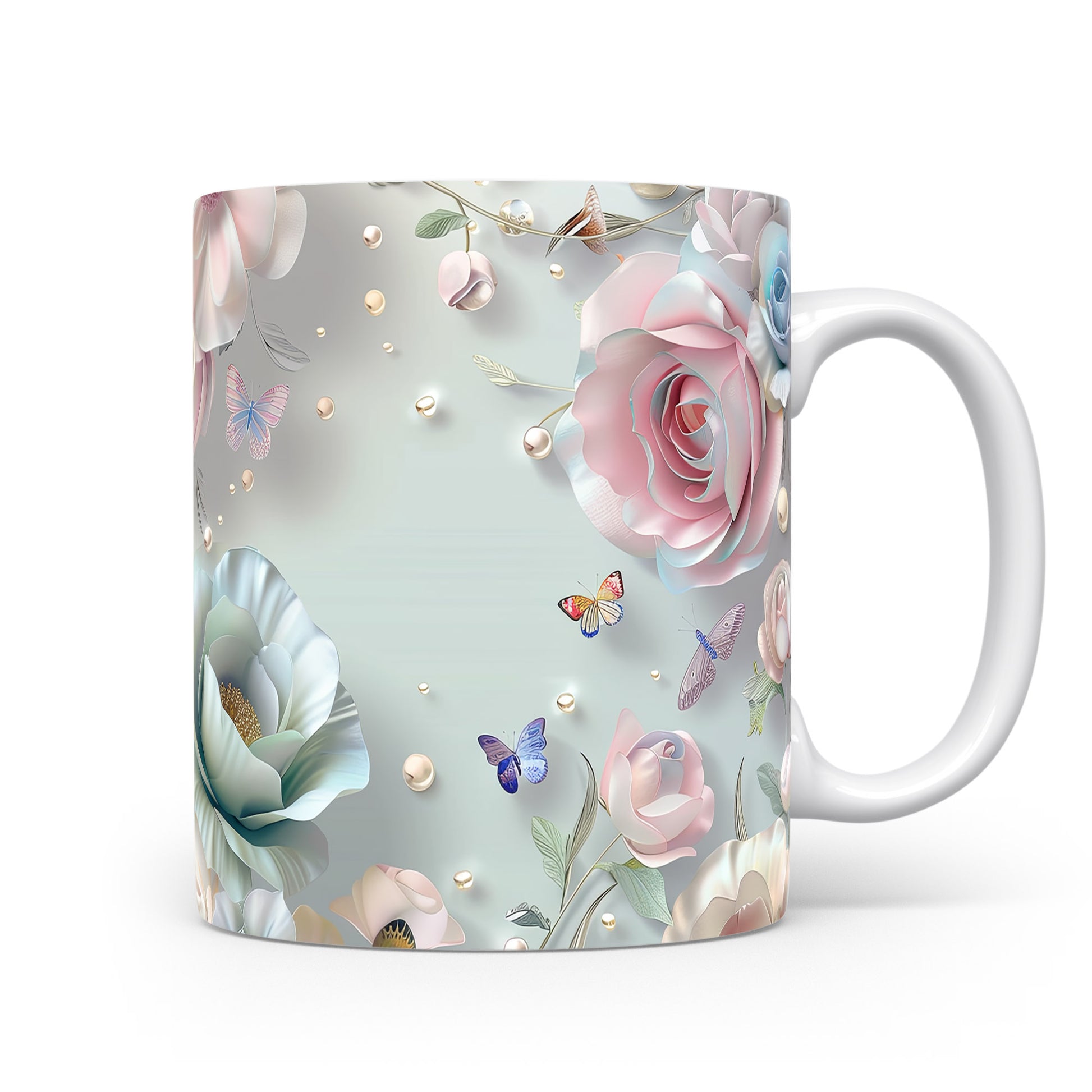 Tento hrnek je zdoben jemnými růžemi a barevnými motýly, ideální pro milovníky květin a přírody. Skvělý tip na dárek pro přátele nebo rodinu, kteří ocení krásu přírody. Materiál: keramika. Objem: 330 ml. Vhodné do myčky i mikrovlnky. Používání tohoto hrnku přináší radost z každého doušku.